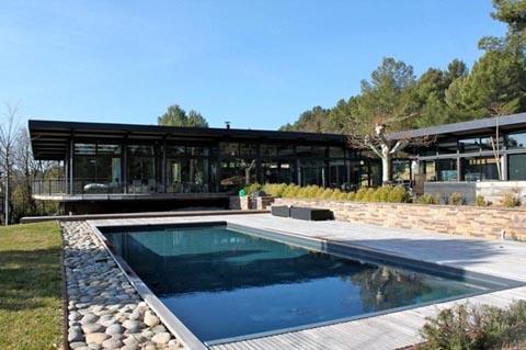 Location de villa moderne avec piscine, située à 10 minutes d'Aix en Provence et à 25 minutes de la mer et des calanques de Cassis en région Provence Alpes Côte d'Azur. Ce lieu de 280m2 est, grâce aux baies vitrées présentes dans toutes les pièces, un décor somptueux et changeant à toutes heures de la journée ce qui en fait un endroit idéal pour des prises de vues photos ou des tournages de films dans le Sud de la France. Il possède un jardin de 4500m2, une belle piscine protégée par un volet roulant, un terrain de boules, une salle de bain extérieur avec baignoire en marbre et 2 douches.