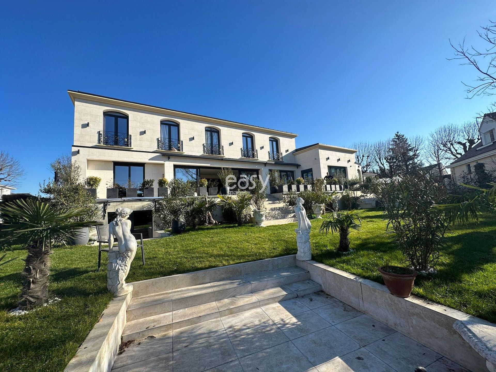 A l’étage, le blanc s’allie avec le ton naturel du chêne qui habille le sol pour créer une atmosphère chaleureuse. Chaque chambre possède néanmoins sa propre identité. Quatre chambres dont deux disposant d’une salle de bain privative et une d’un dressing, une salle d’eau et des toilettes indépendantes, un coin salon/bureau offrent espace et intimité. Buanderie, cuisine équipée, salle à manger pour dix convives, salon, 5 chambres climatisées, une Chambre avec lit de 160 en rez-de-chaussée avec sa salle de bain (Douche à l'italienne) et toilettes indépendantes.