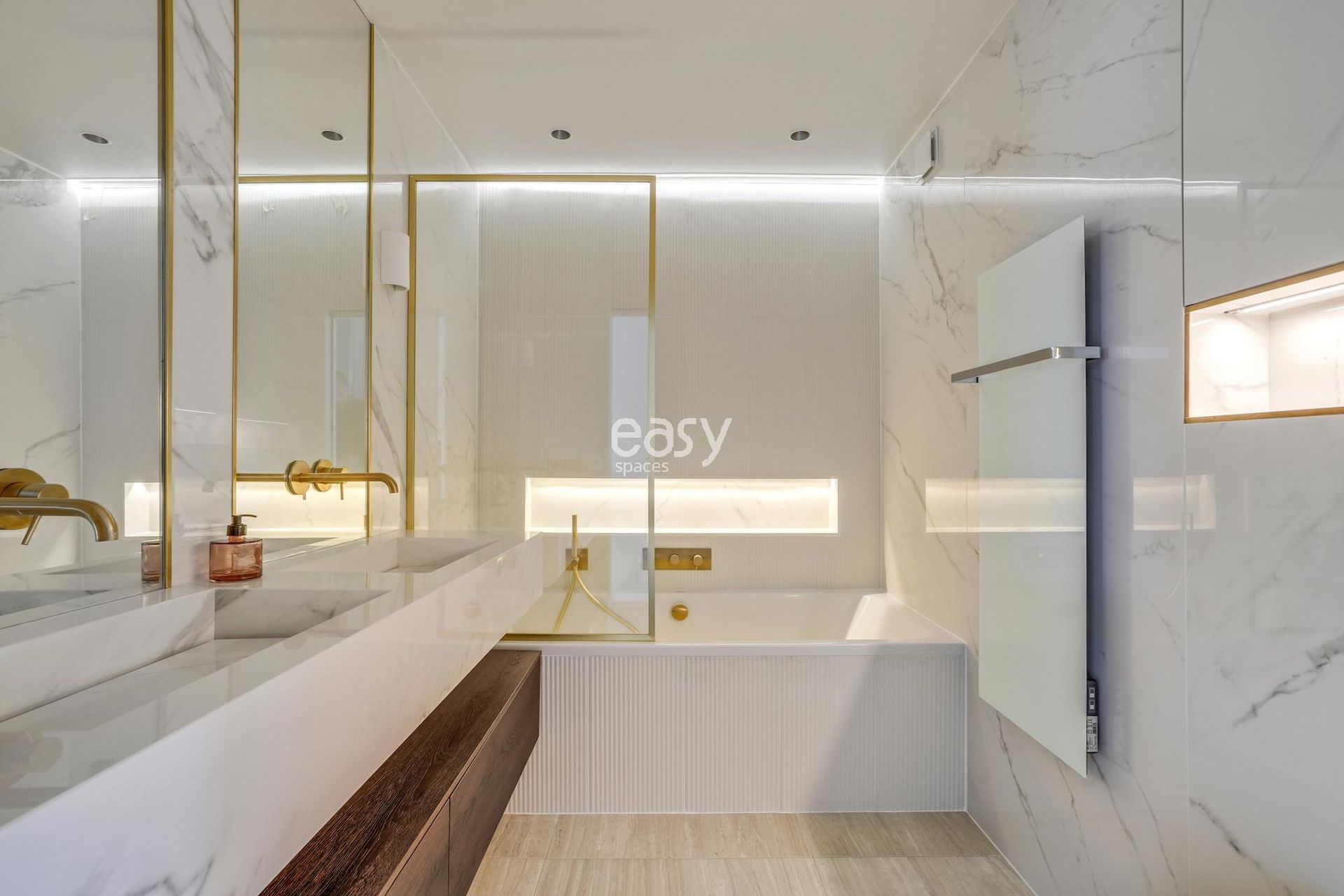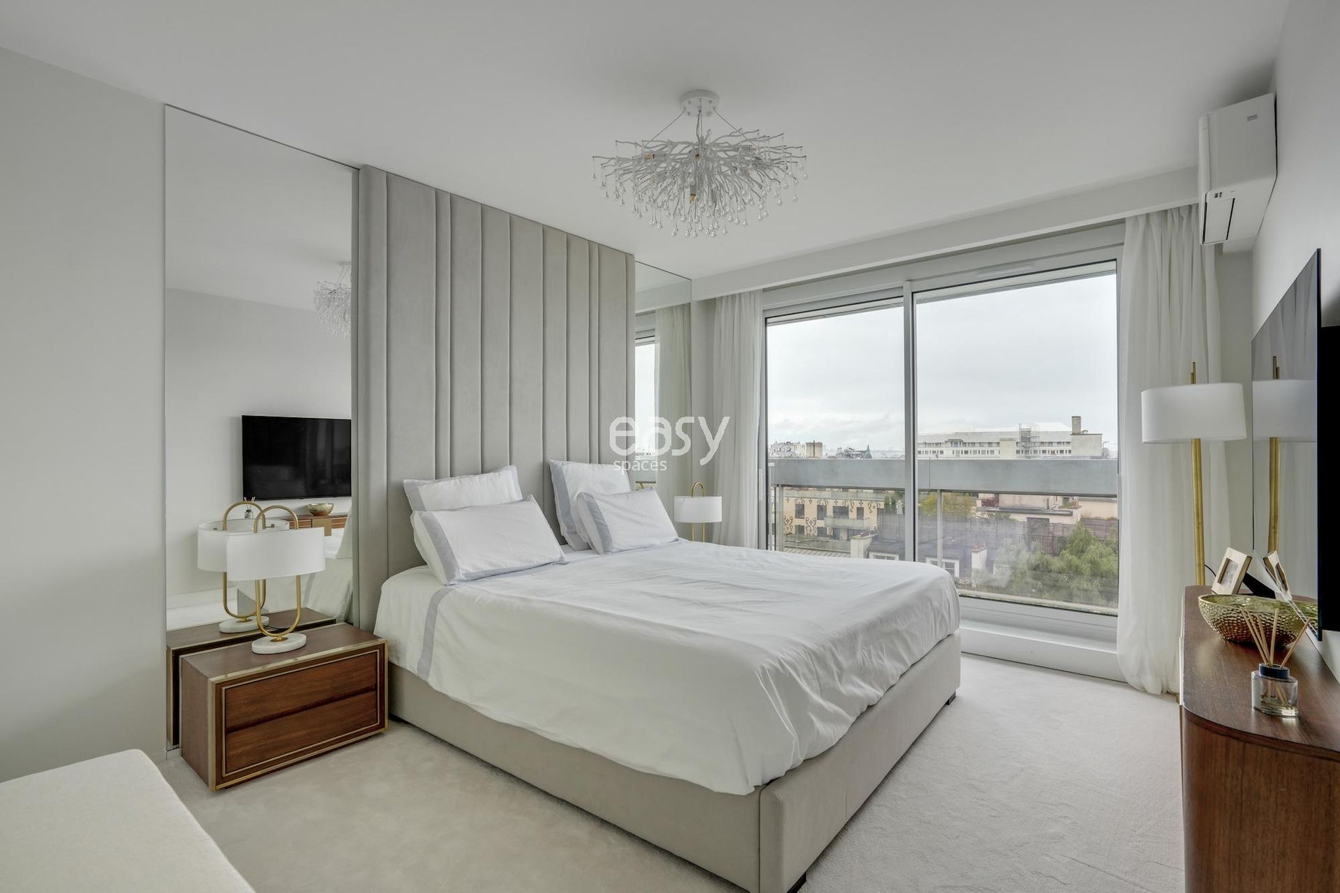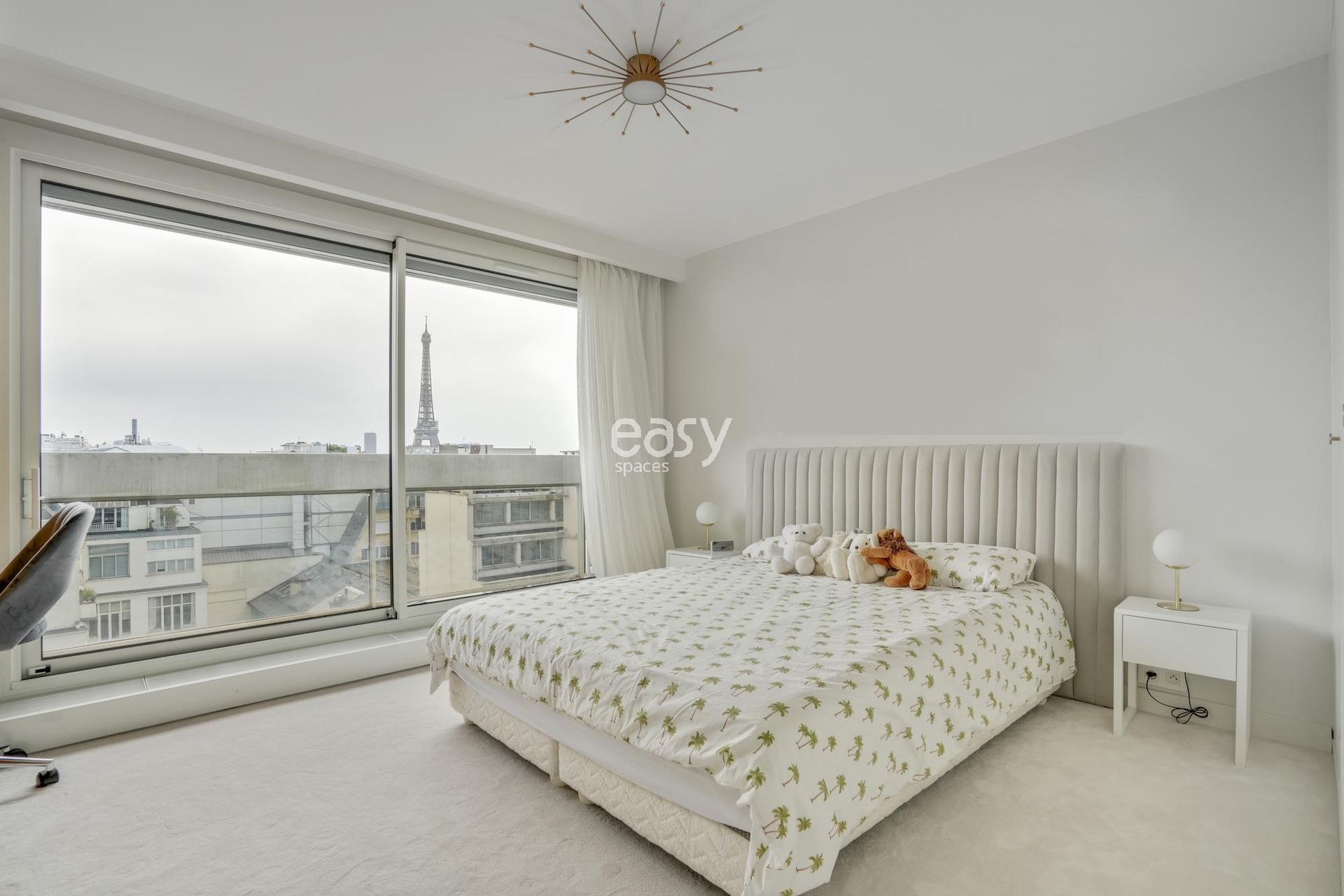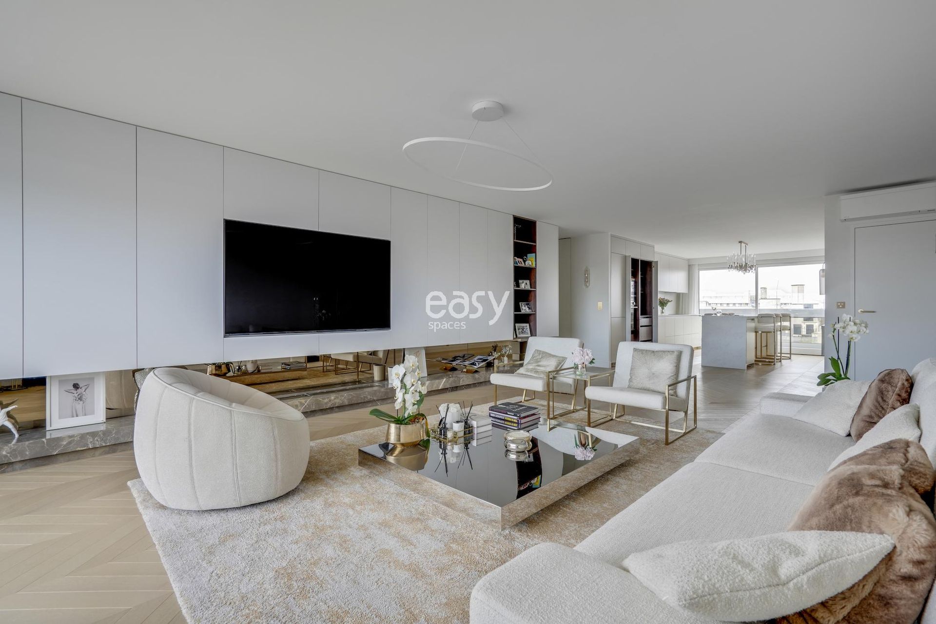 Cet appartement aux lignes épurées, baigné d'une luminosité remarquable grâce à ses larges baies vitrées, offre une toile de fond immaculée pour vos créations les plus ambitieuses. Sa palette chromatique d'un blanc immaculé rehaussé de touches dorées crée un univers visuel d'une rare élégance, idéal pour un shooting et tournage Paris de haute facture.