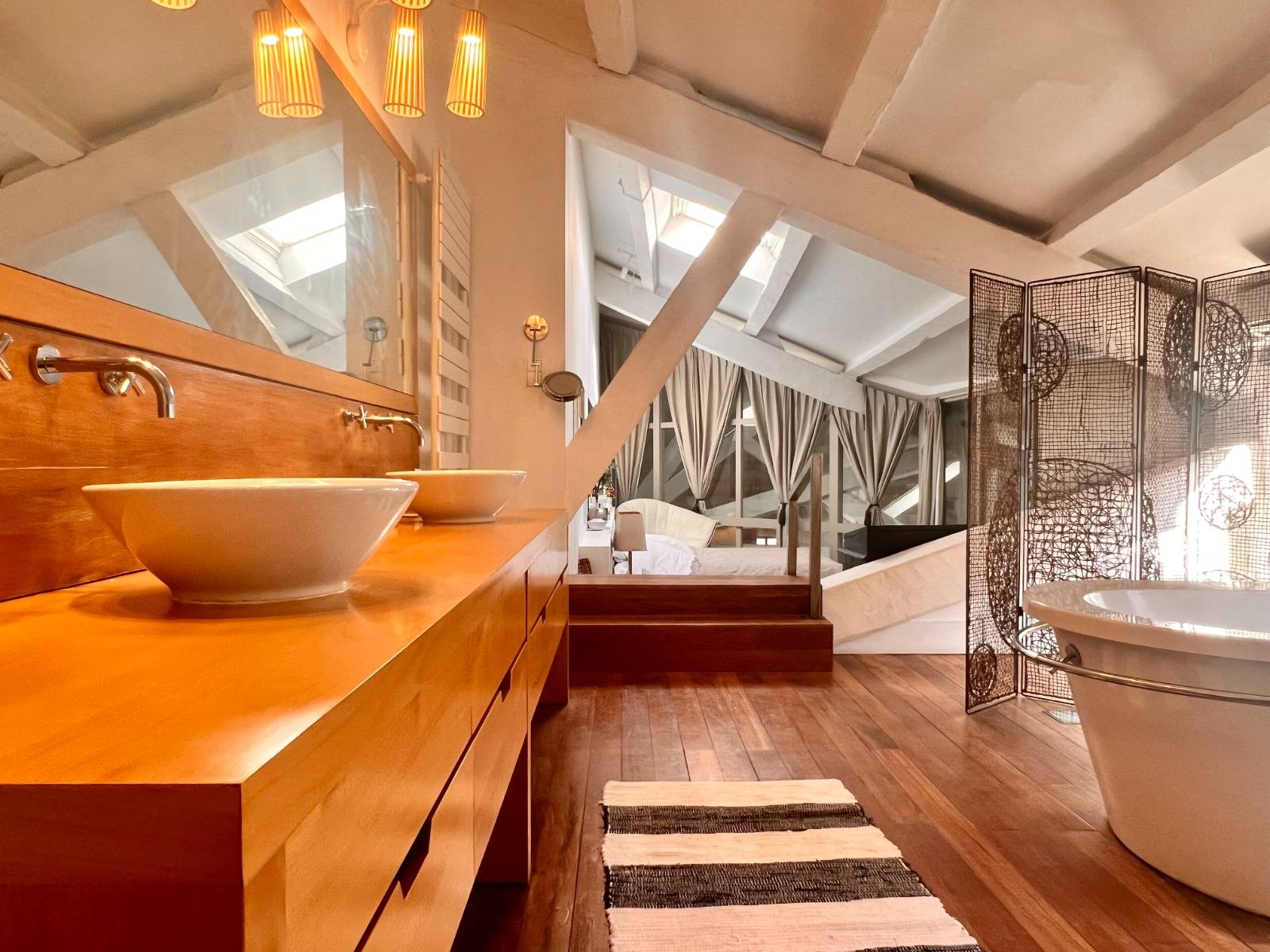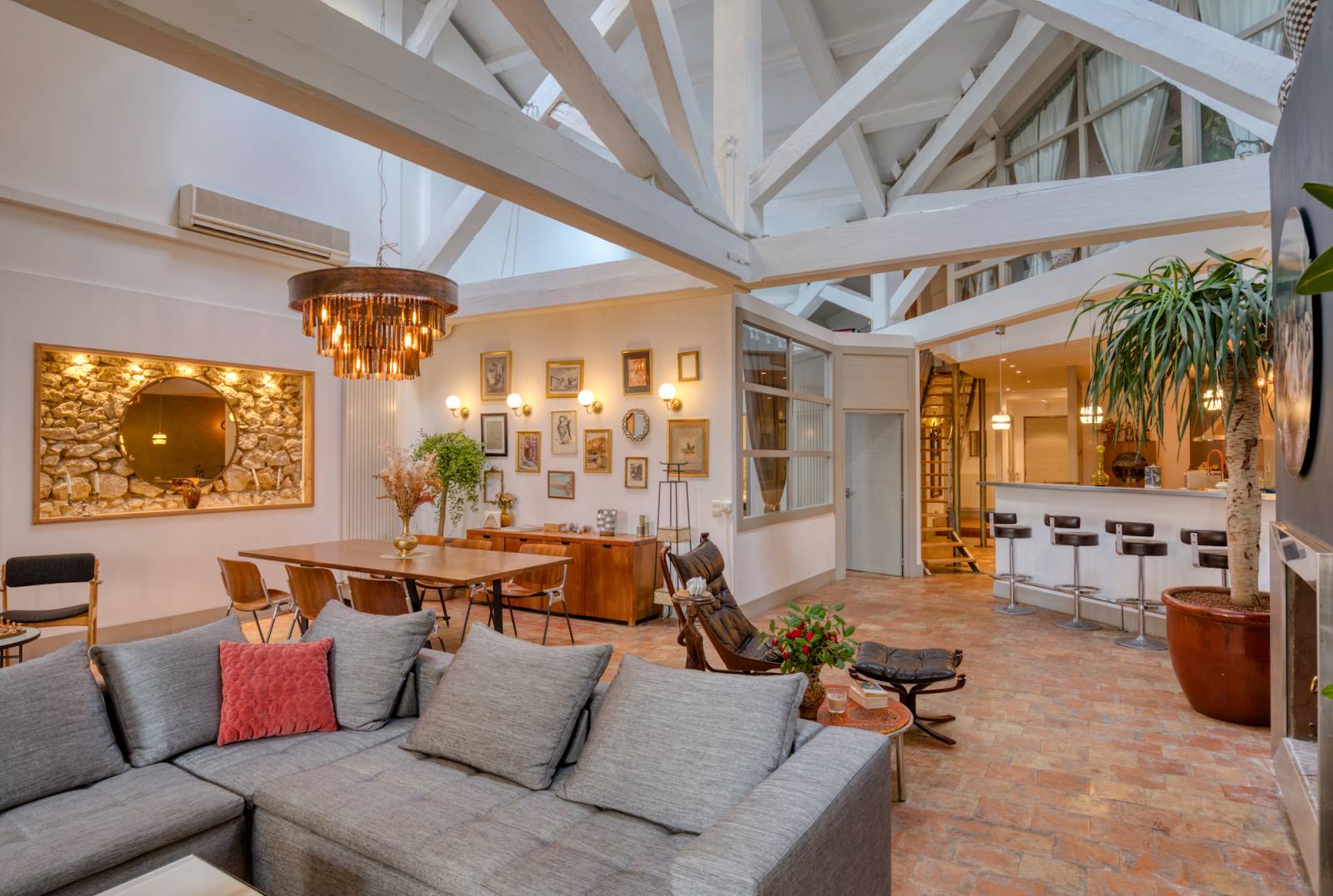 Bénéficiant d'un bel espace séjour de 90m2, d'une décoration soignée où chaque détail a été pensé avec goût et harmonie, ce joli appartement offre de multiples espaces plus photogéniques les uns que les autres et sera idéal pour tout types de projets.