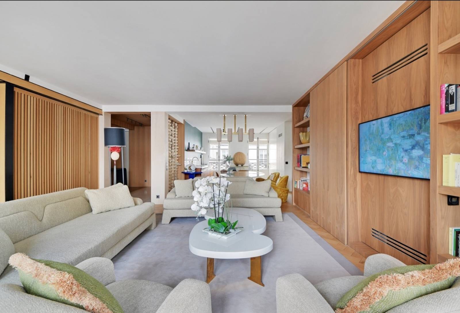L'appartement, d’une superficie de 170m2, dispose d'un grand espace séjour baigné de lumière naturelle grâce à ses grandes fenêtres.