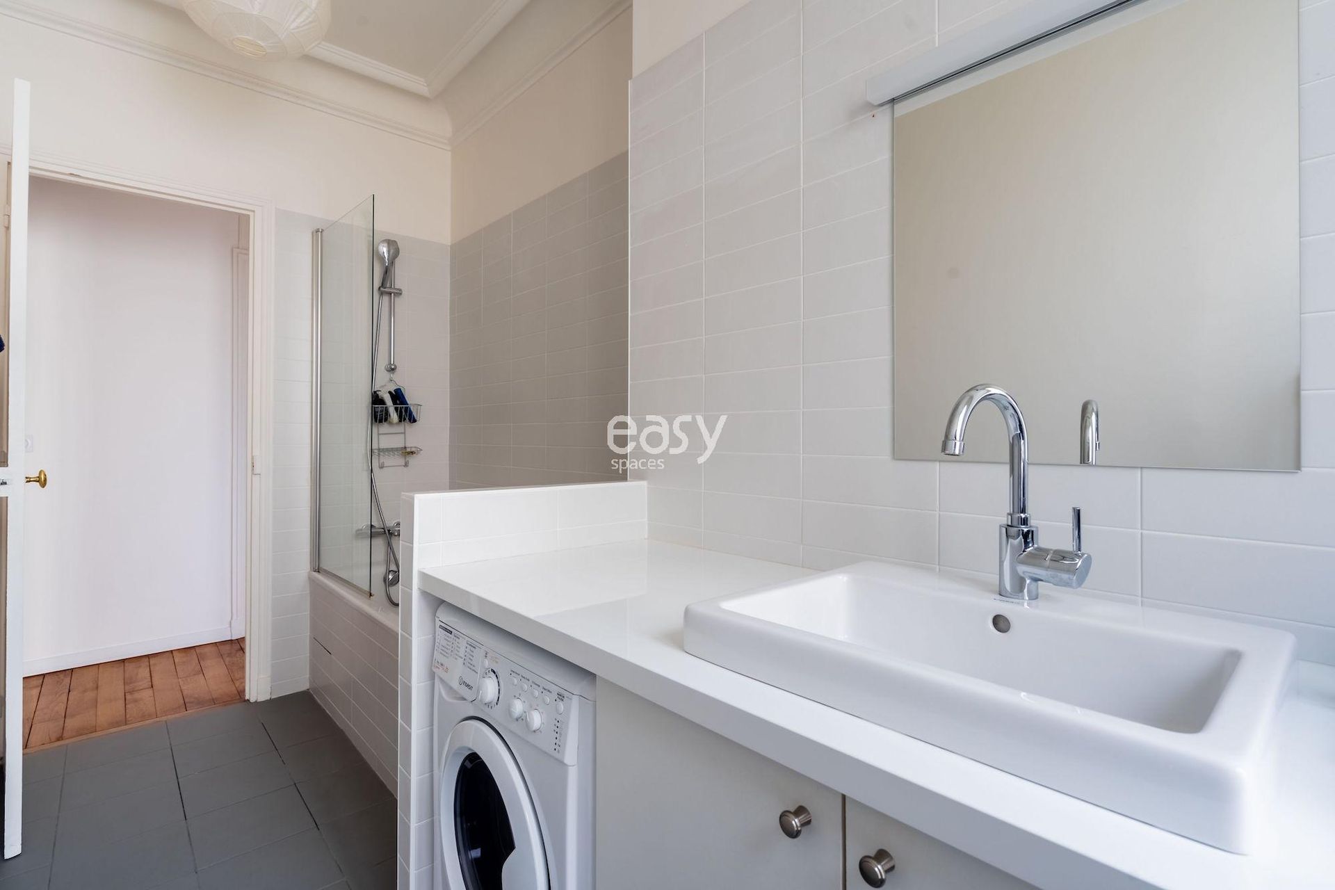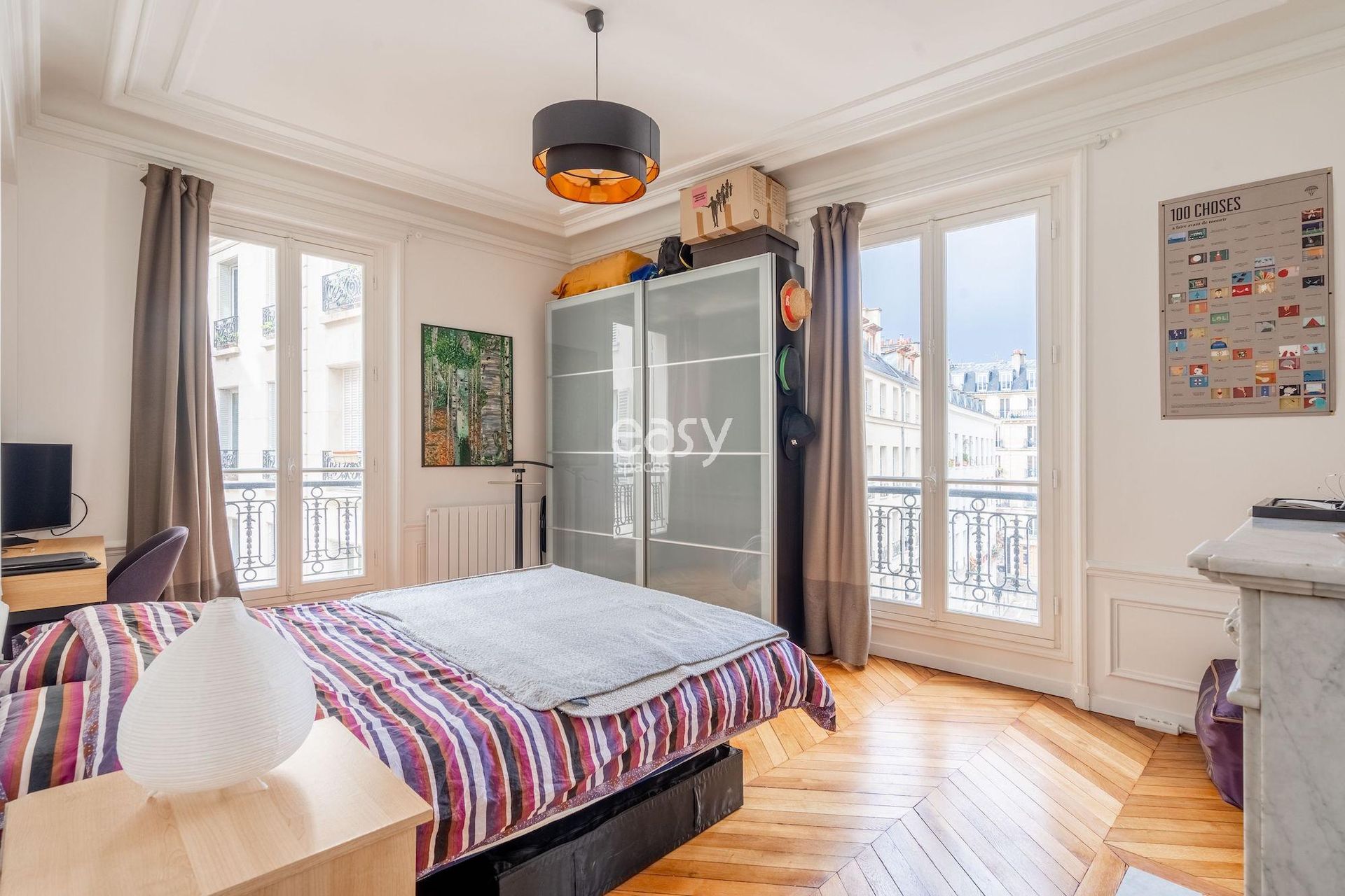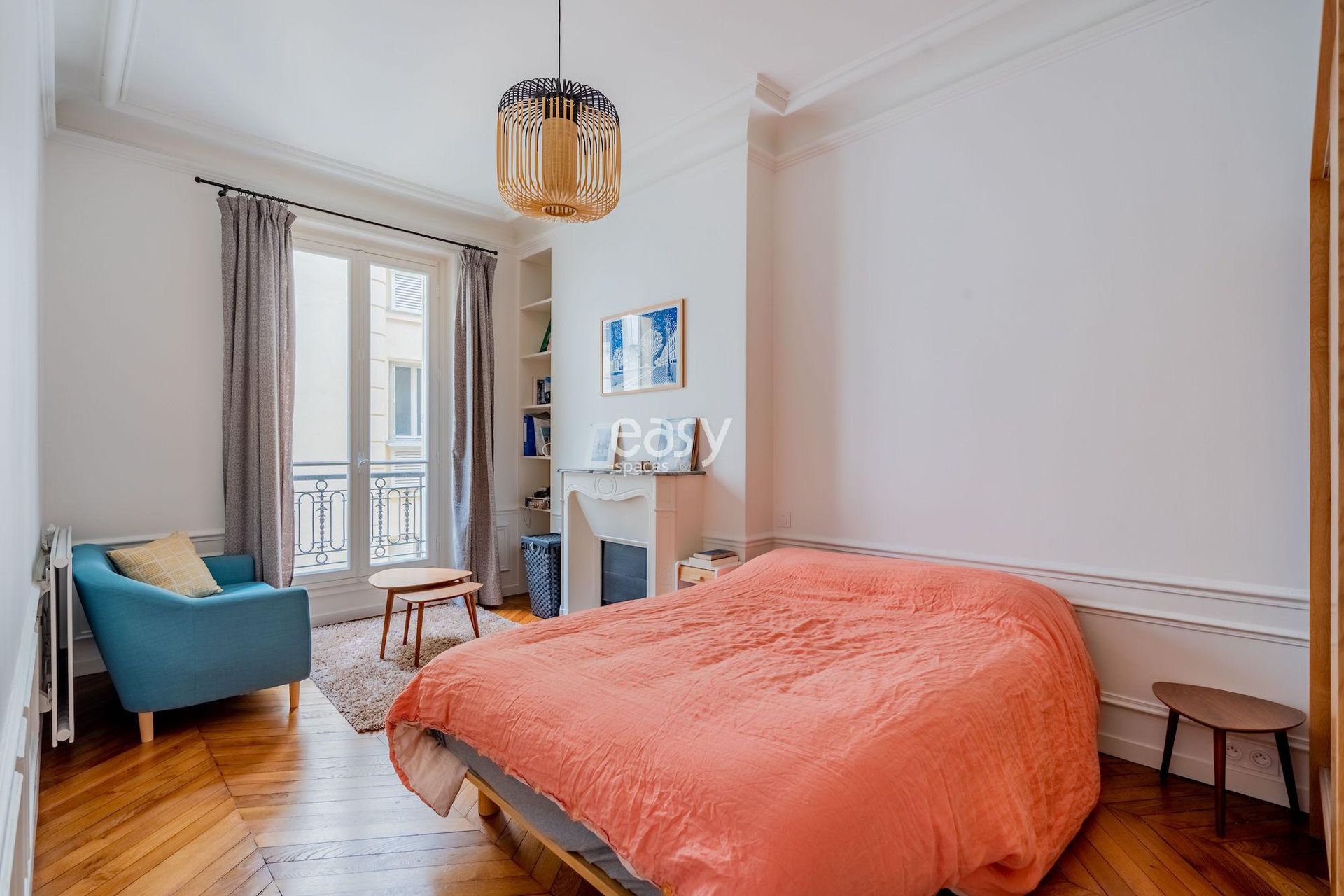Ce lieu parquet et moulures avec son petit espace détente vitré et sa décoration chaleureuse et cosy en font un décor parfait pour une production photo ou pour un tournage de spot publicitaire par exemple.