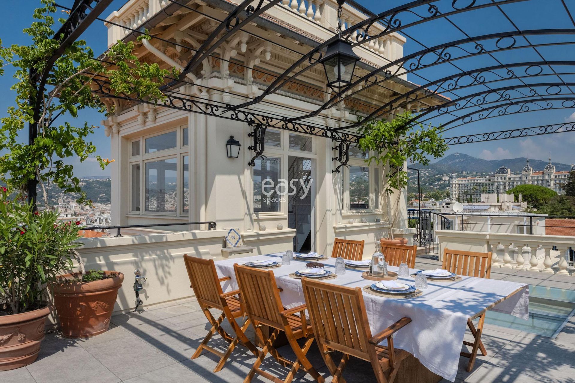 Nous proposons à la location l'appartement situé au 3eme étage avec son rooftop vue mer de 120m2 mais, il est également possible de privatiser en sus les exterieurs afin de profiter de son sublime jardin bordé de palmiers et de sa belle piscine type bassin, qui seront des espaces parfaits pour un shooting mode ou pour un shooting de mobilier de jardin par exemple.