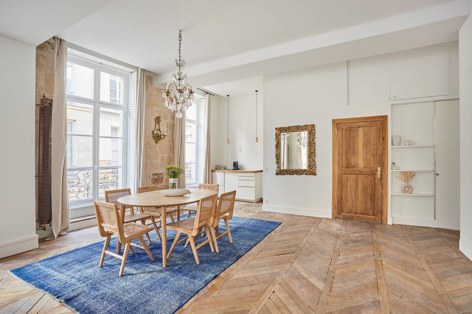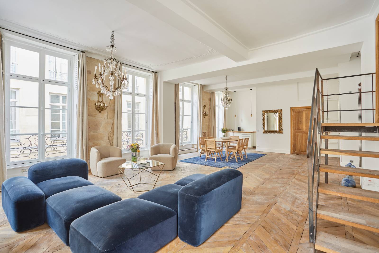Bénéficiant d'une grande pièce lumineuse de 90m2 modulable qui combine charme classique et élégance, d'une décoration soignée où chaque détail a été pensé avec goût et harmonie, cet appartement haussmannien à louer pour shooting et tournage à Paris offre une belle ambiance pour vos projets.