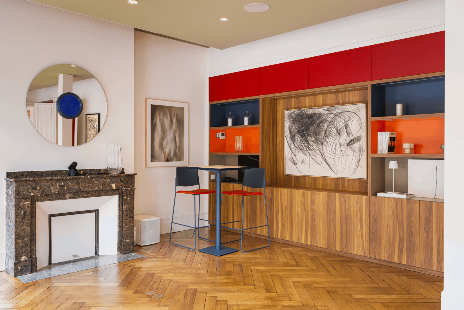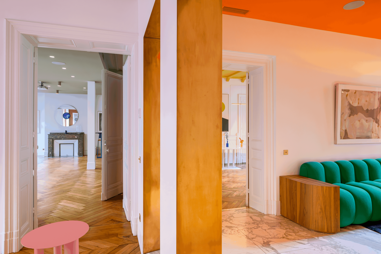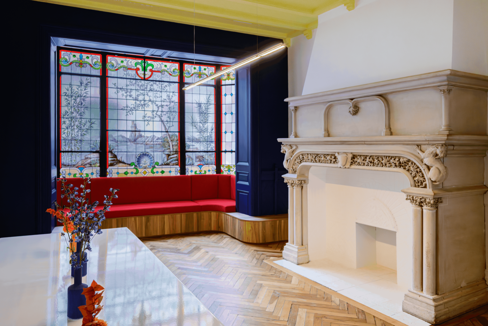 Vos productions photo et vos tournages seront sublimés par l'authenticité des parquets, moulures, cheminées anciennes et vitraux présents dans cet appartement lumineux.