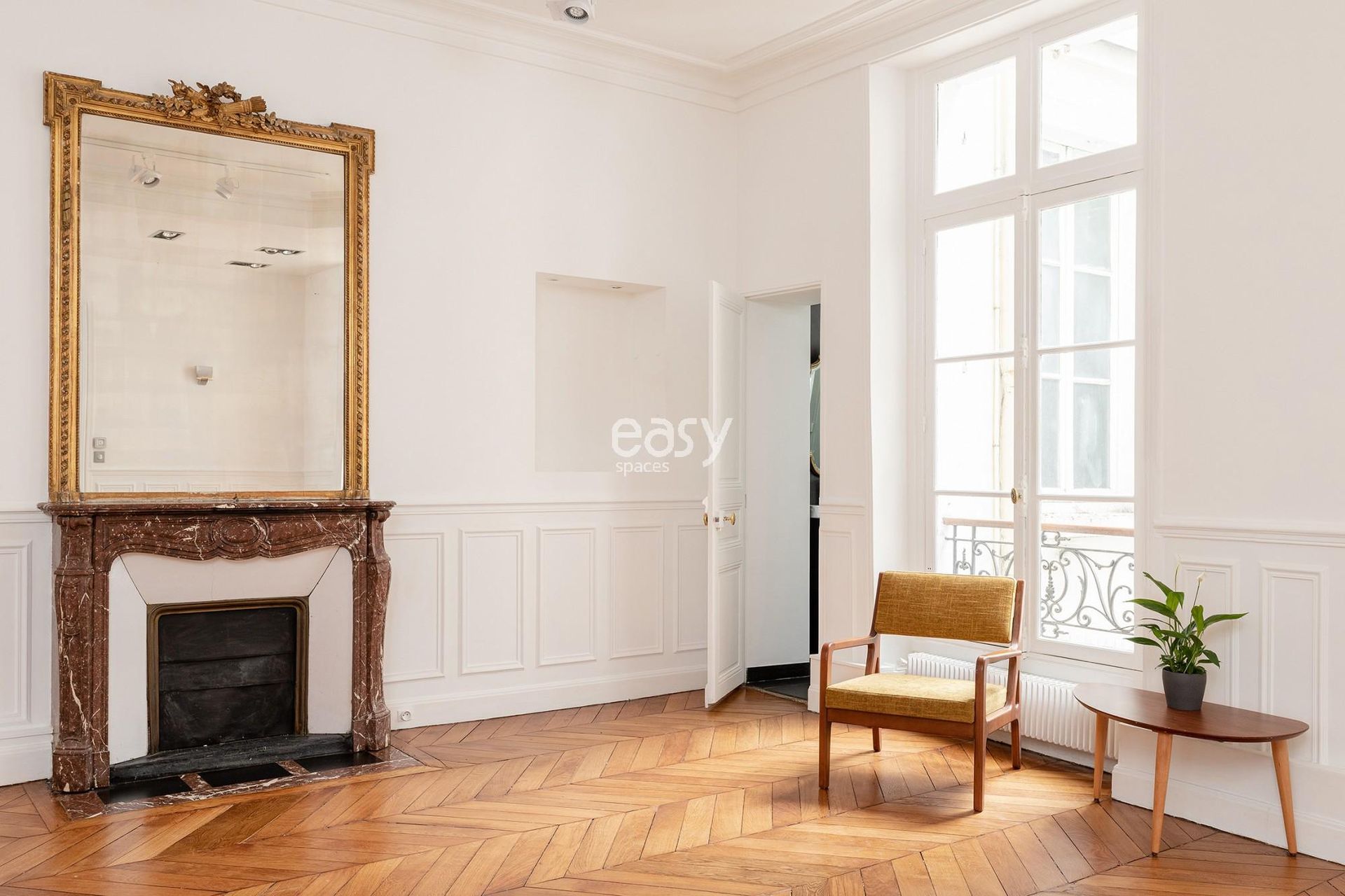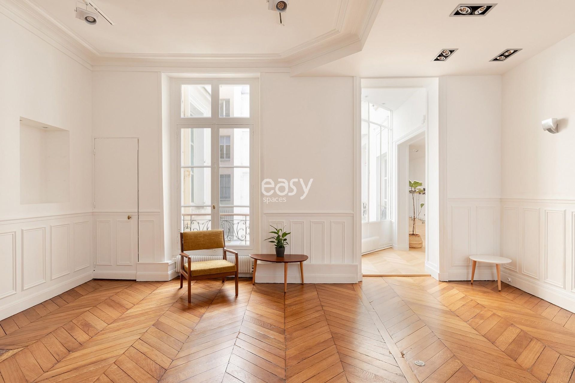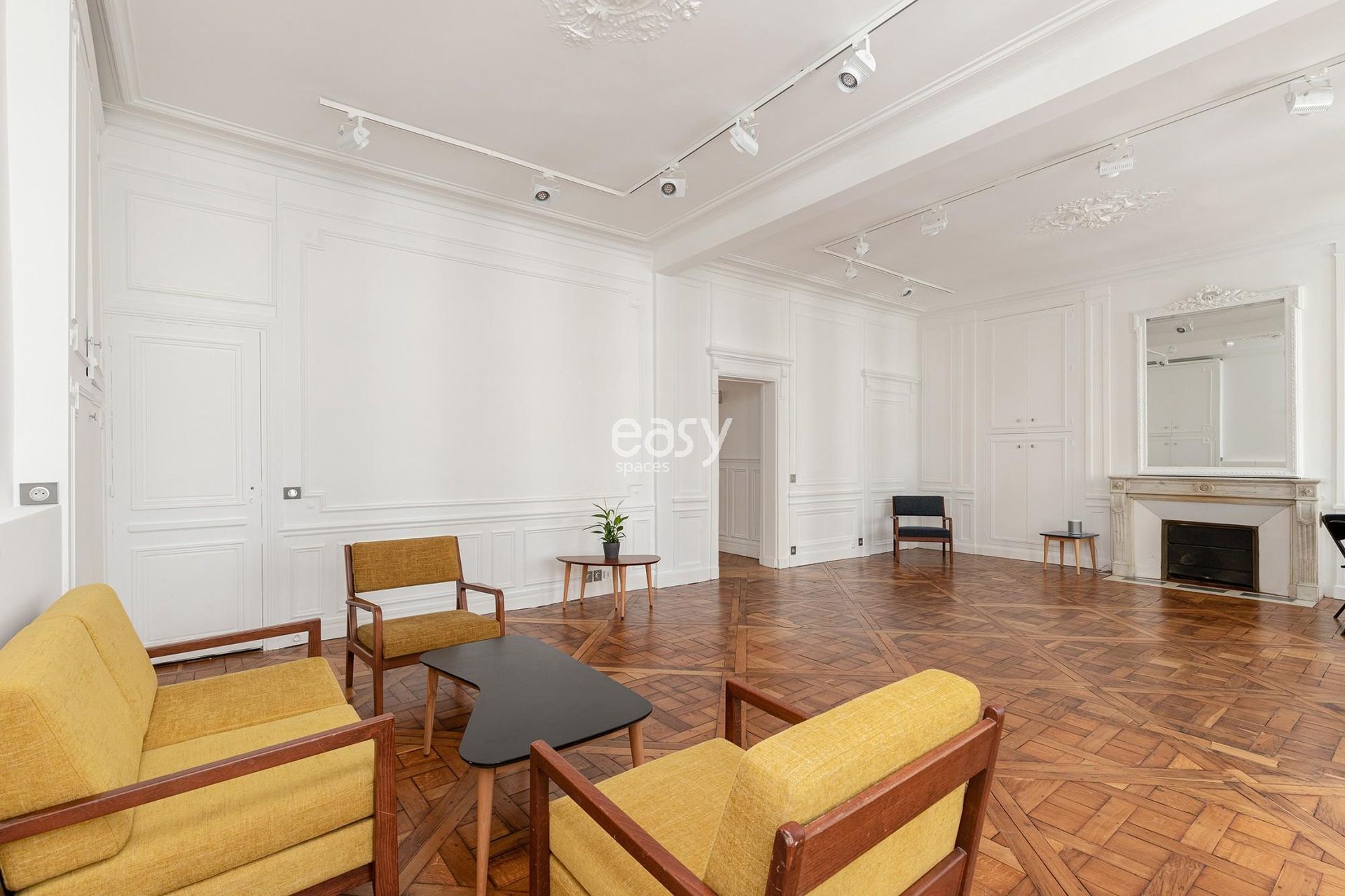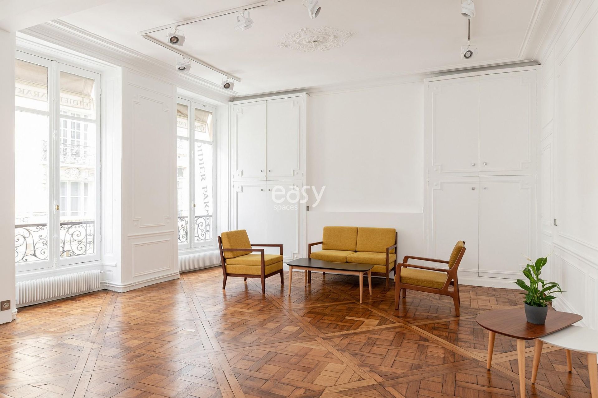 Ses superbes moulures et ses belles hauteurs sous plafonds de 3m10 en font un décor parfait aussi bien pour des productions photos dans le centre de Paris que pour des événements professionnels.