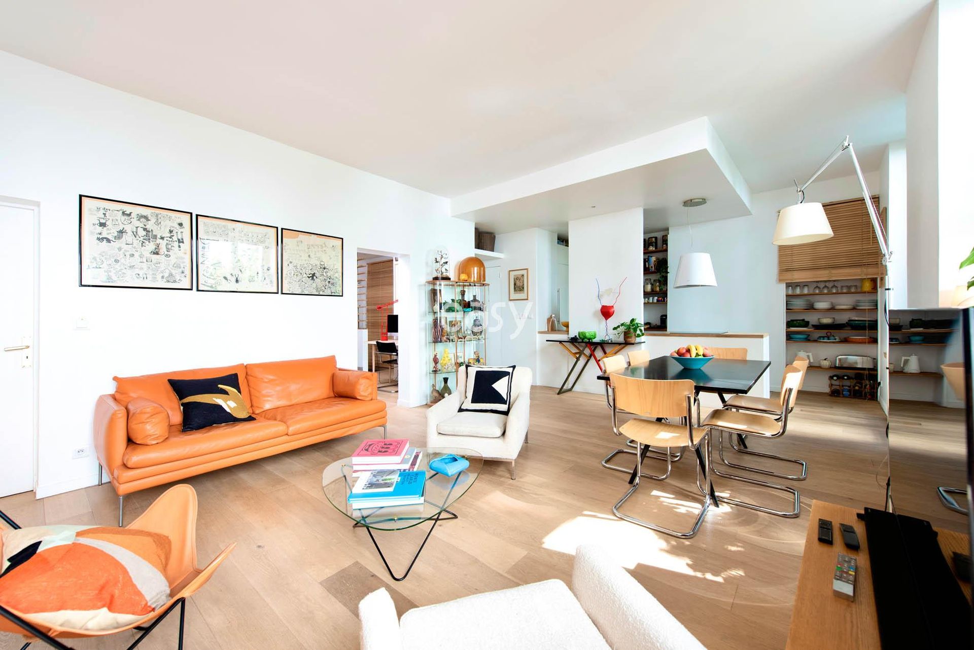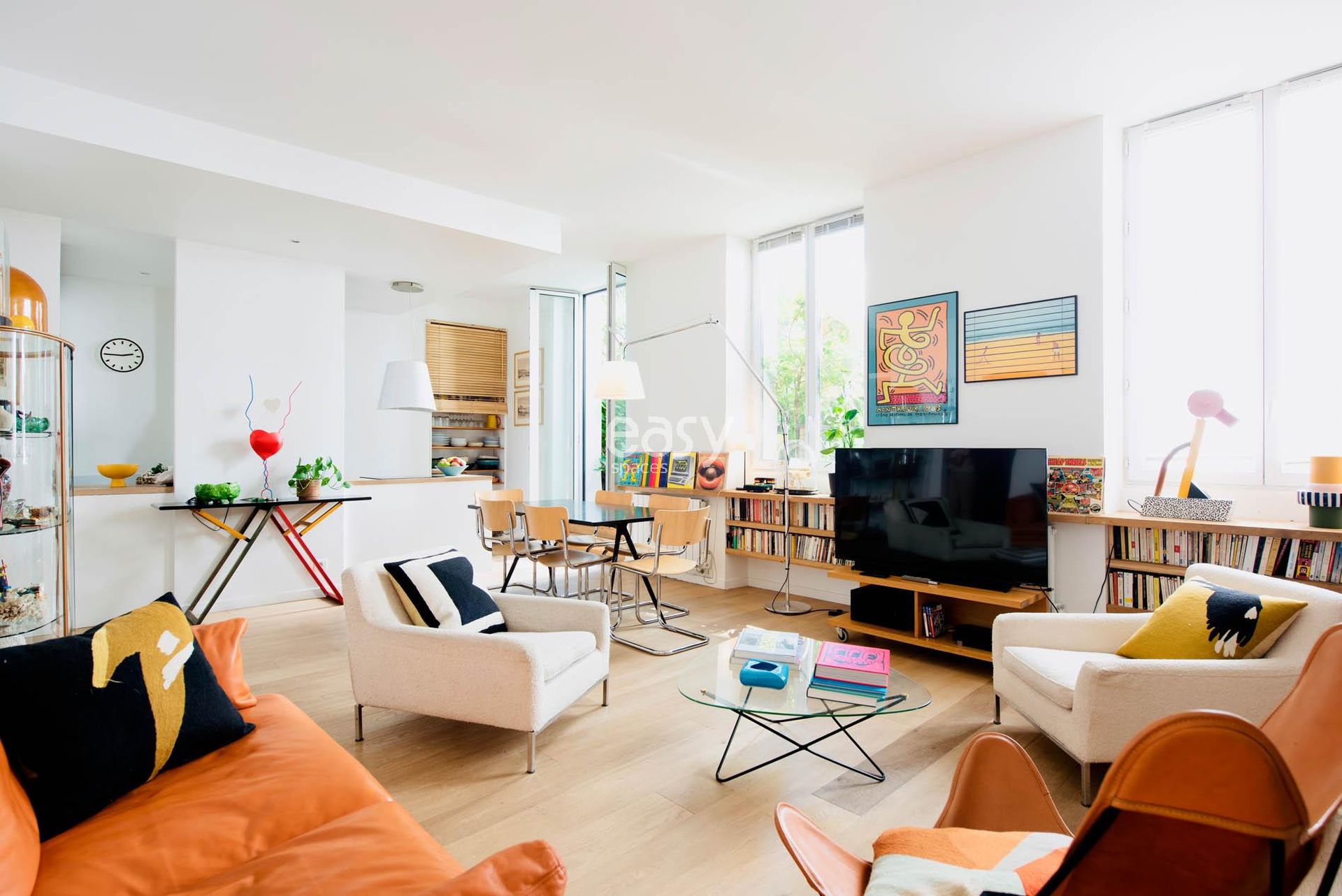 Ce bel appartement lumineux de 125m2 avec cuisine ouverte bénéficie d'une décoration colorée et chaleureuse, d'un parquet au sol et d'un agencement atypique, de plus il est idéalement situé dans un quartier animé de Paris, le 10eme arrondissement.