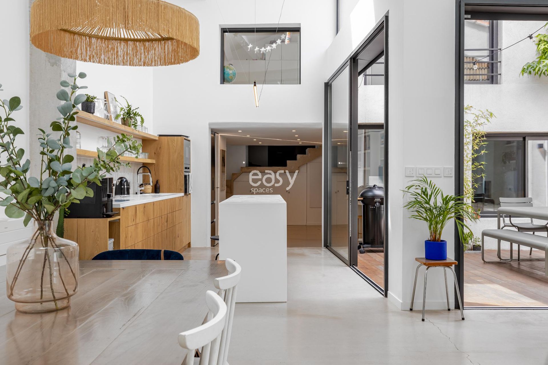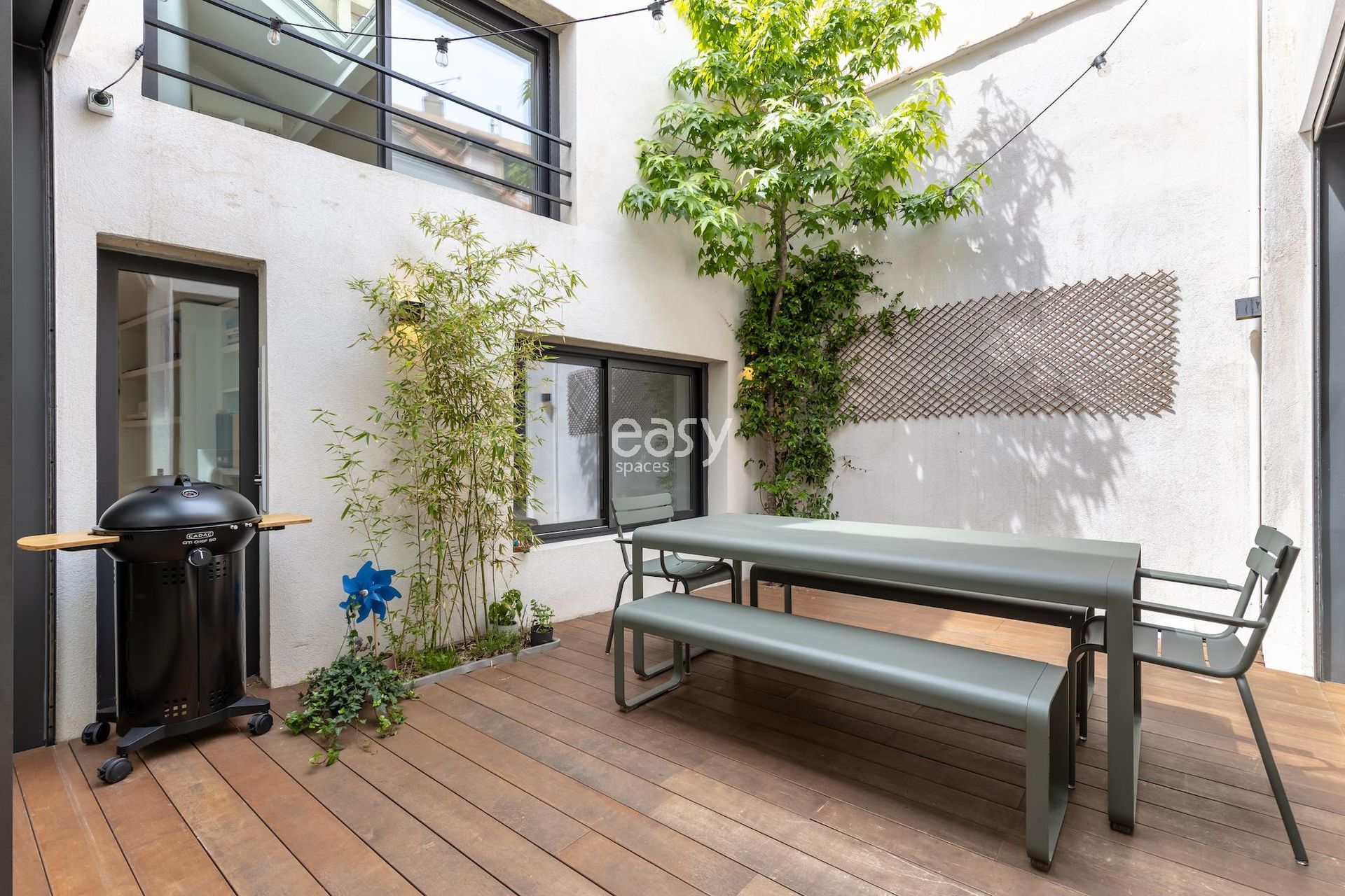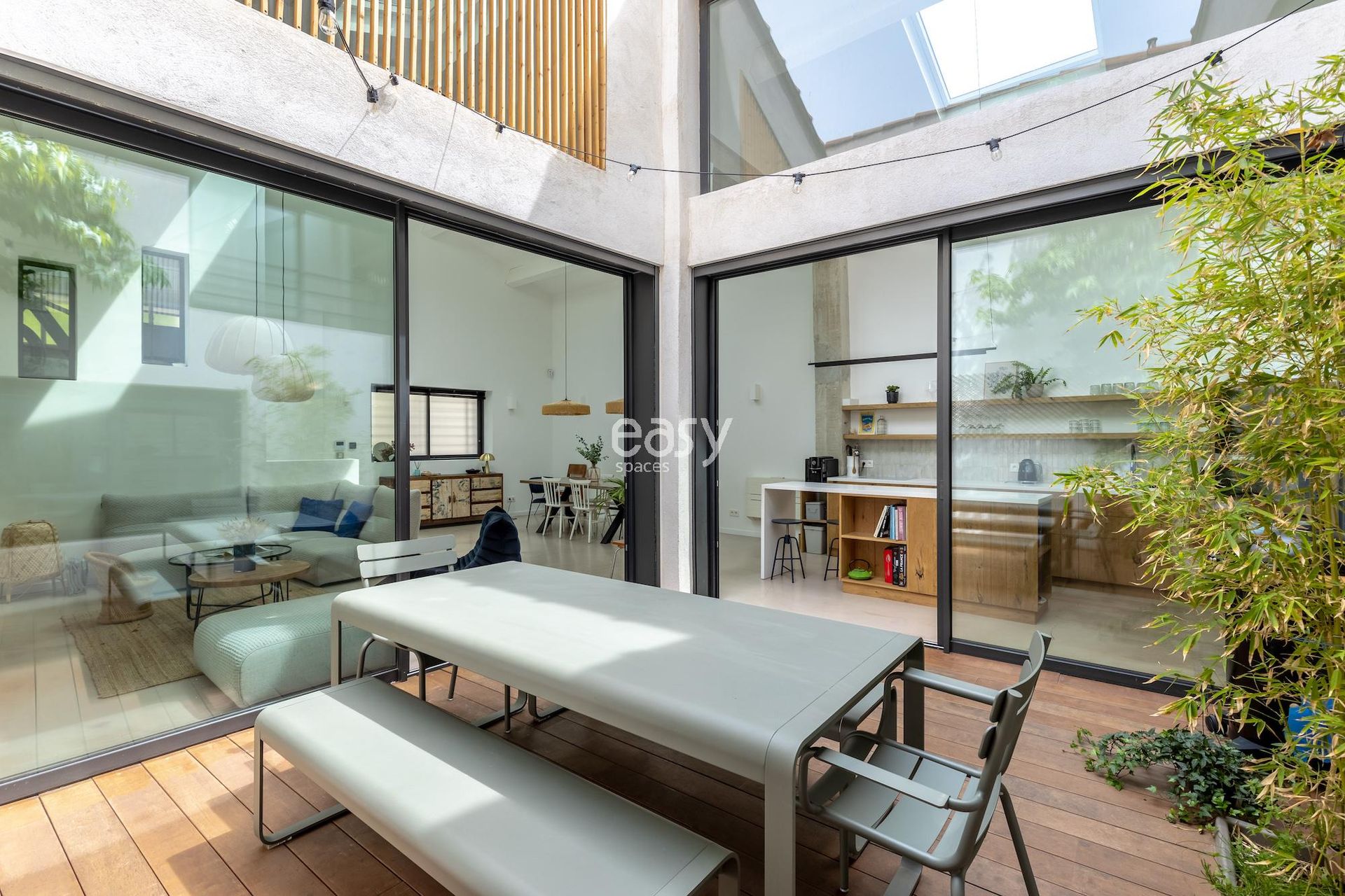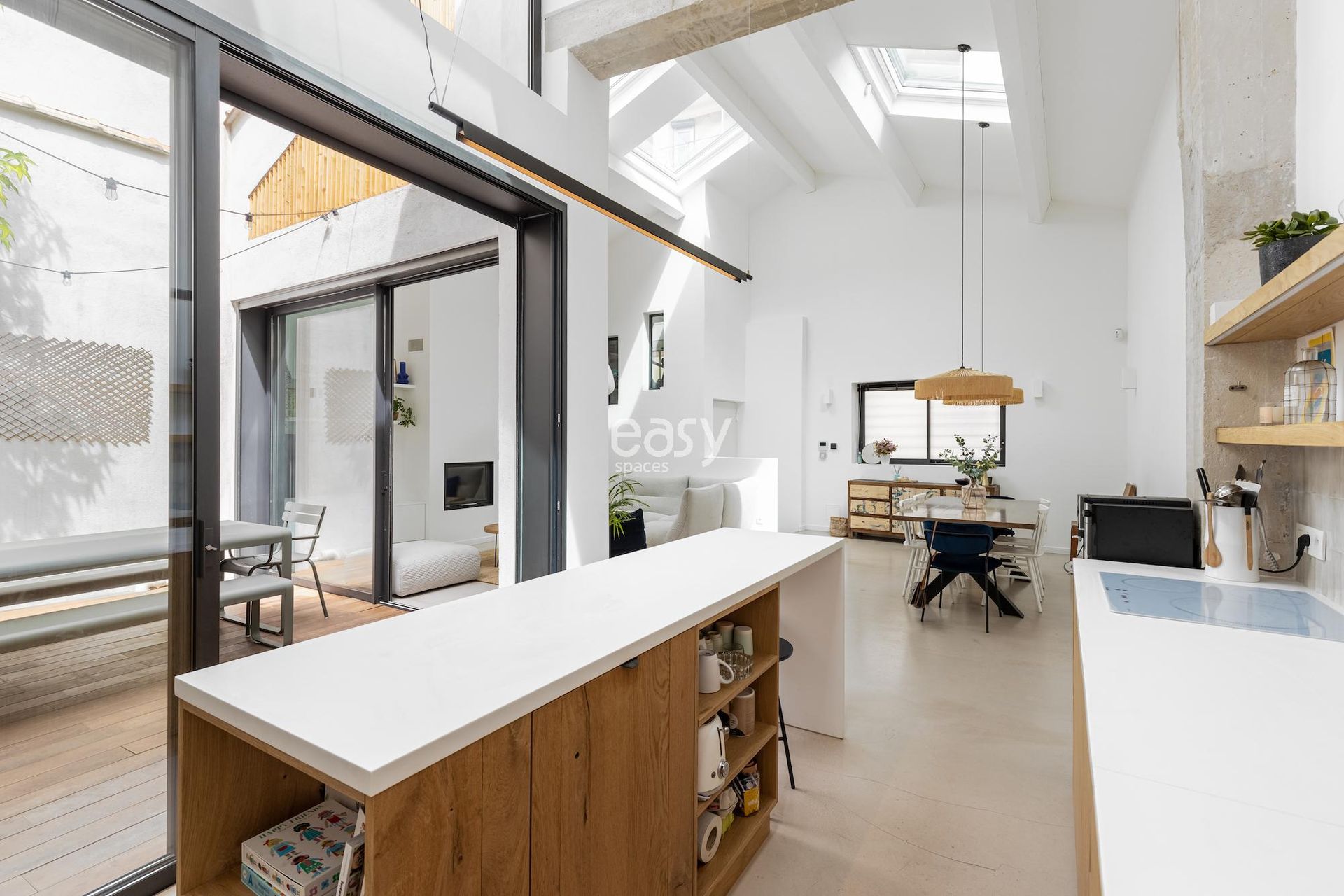 Cet appartement atypique en location pour shooting est situé à Marseille, son séjour avec cuisine ouverte de 60m2 et ses espaces s'organisent autour d'un très joli patio de 20m2.