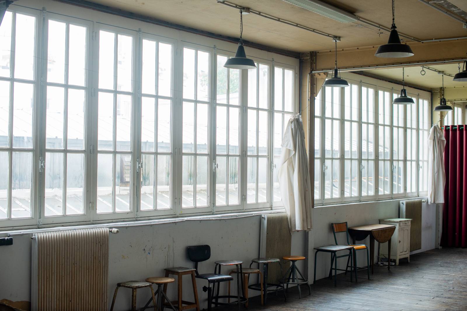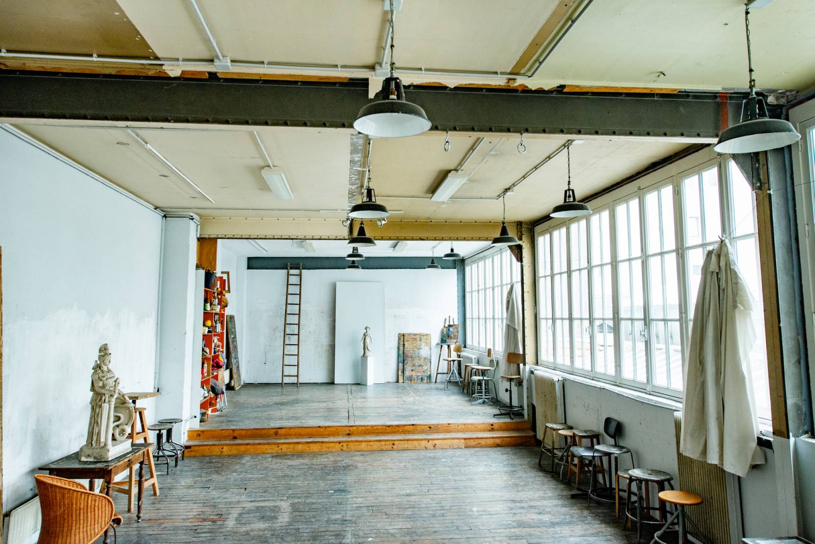 Avec ses murs en béton brut, ses structures métalliques et ses fenêtres typiques des ateliers d'artistes ce lieu offre un cadre très photogénique et inspirant.