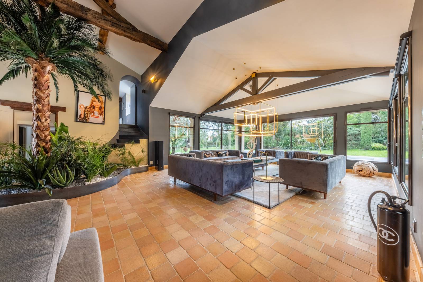 Bénéficiant de 2 salons à la décoration différente et d'une superficie de 450m2 la maison dispose de tout les atouts pour une production photo, un tournage de long ou court métrage mais également comme lieu événementiel insolite.