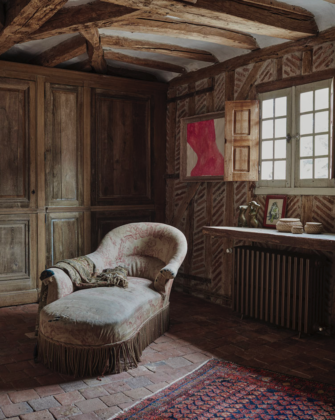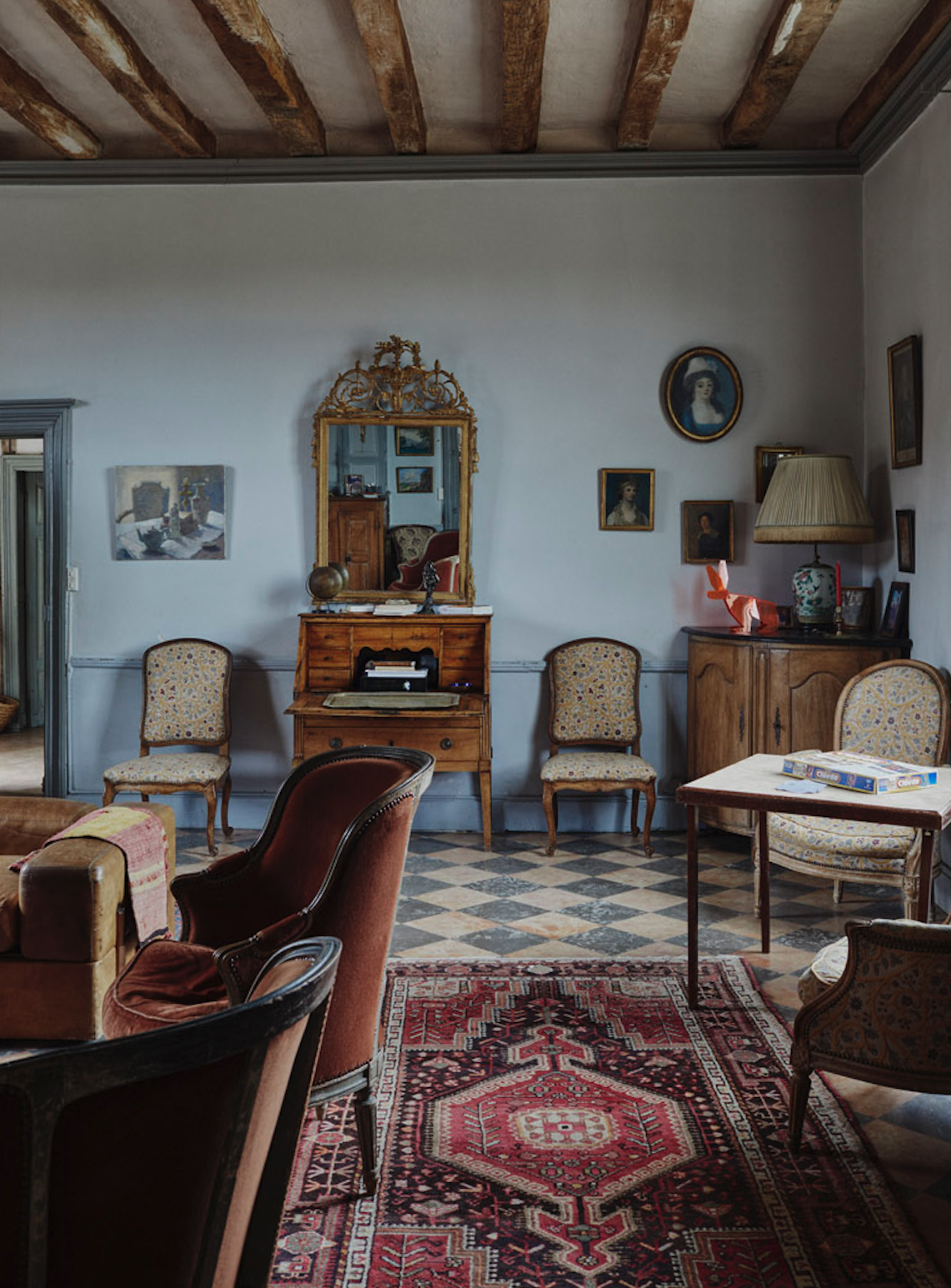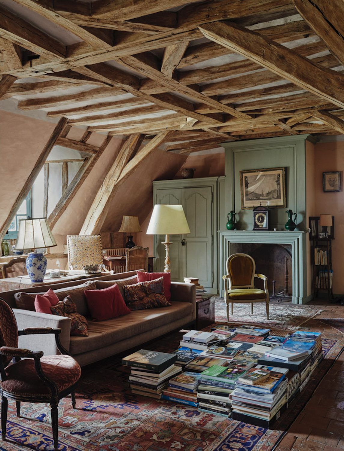 Les poutres apparentes, les parquets anciens, les cheminées monumentales et les hauteurs sous plafond impressionnantes confèrent à chaque pièce une ambiance chaleureuse et cinématographique.