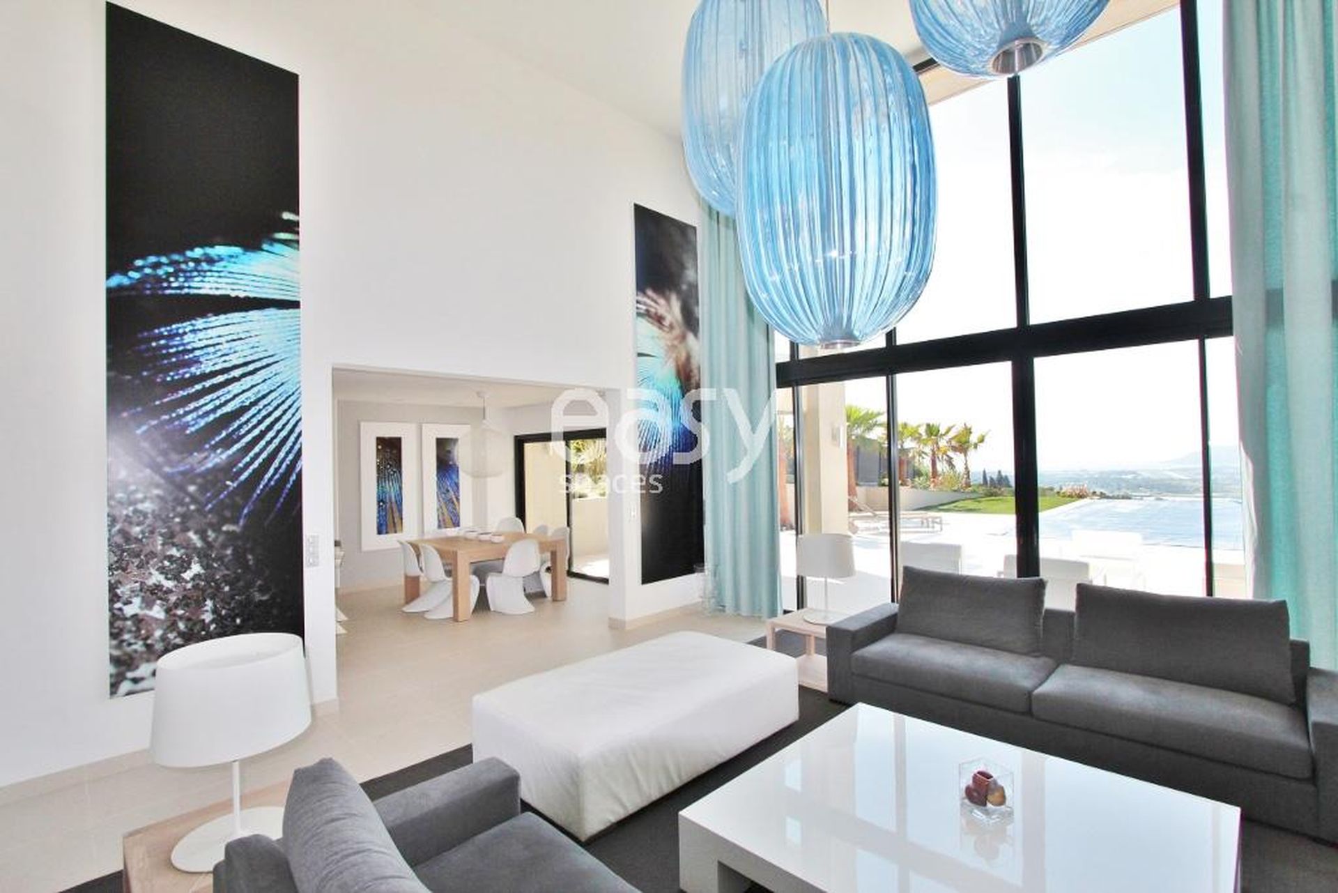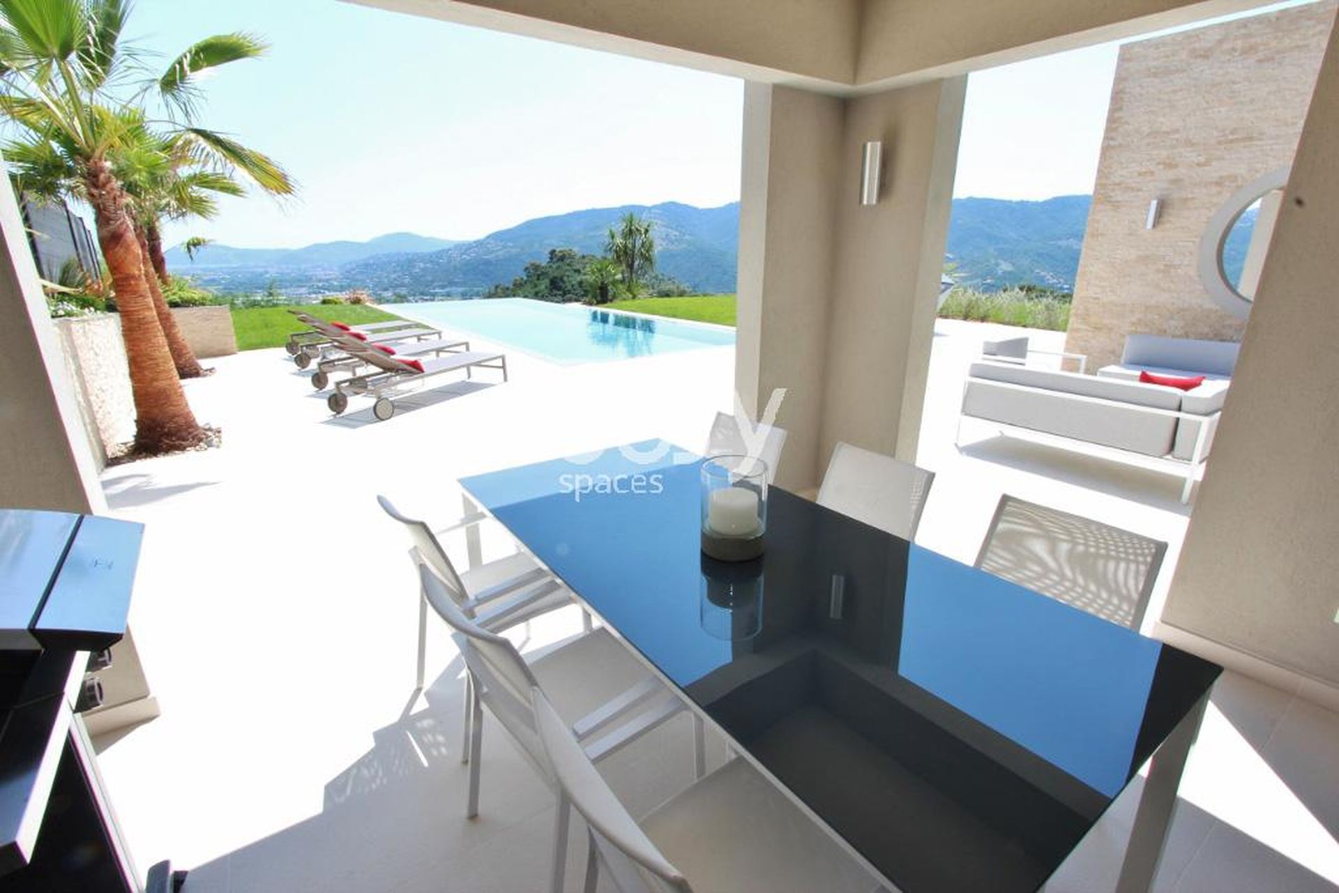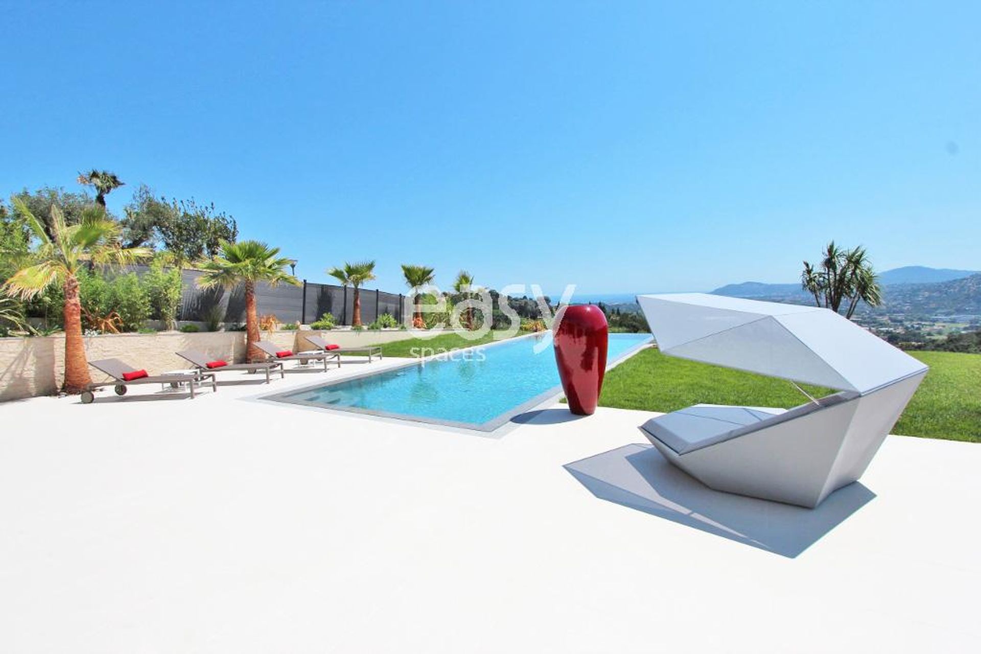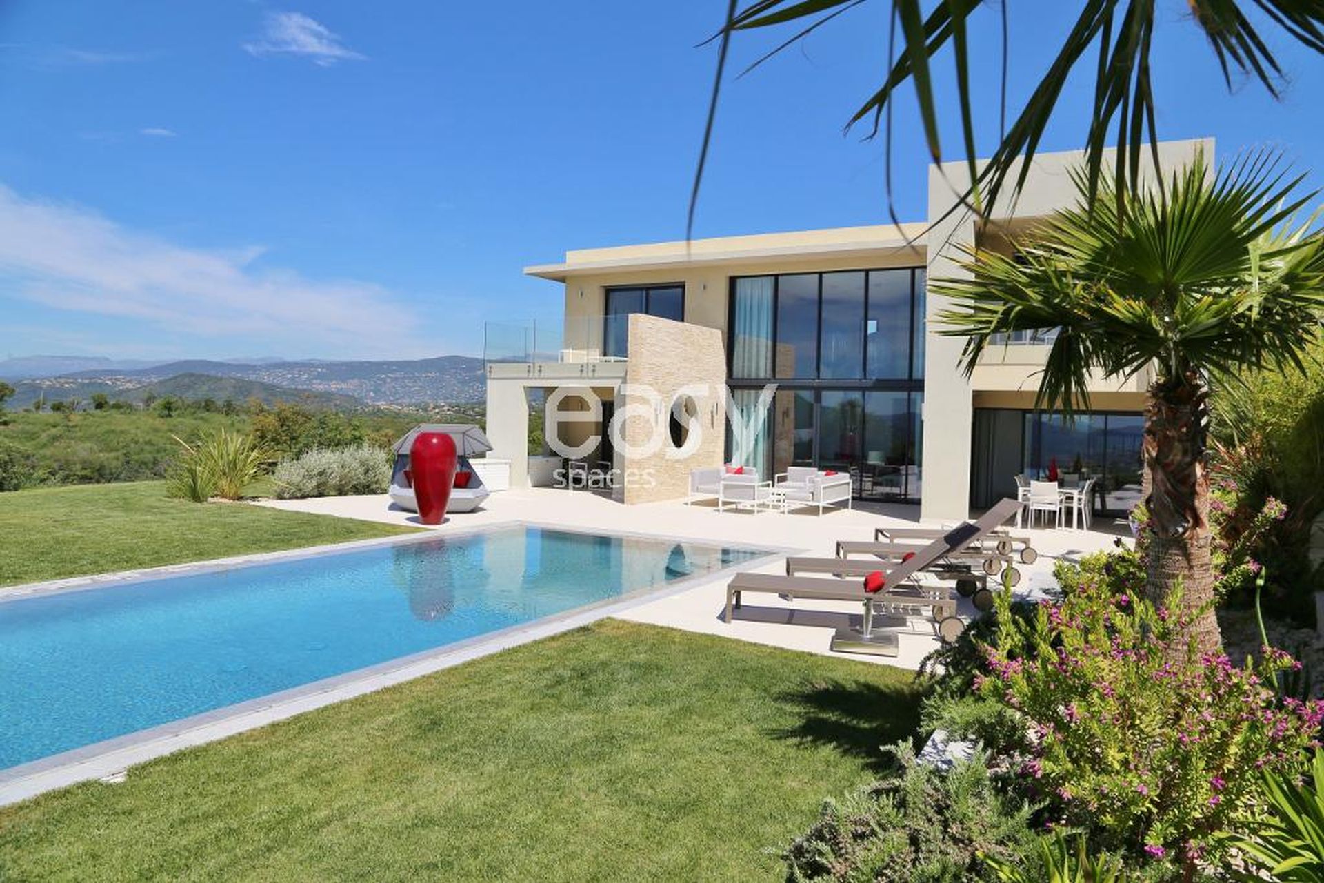 Easy Spaces, agence de repérage de lieux et événements pro, présente cette belle villa contemporaine à louer à proximité de Cannes en région PACA, idéale pour un shooting photo, tournage de film, ou événements professionnels. Ce lieu atypique dispose de volumes intérieurs importants, d'une décoration moderne et épurée et d'une luminosité qui accentue son caractère exclusif. L'extérieur soigné avec la terrasse, piscine, et vue panoramique crée un cadre très original pour tout type de prises de vue.