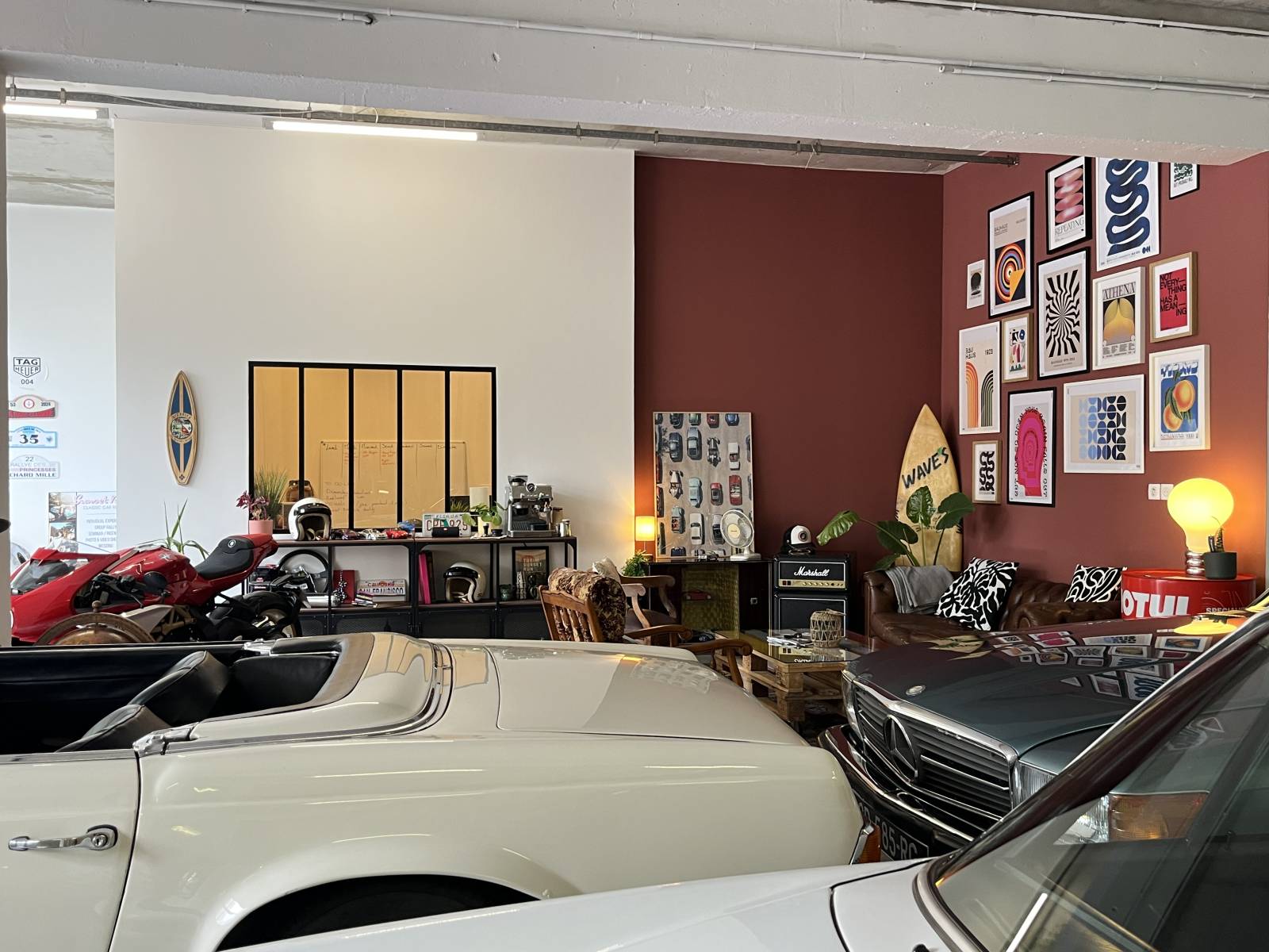 Grâce à son esprit cosy et chaleureux, ce garage-showroom se distingue des lieux traditionnels, apportant une touche d’originalité et de caractère à tous types de projets.