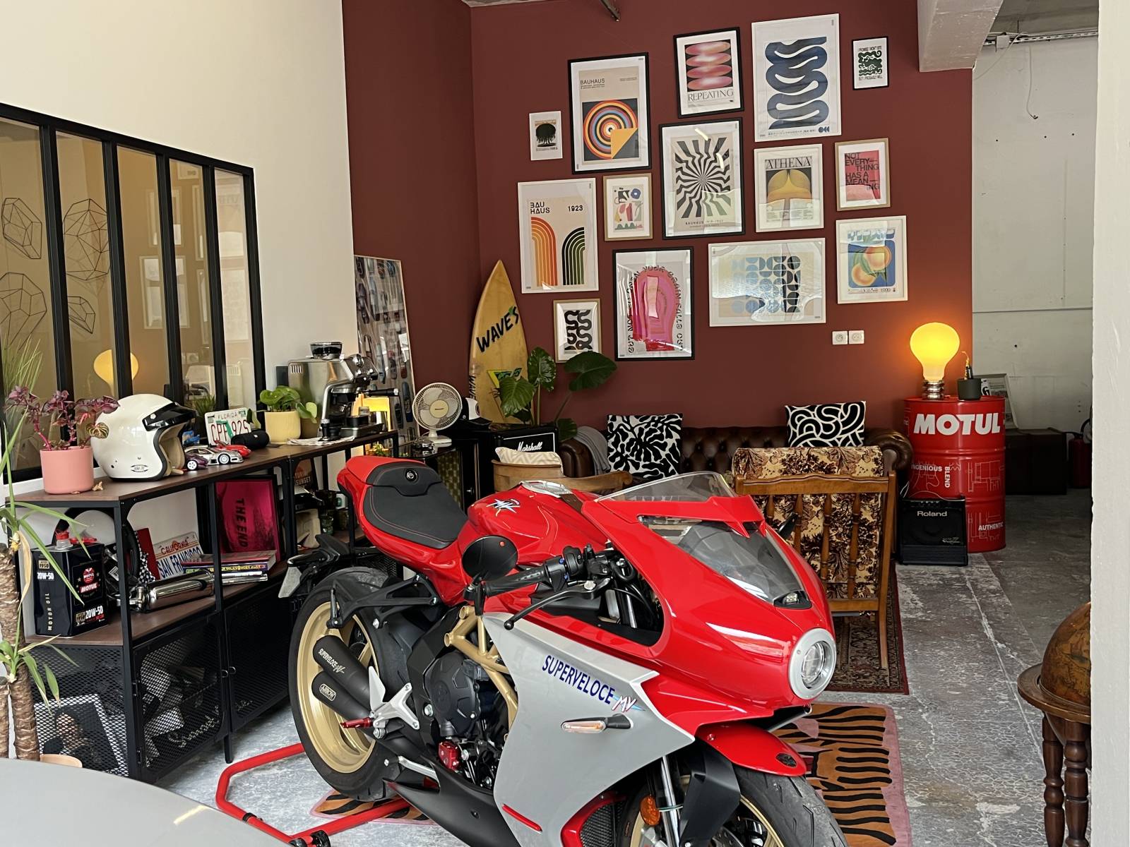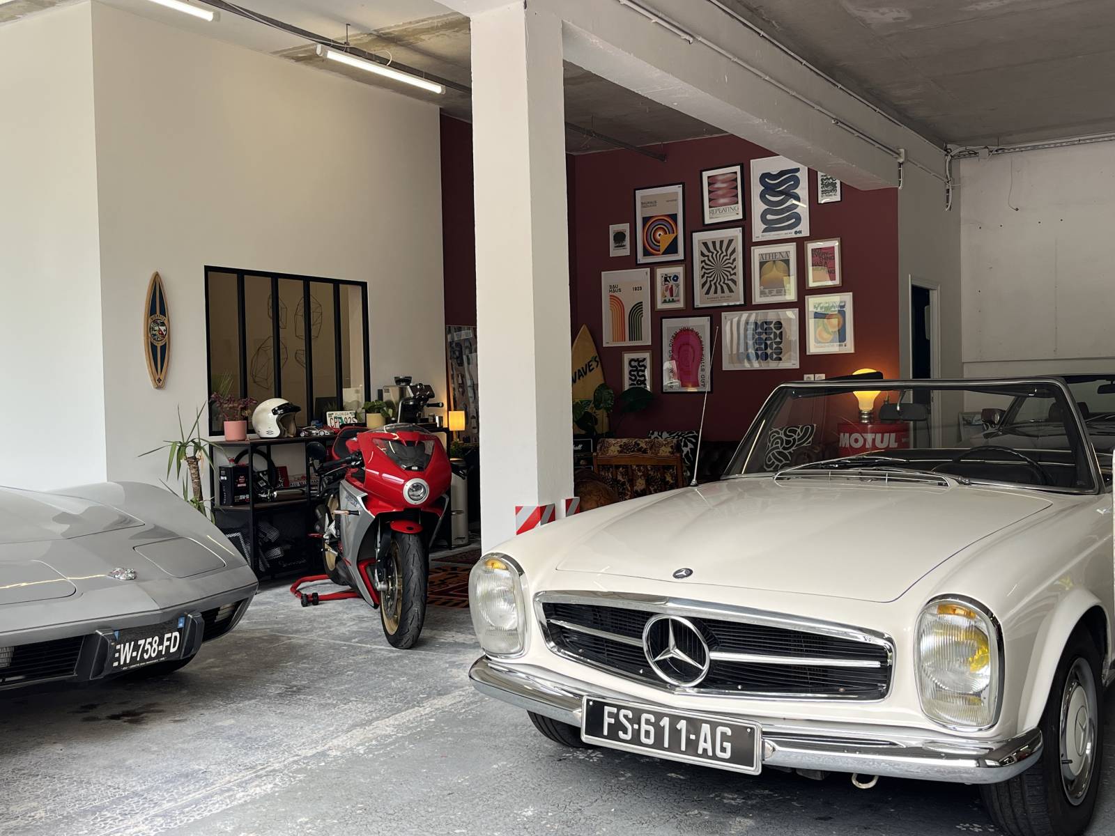 Parmi nos nouveaux décors en catalogue, ce garage au style vintage et surf situé à Nice attire immédiatement l’attention.