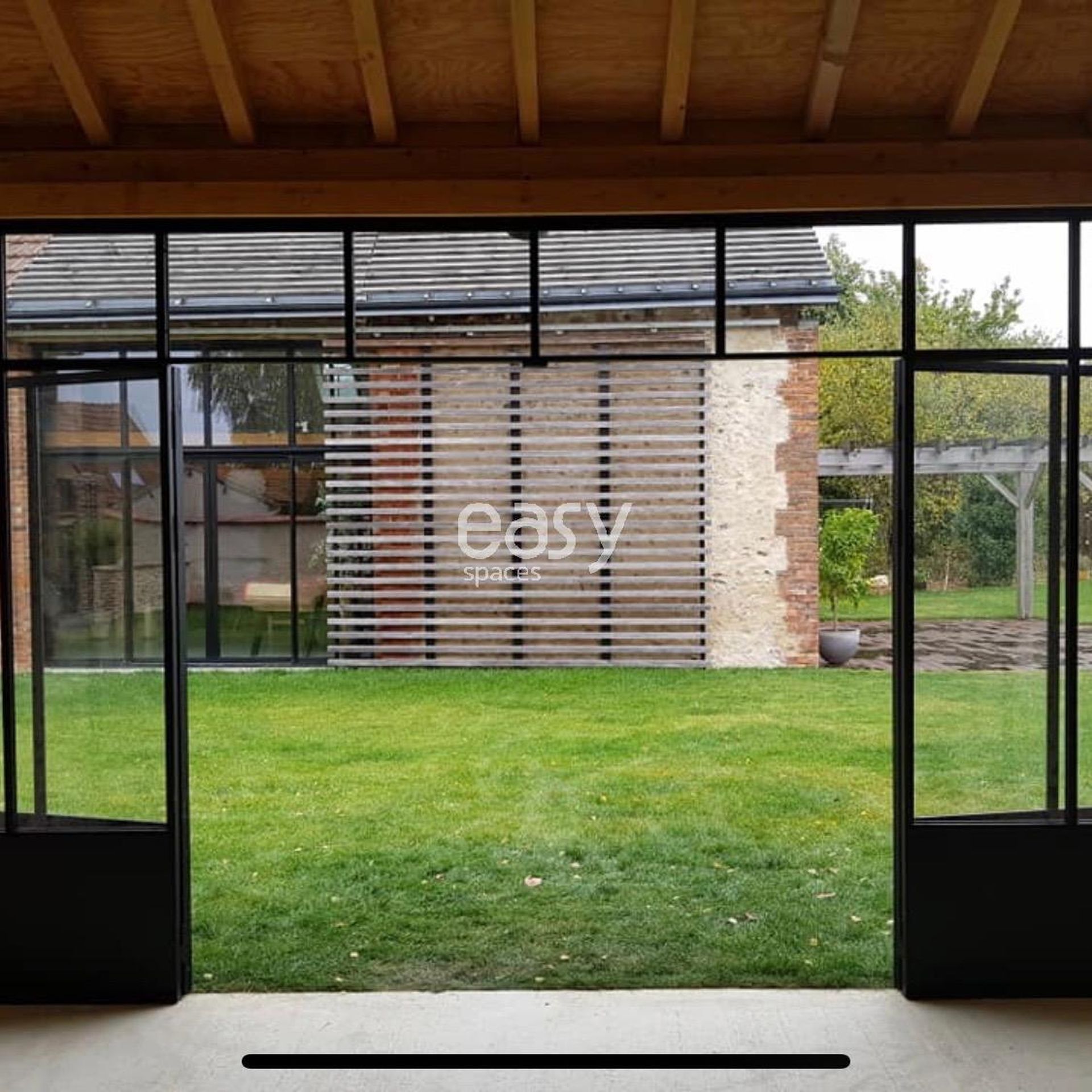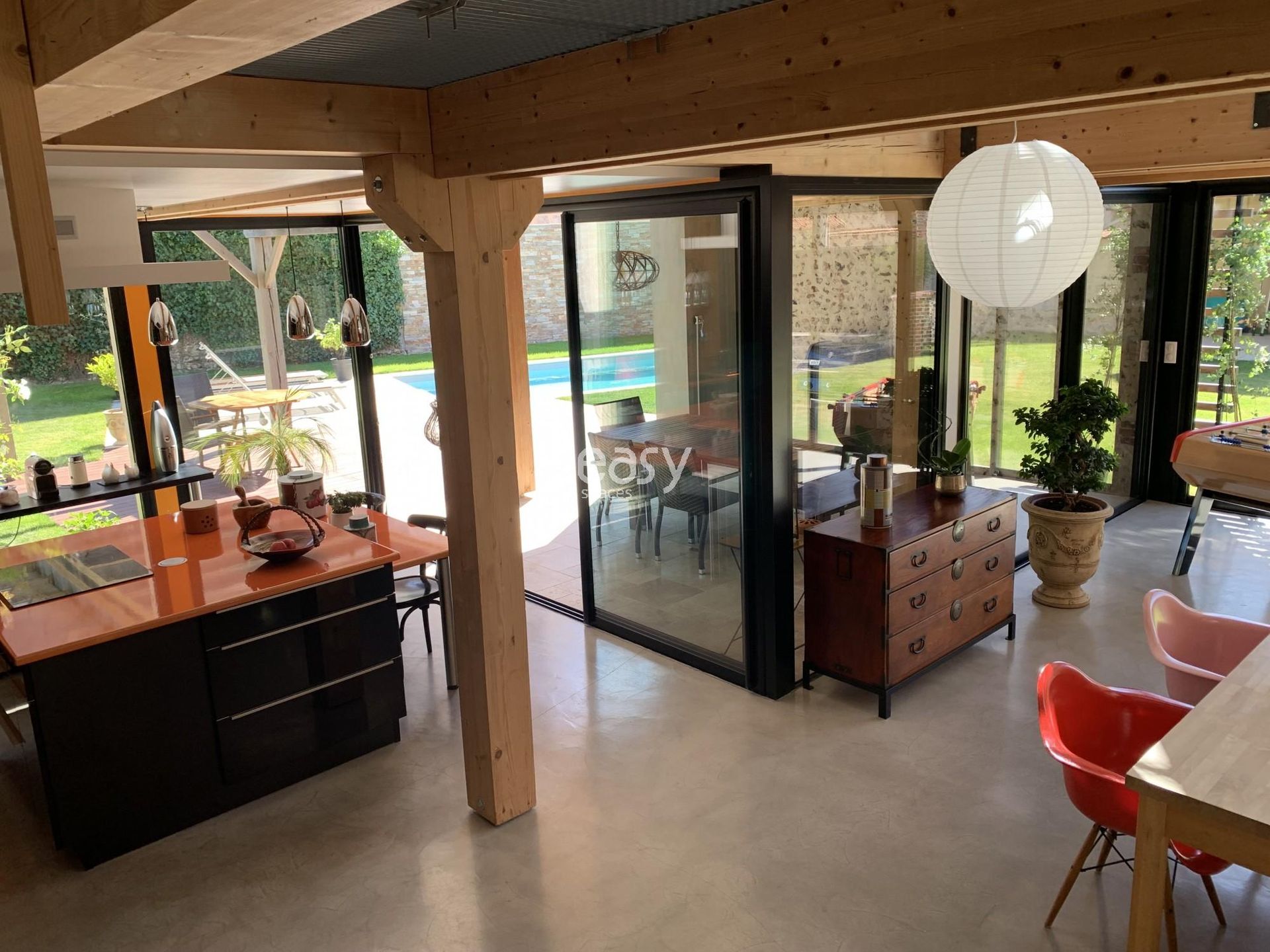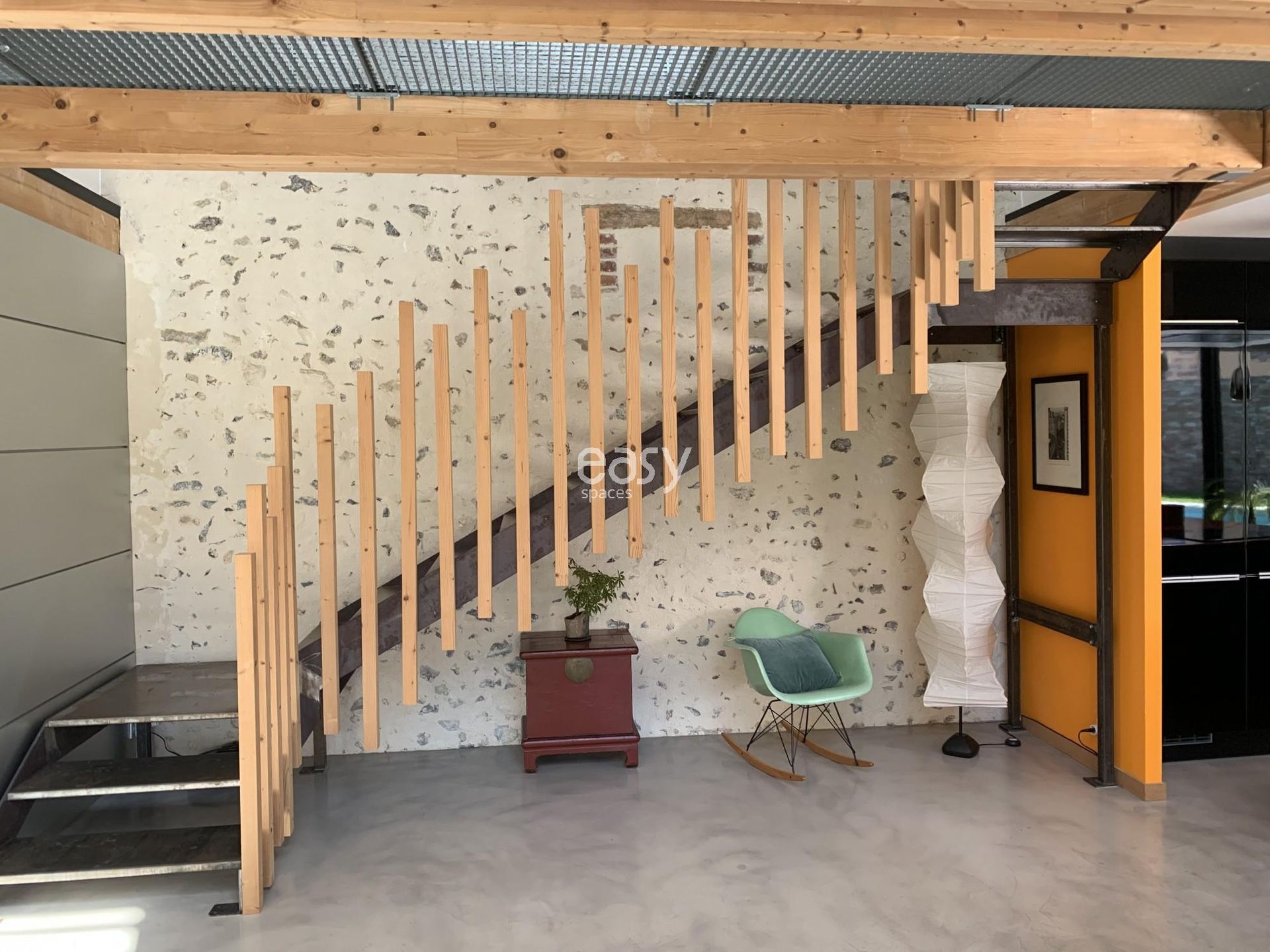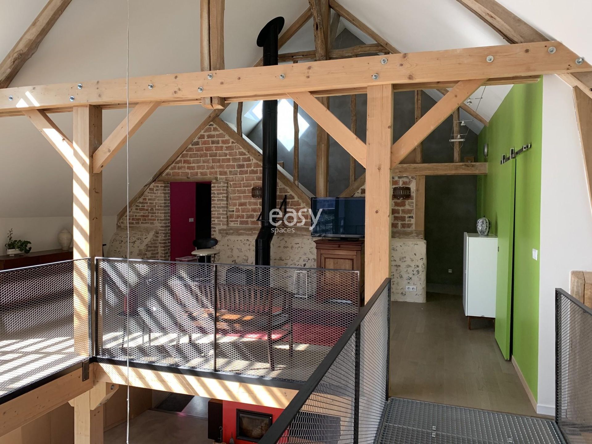 Cette jolie grange renovée en location pour shooting possède un grand espace séjour lumieux avec verrières de plus de 100m2, cuisine ouverte, belles hauteurs sous plafond et mélange de matériaux bruts. Sa décoration avec poutres apparentes, sa cheminée et ses murs colorés avec pierres apparentes lui donne un esprit très "cosy". Ce lieu atypique sera idéal pour un shooting photo ou pour un tournage de spot publicitaire près de Paris.