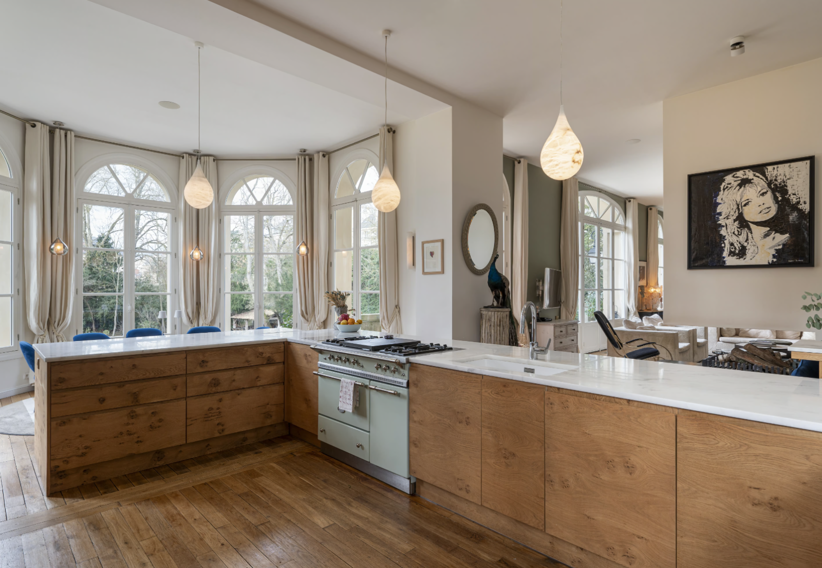 Avec plusieurs salons à la décoration luxueuse et très photogénique pour de la mode par exemple, sa cuisine ouverte et ses ambiances chic et élégantes ce décor offre de nombreuses possibilités pour des prises de vues.