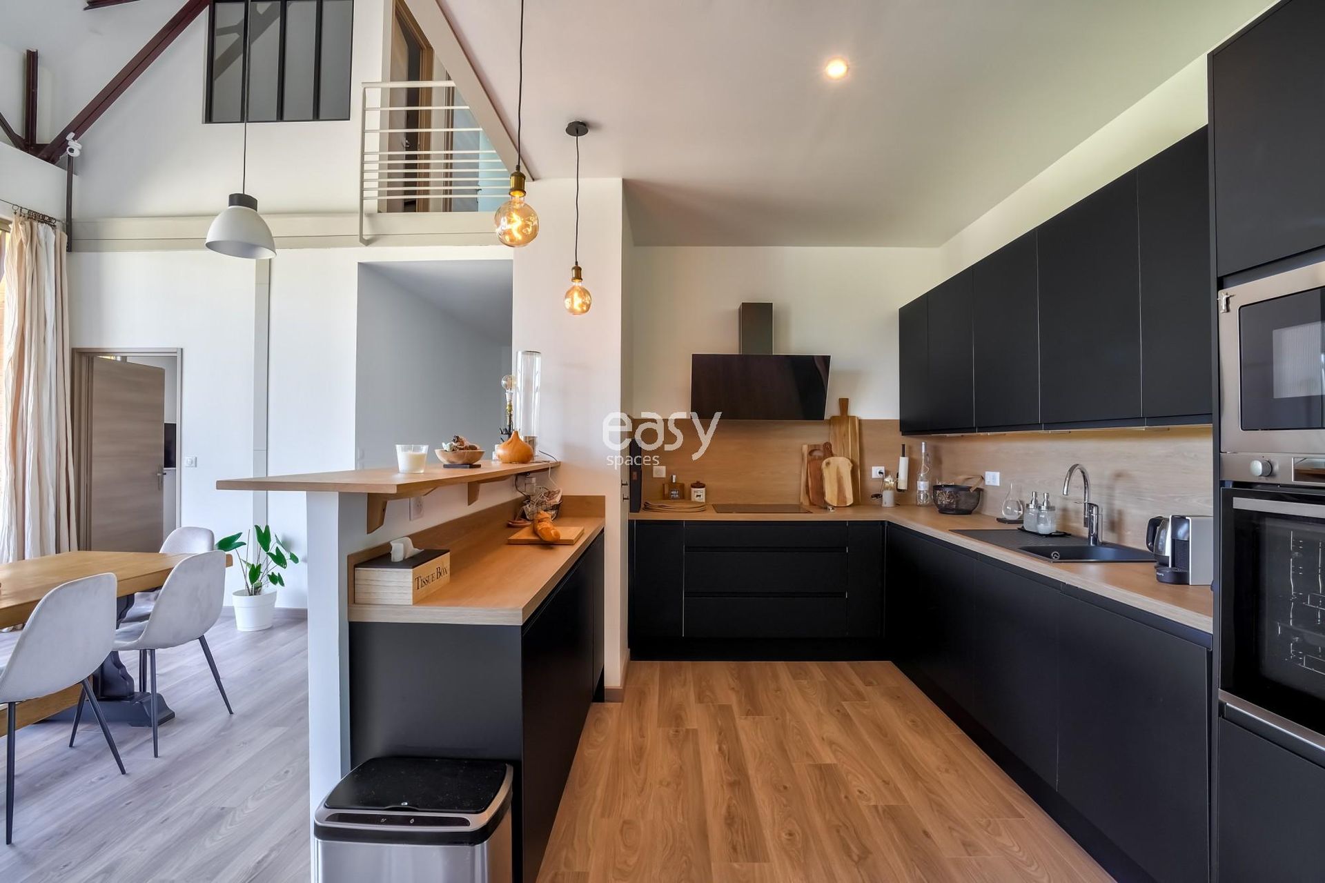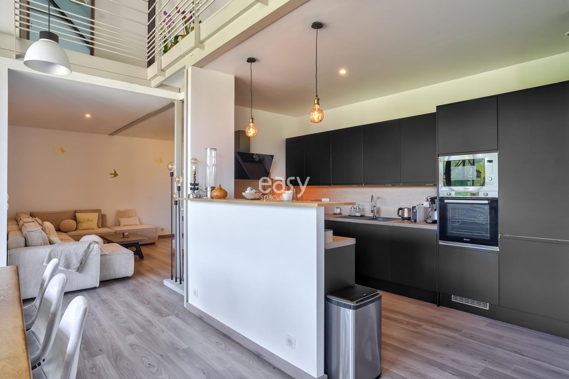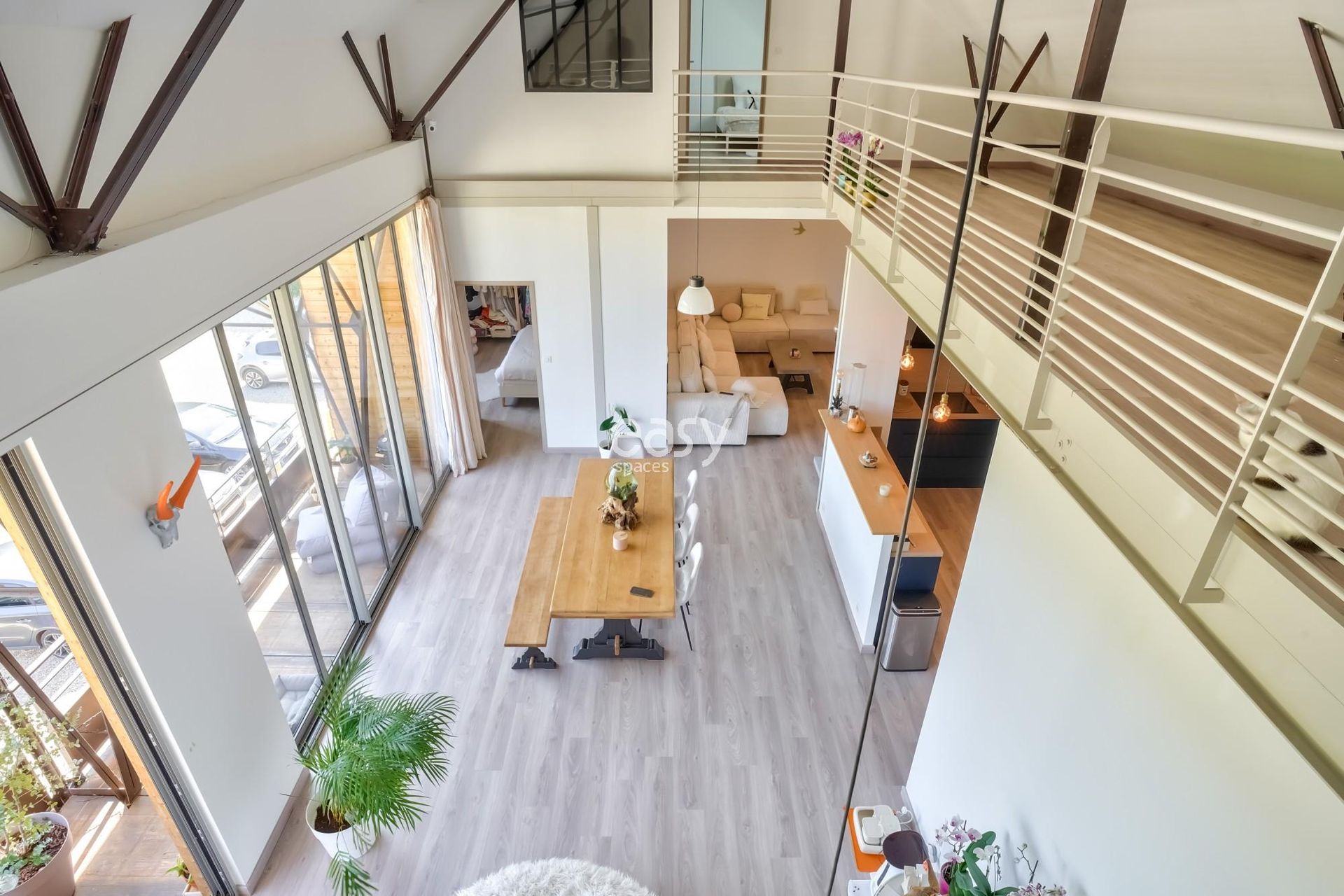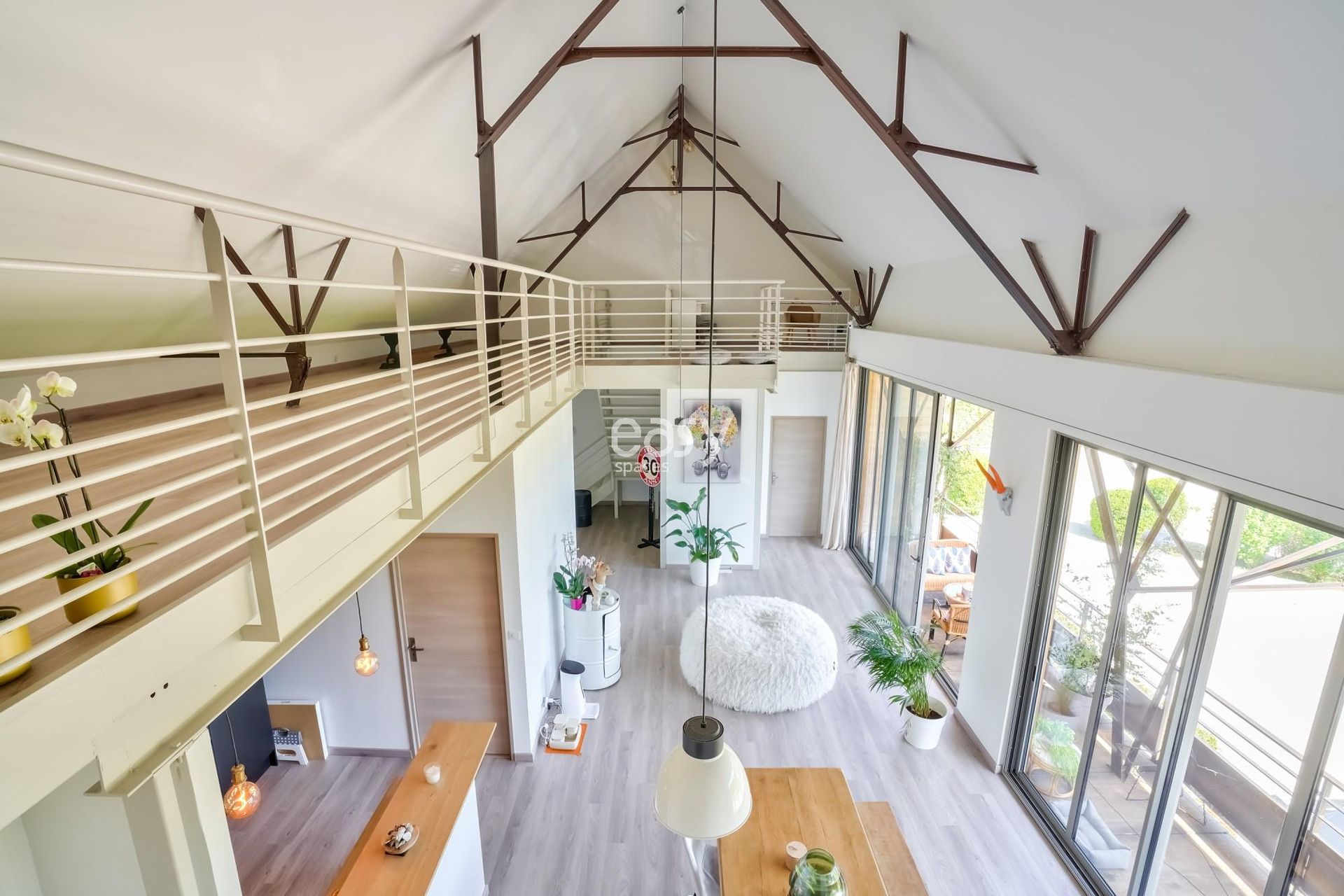 Typologie : maison-loft contemporaine, double hauteur + mezzanine.