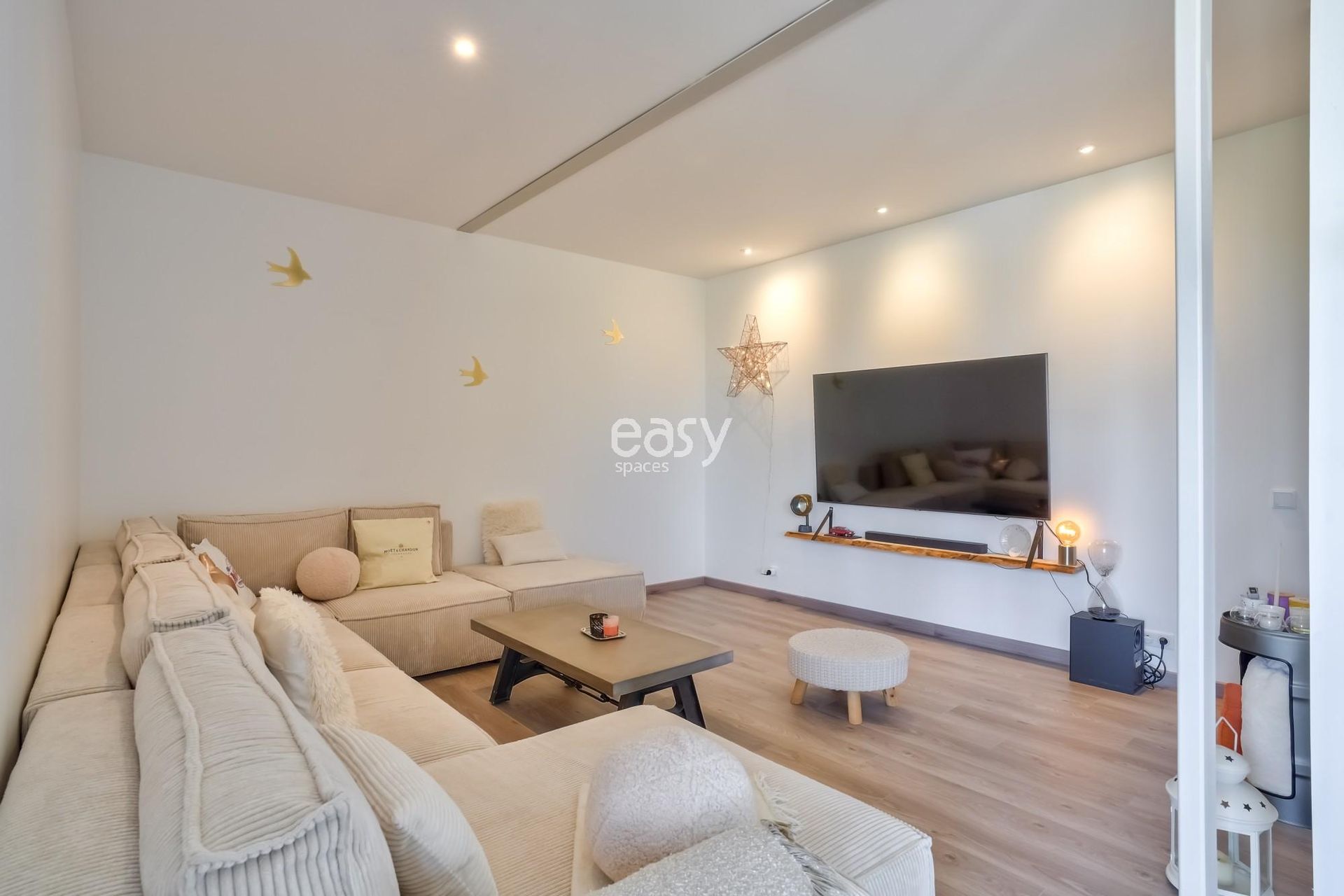 Décors prêts à tourner : cuisine design noir/bois (îlot), salon crème modulable, terrasse végétalisée, chambre avec dressing ouvert, salle de bain (baignoire + douche à l’italienne).