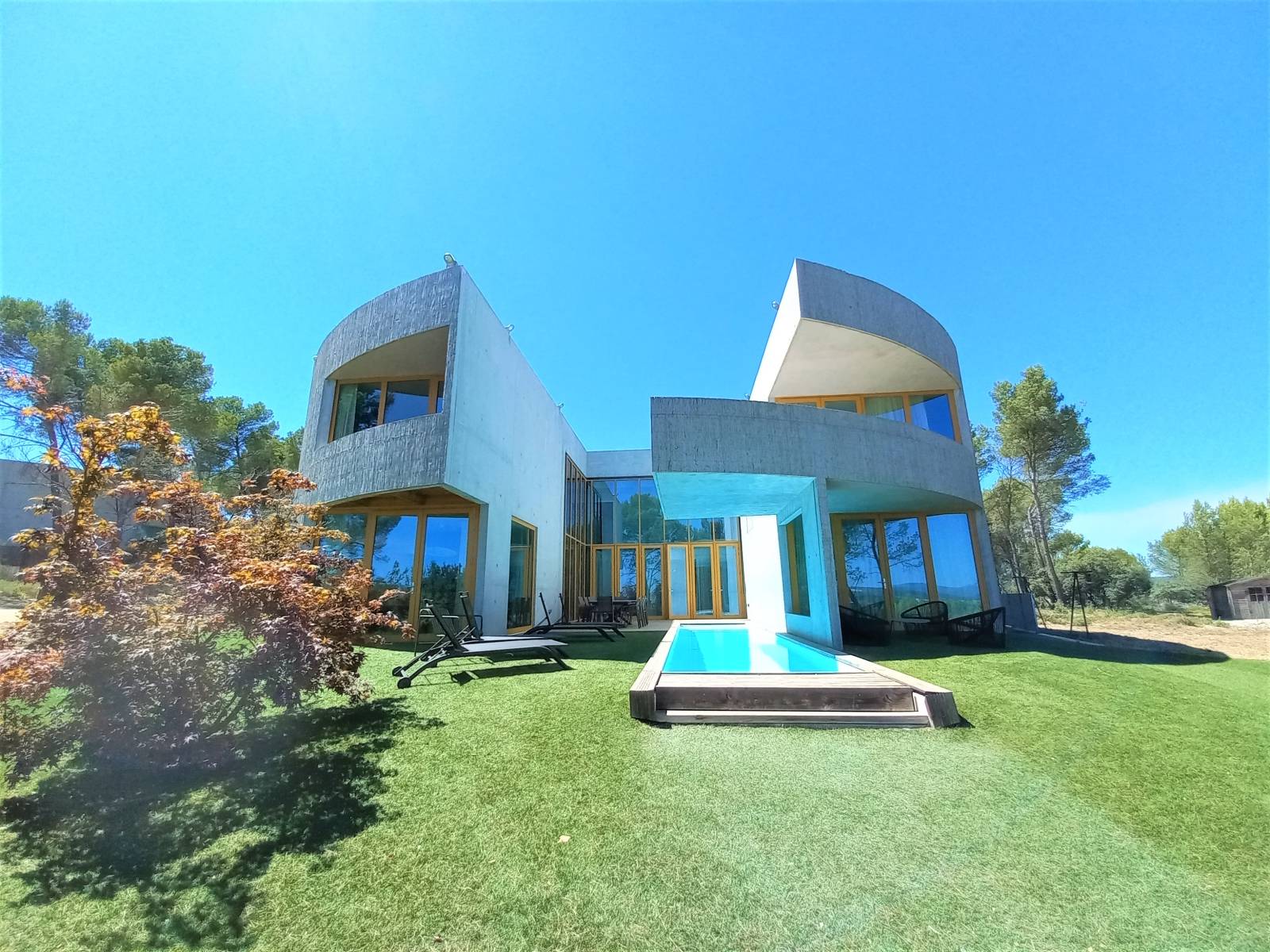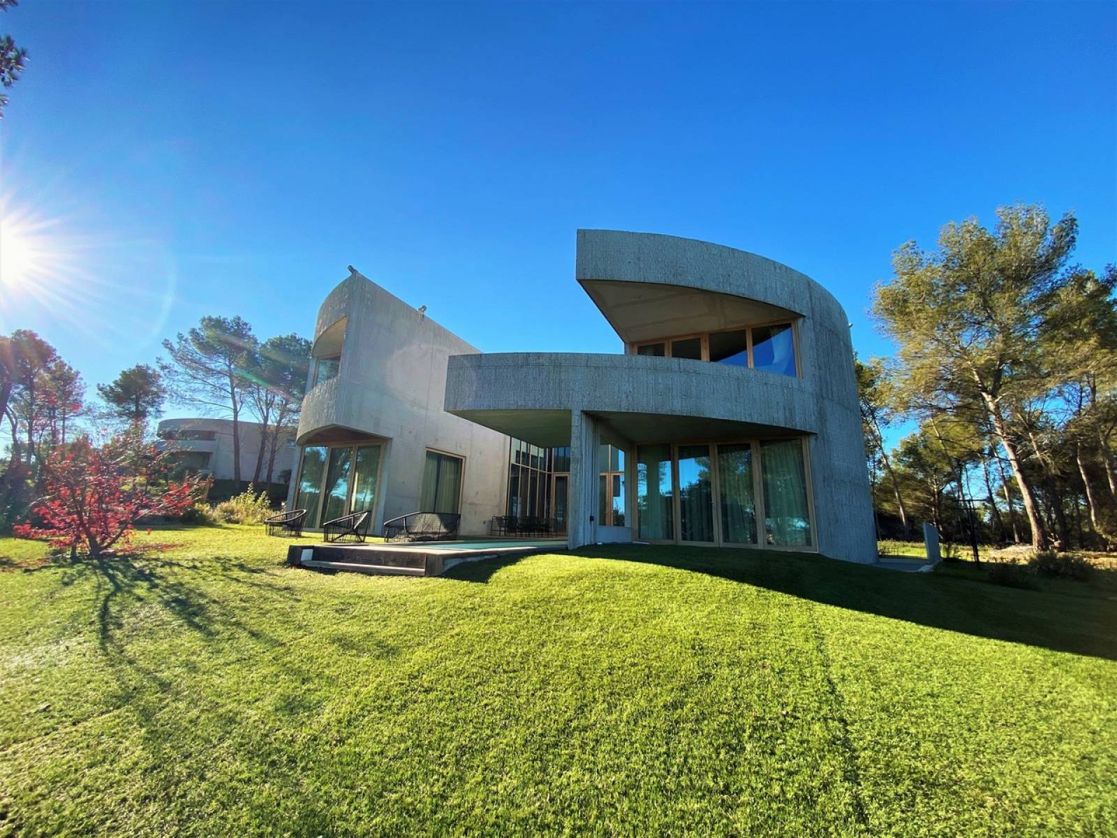 Situé au coeur d'un espace événementiel insolite et grandiose, cette villa en béton brut à l'architecture atypique attire l'oeil par sa structure en béton imposante et ses lignes audacieuses!