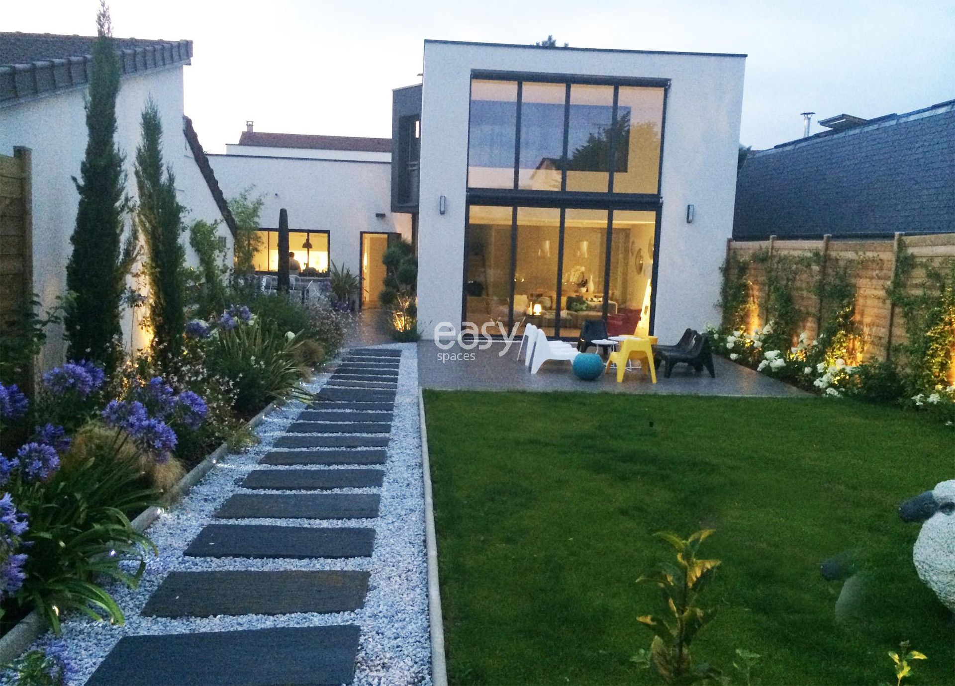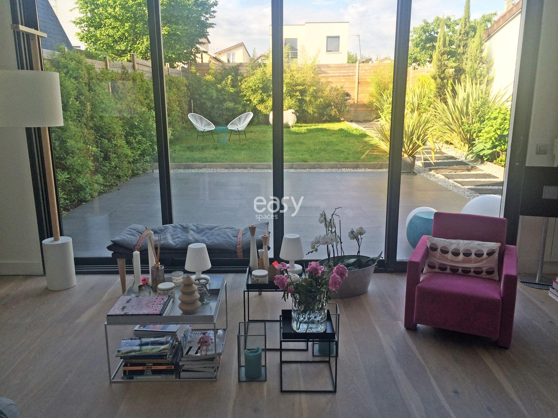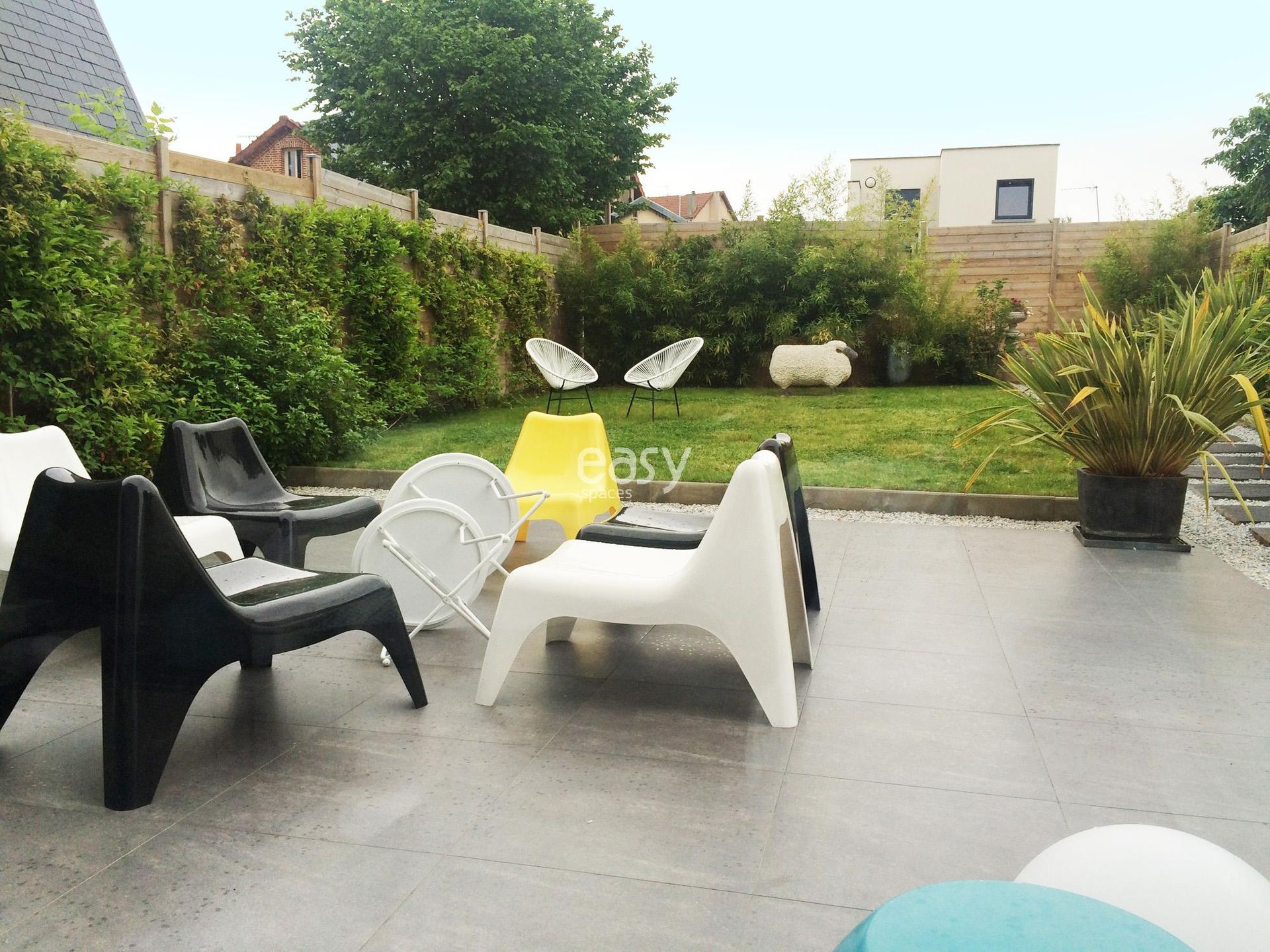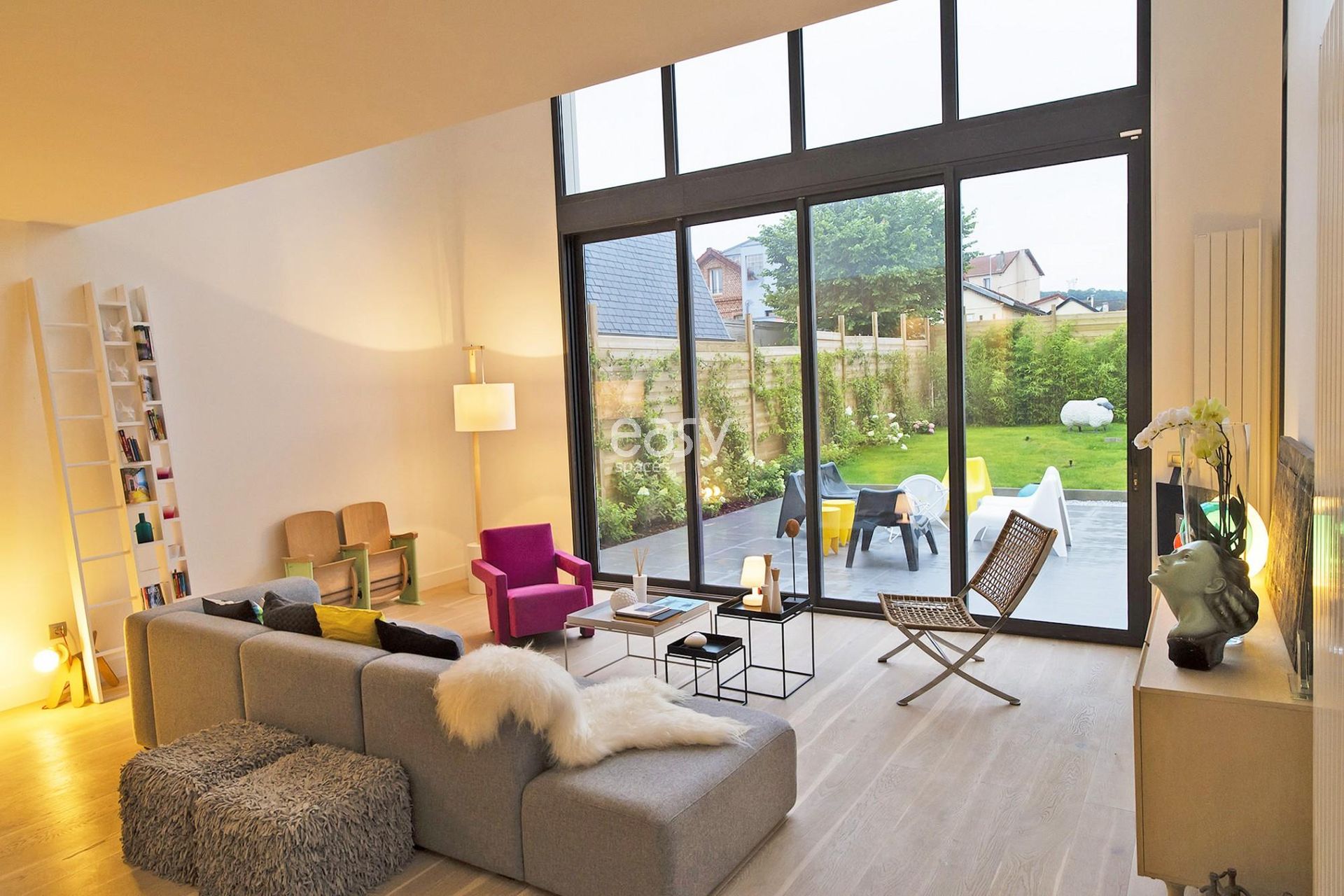 Les atouts du lieu : Grand espace séjour, jardin plat et arboré, décoration contemporaine, lieu atypique, situé près de Paris, adaptabilité pour divers événements.