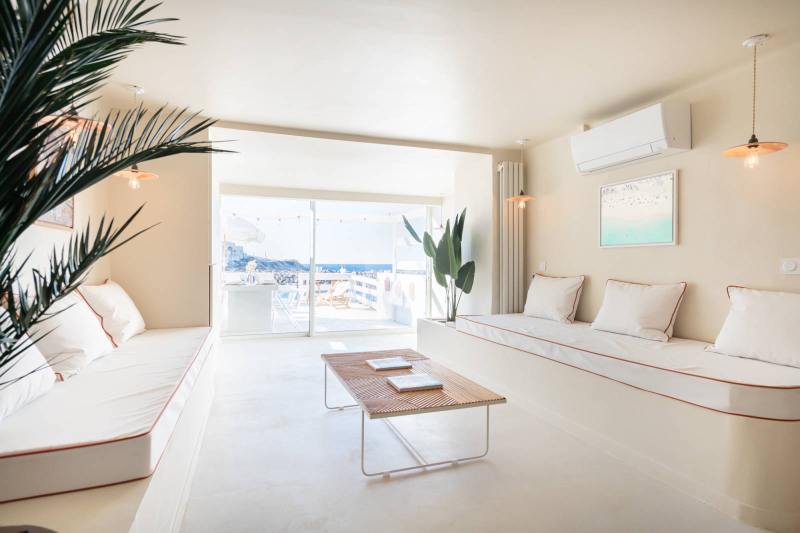 • Vue et Accès Mer : Une magnifique terrasse de 50m² qui s'ouvre directement sur la plage et la mer.