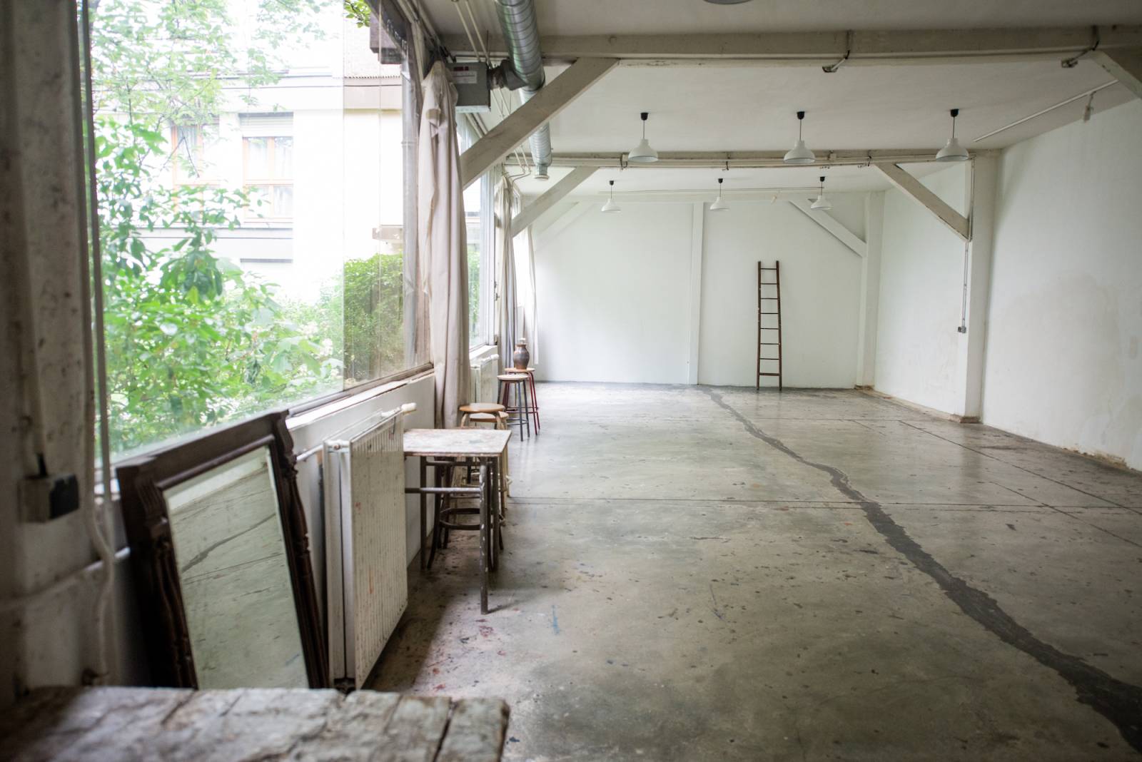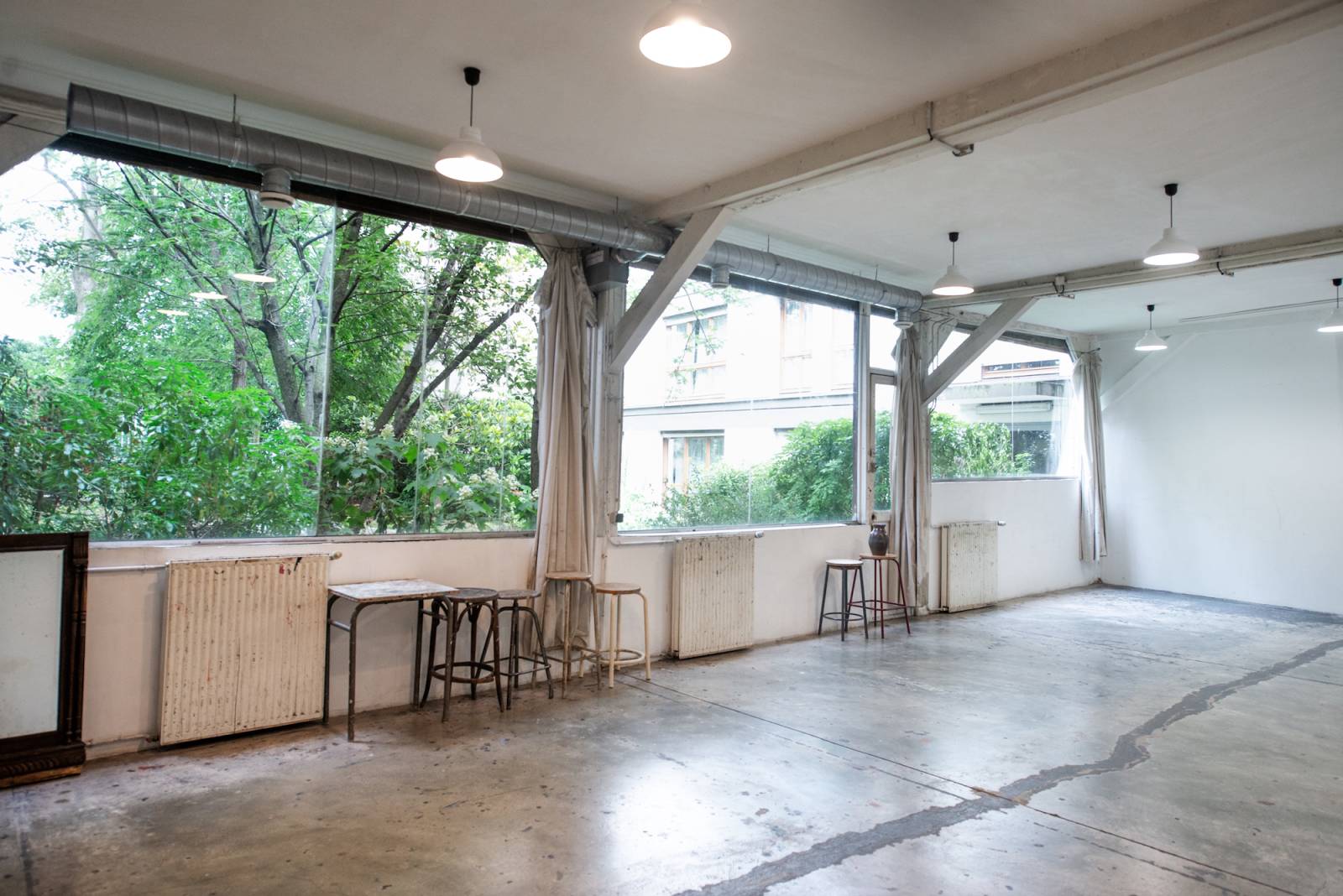 Avec une vue sur une cour calme, ce lieu offre un décor original et atypique pour des projets artistiques.