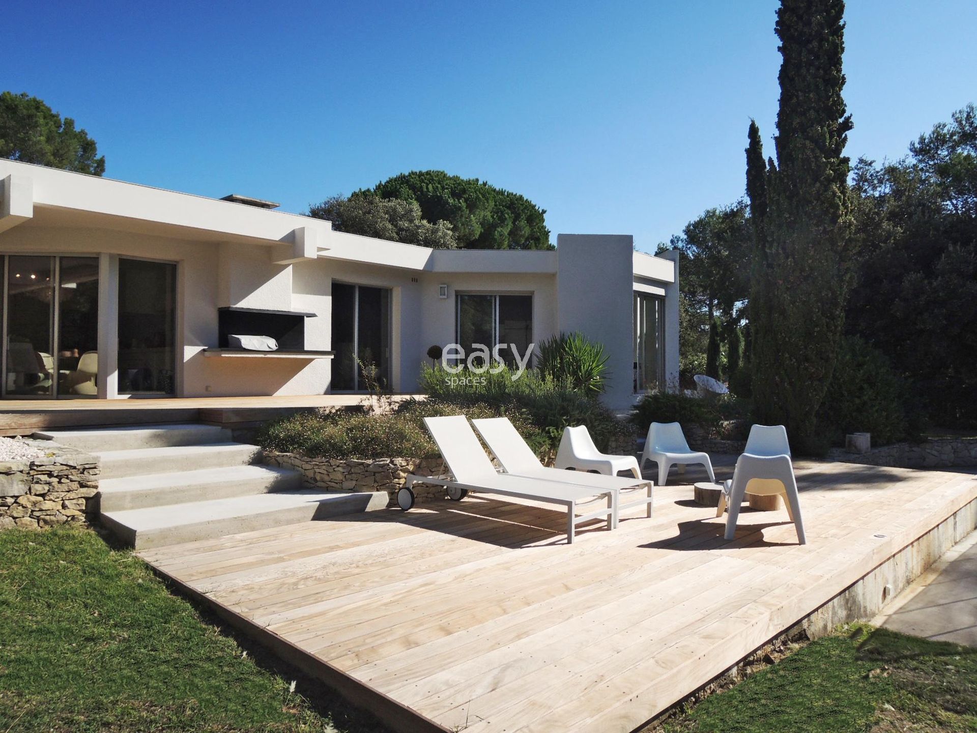 Disposant de plusieurs pièces thématiques et cosy, exposée Sud et face à la pinède, cette villa moderne agréablement aménagée est en location pour l'organisation de productions photographiques dans le Sud de la France.