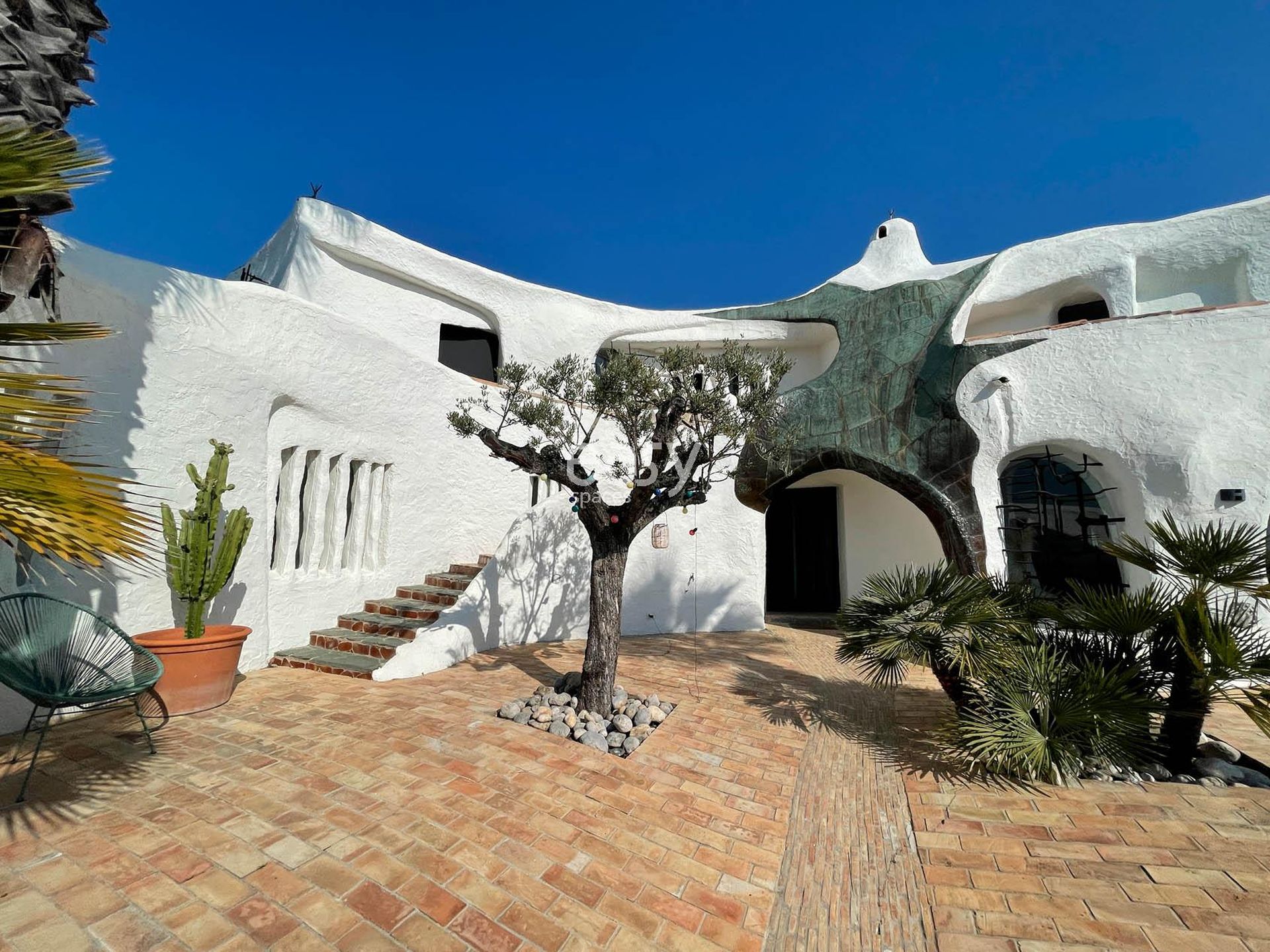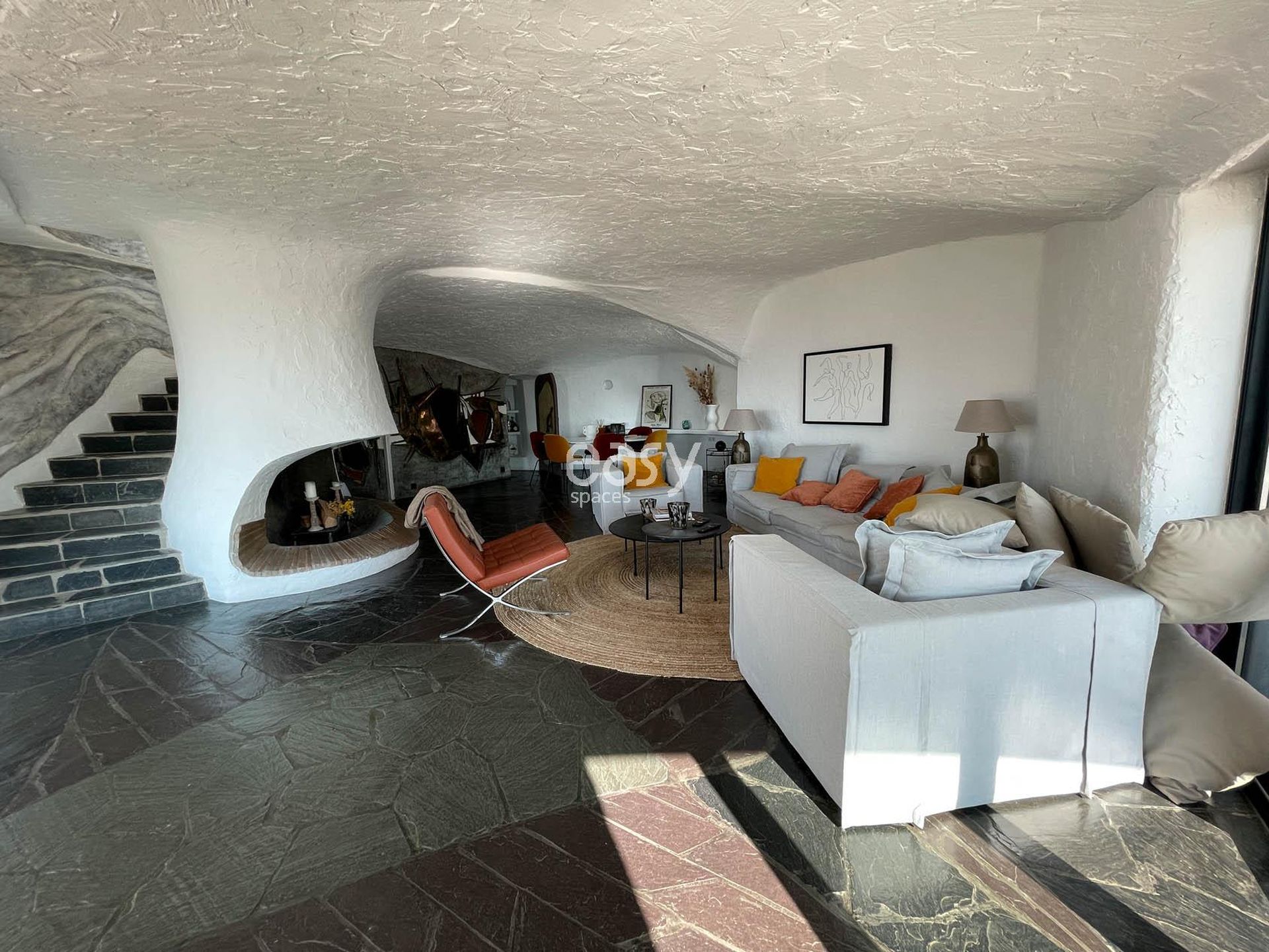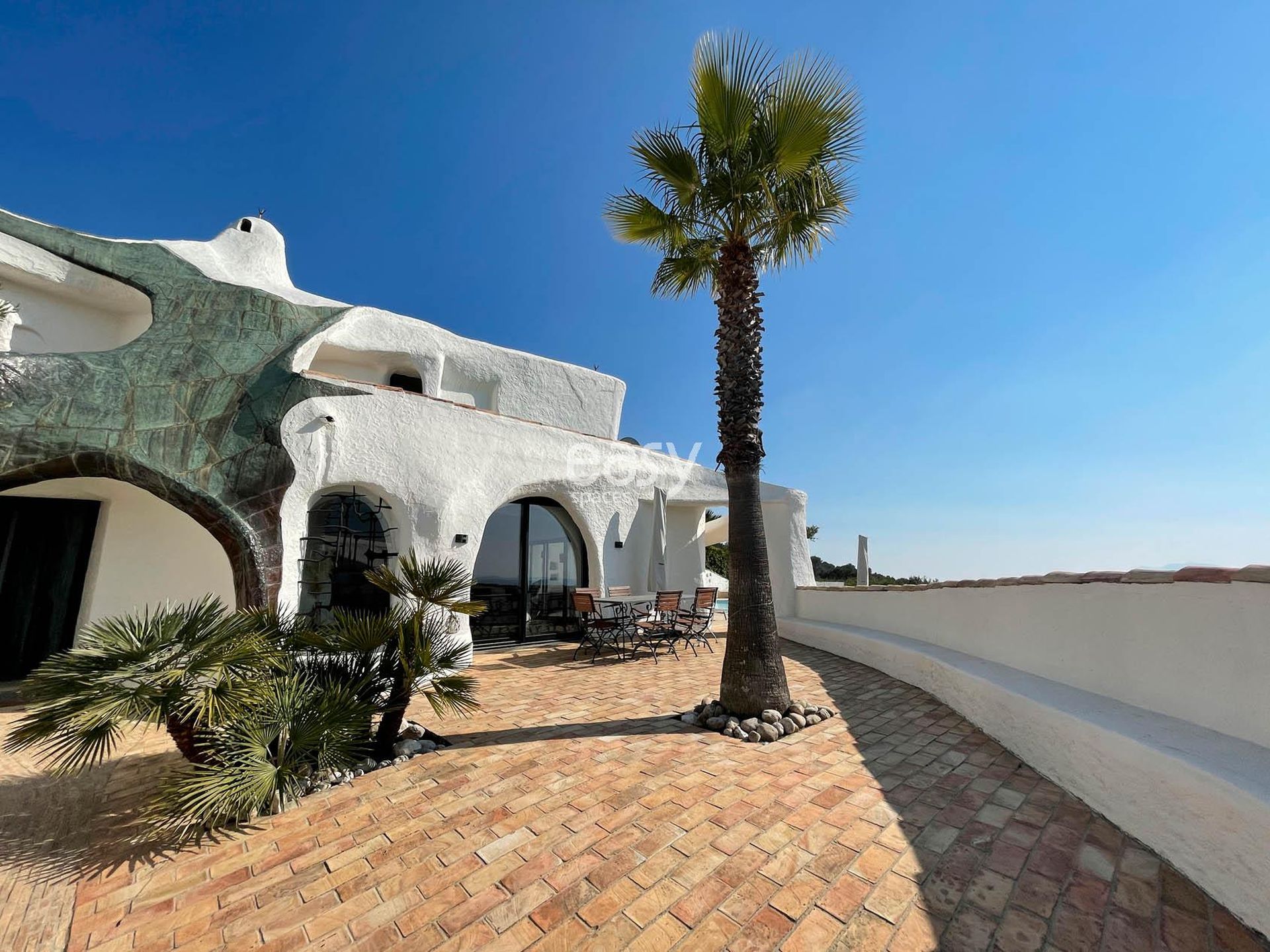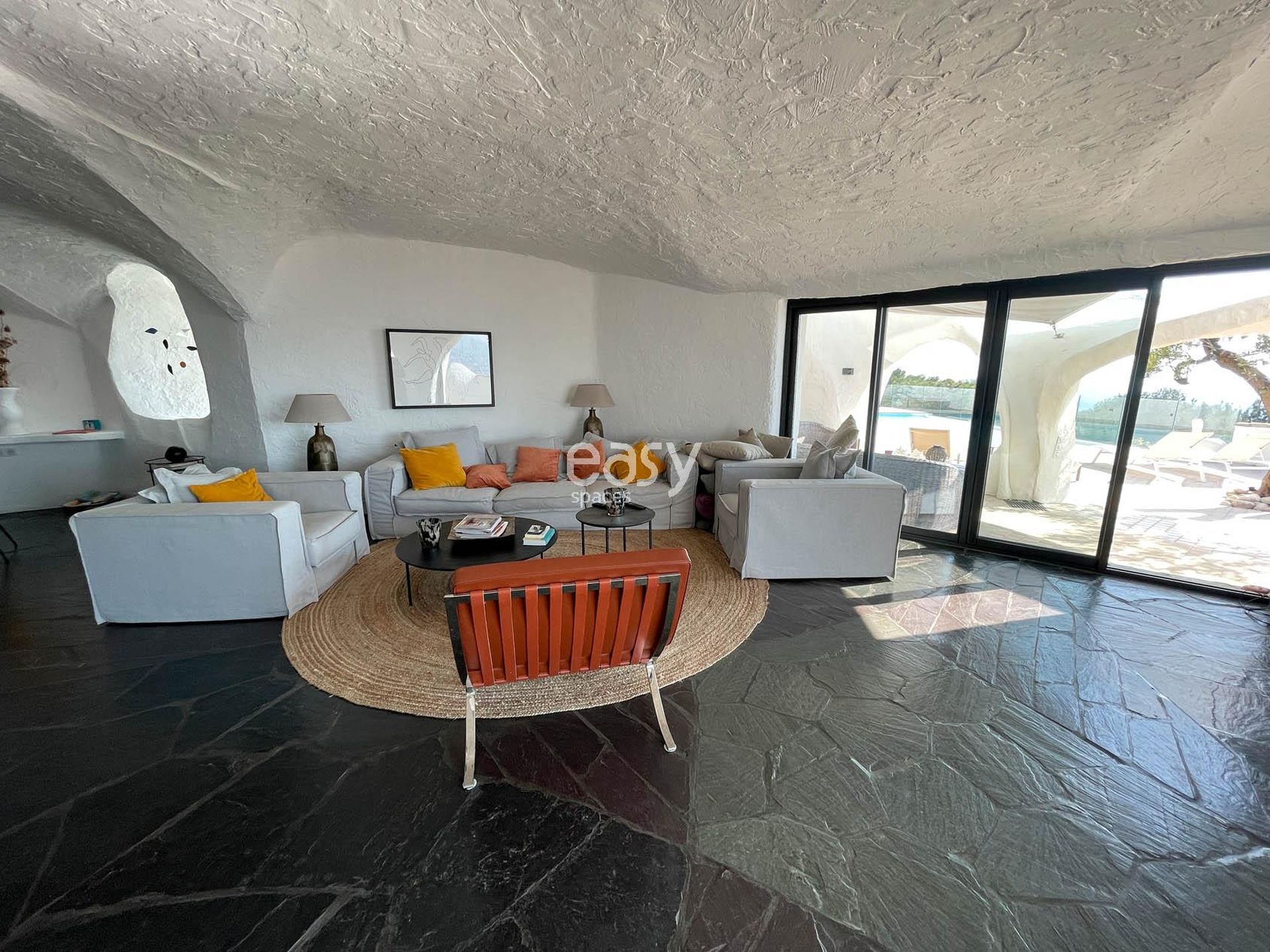 Ce superbe décor atypique possède un grand espace séjour lumineux, avec vue sur les alentours et la piscine. De plus, ses exterieurs avec la terrasse avec une vue panoramique et les multiples recoins de cette maison si spéciale sont autant de lieux de shooting originaux.