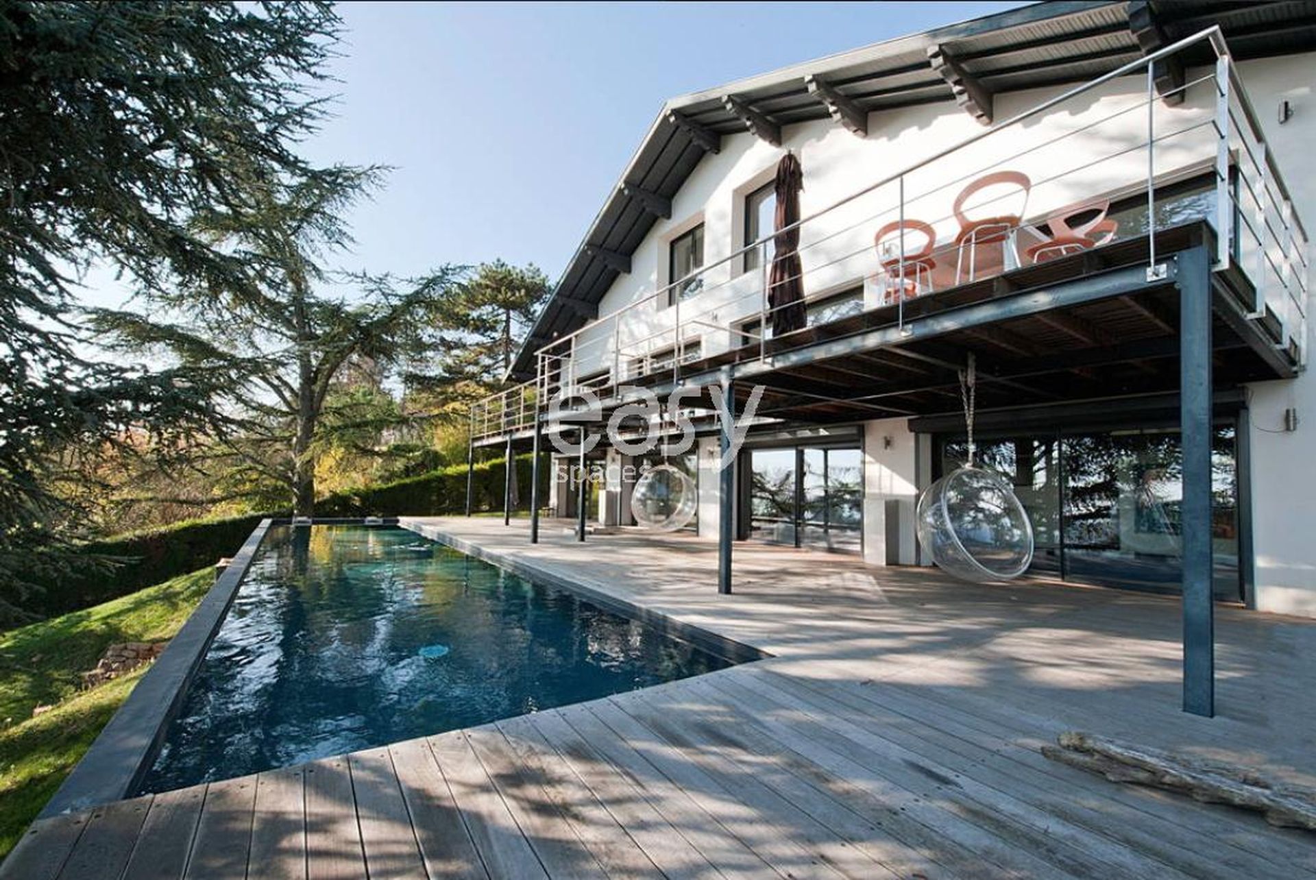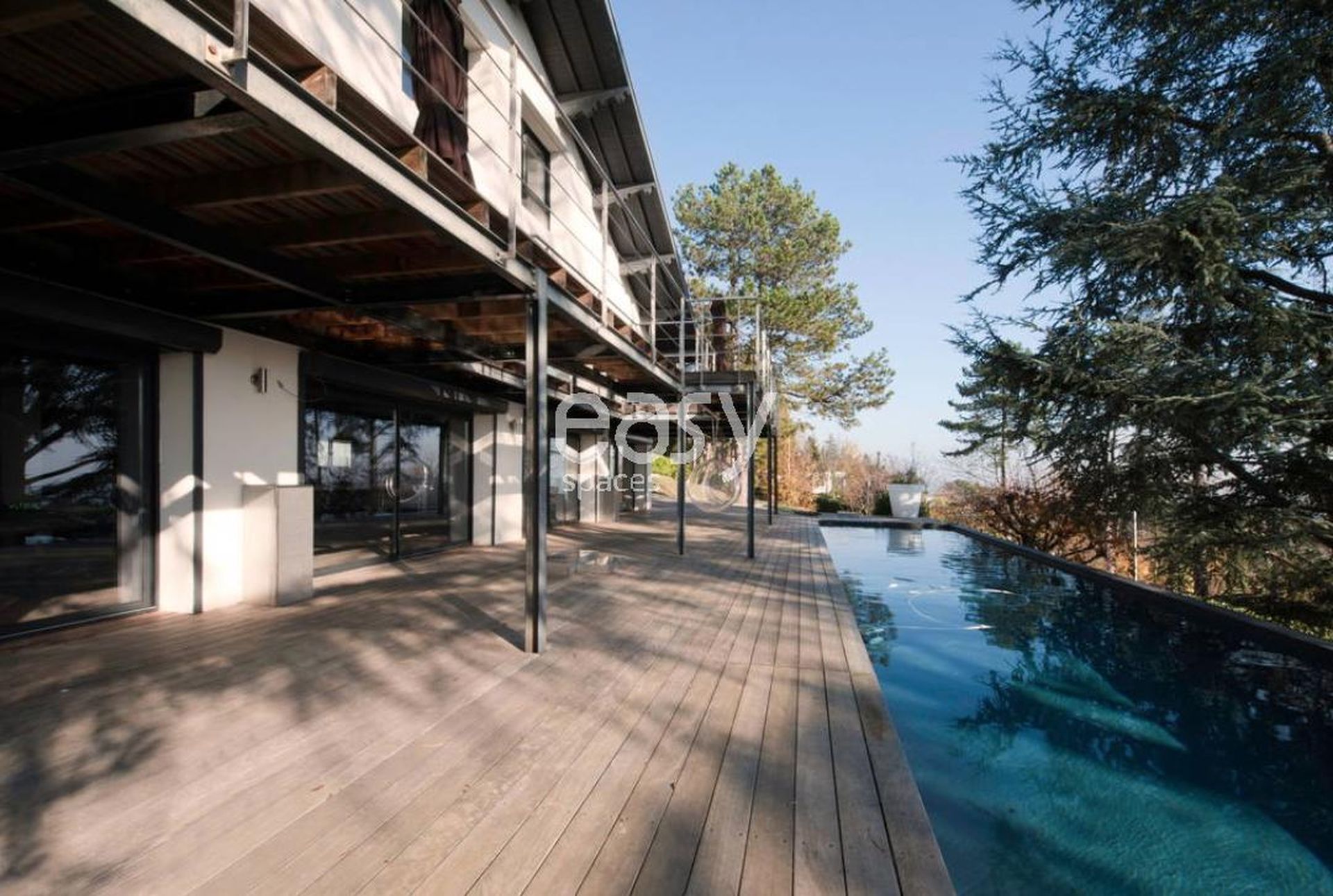 Venez découvrir ce lieu original pour vos besoins créatifs et professionnels: une belle maison contemporaine atypique près de Lyon, parfaite pour shootings photo, tournages de film, et événements professionnels en région Rhône Alpes. Avec sa terrasse et sa piscine en couloir de nage, elle offre une vue à 180 degrés sur la ville et le Mont d'Or, créant ainsi un cadre inspirant pour tout projet artistique ou rencontre d'affaires.
