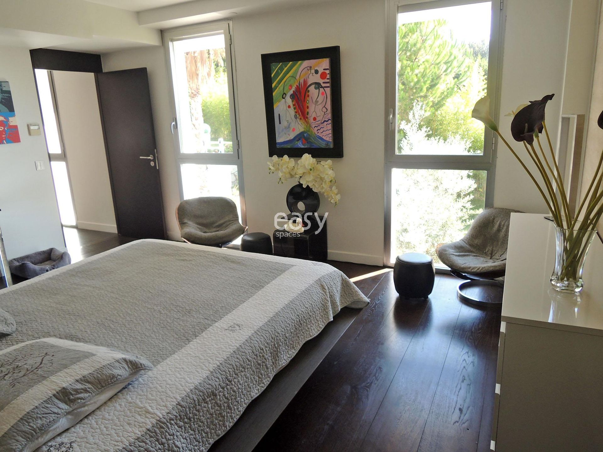 Le lieu, plein de lumière naturelle et très ouvert grâce à des baies vitrées à galandage, s'avère être un décor idéal et original.