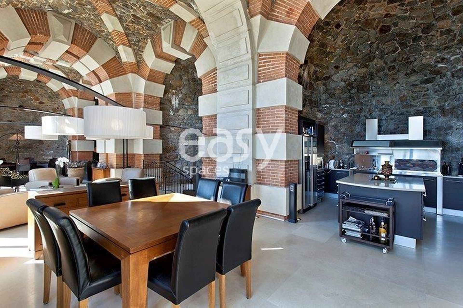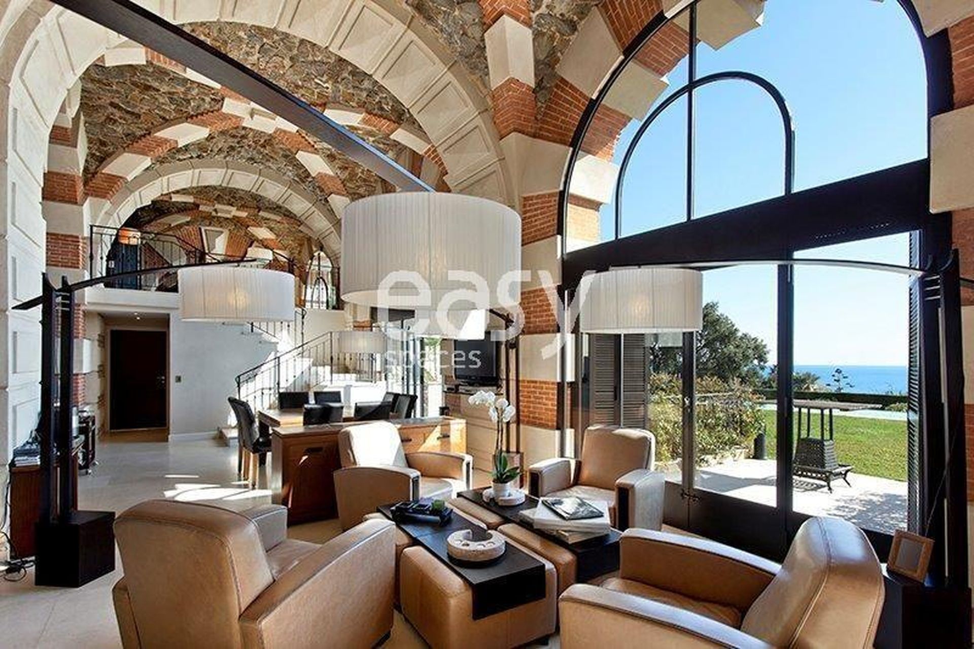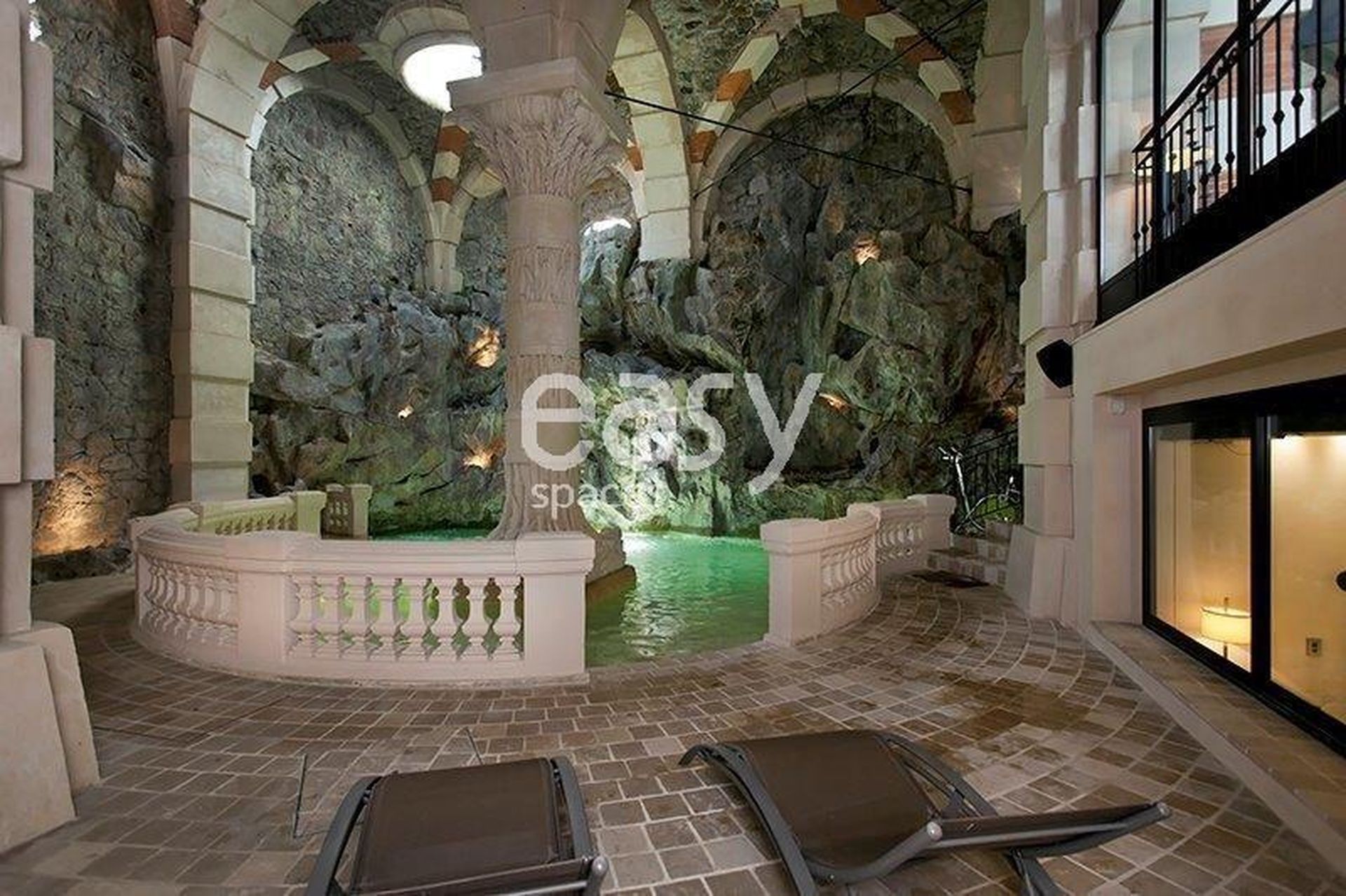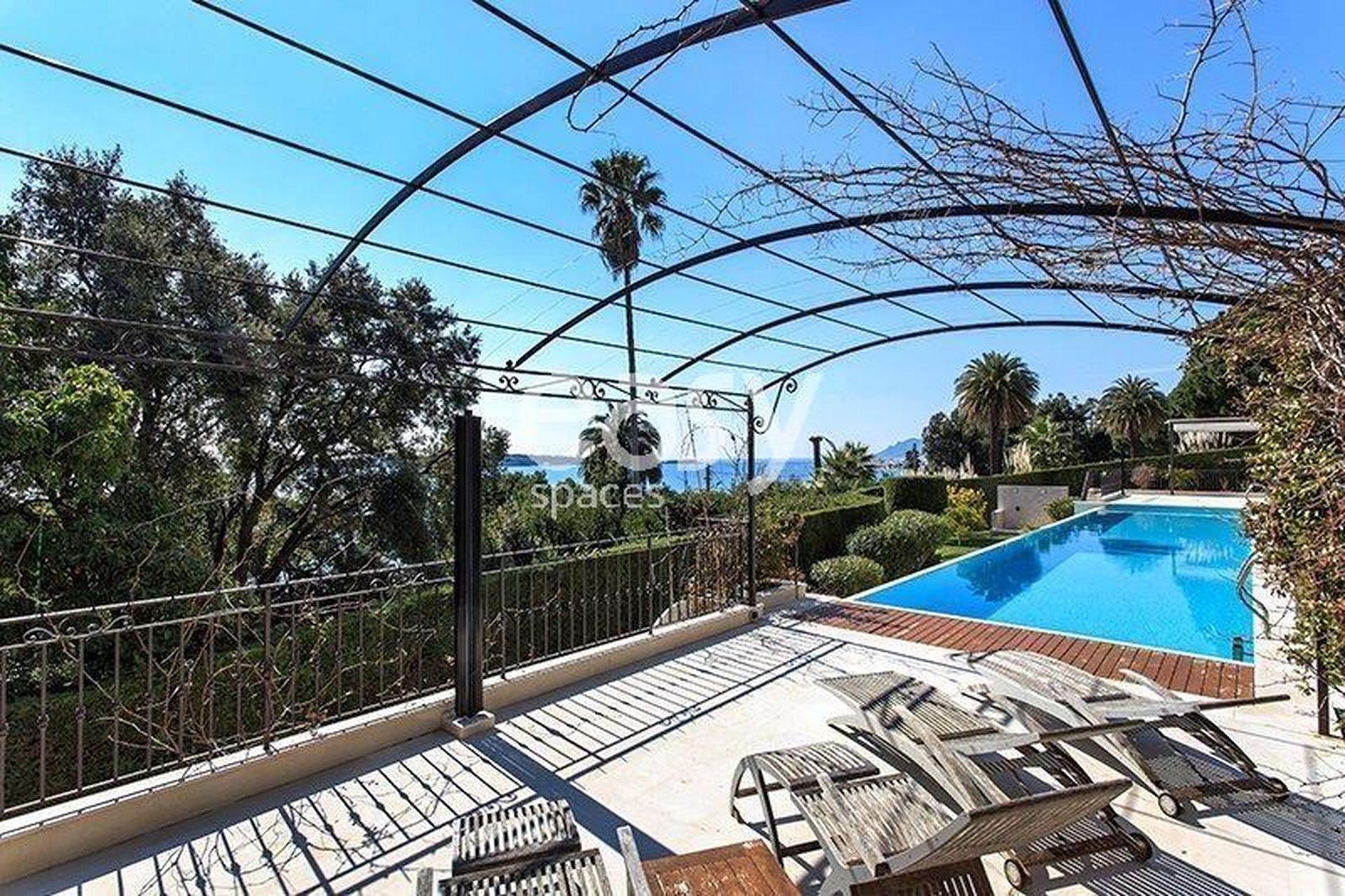 Les atouts du lieu : Véritable décor polyvalent à Cannes, un plafond en arche style \'cathédrale\', piscine intérieure grotte, jardin avec piscine, vue mer panoramique.