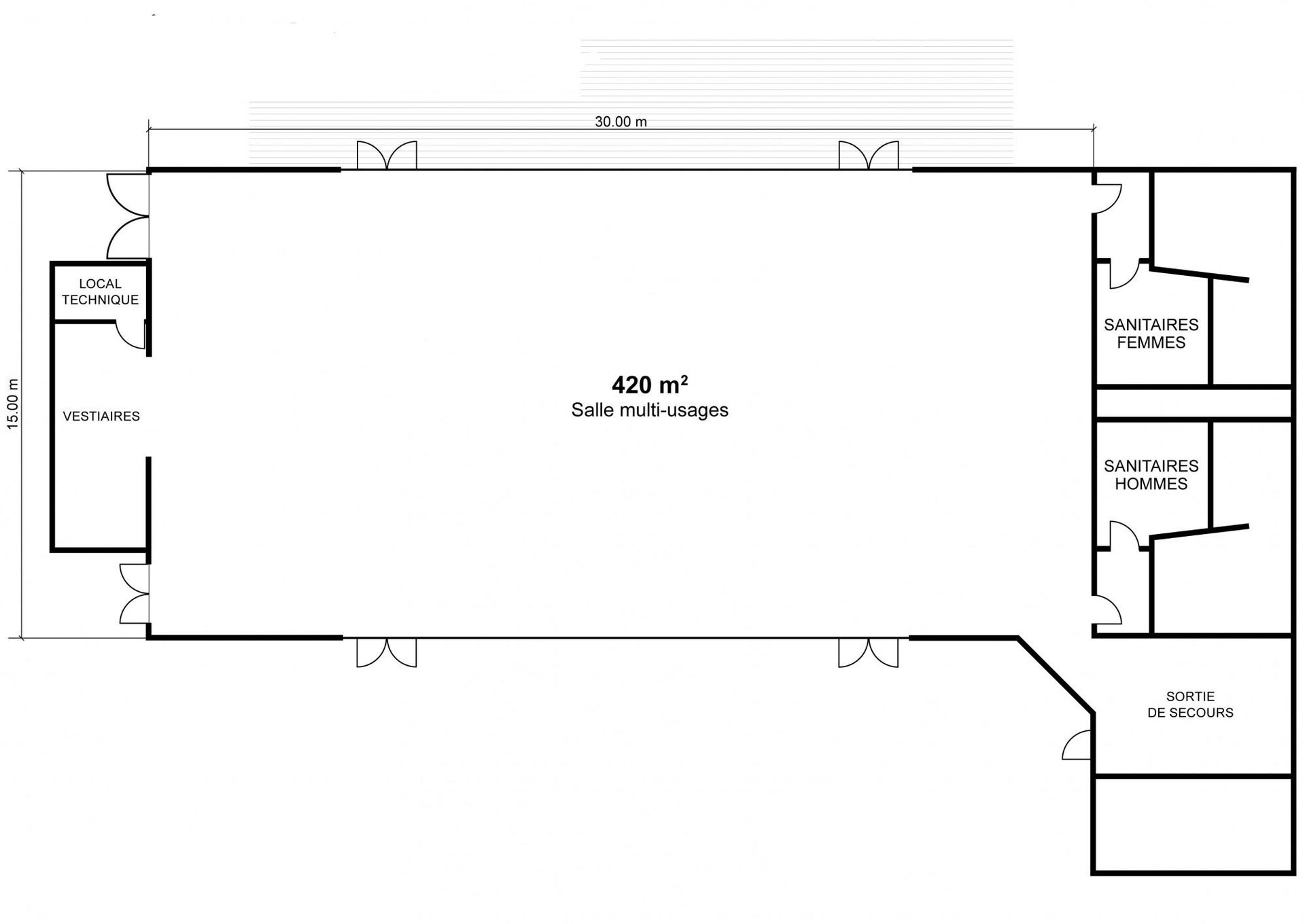 Espaces annexes pratiques : vestiaires, loges techniques, sanitaires modernes