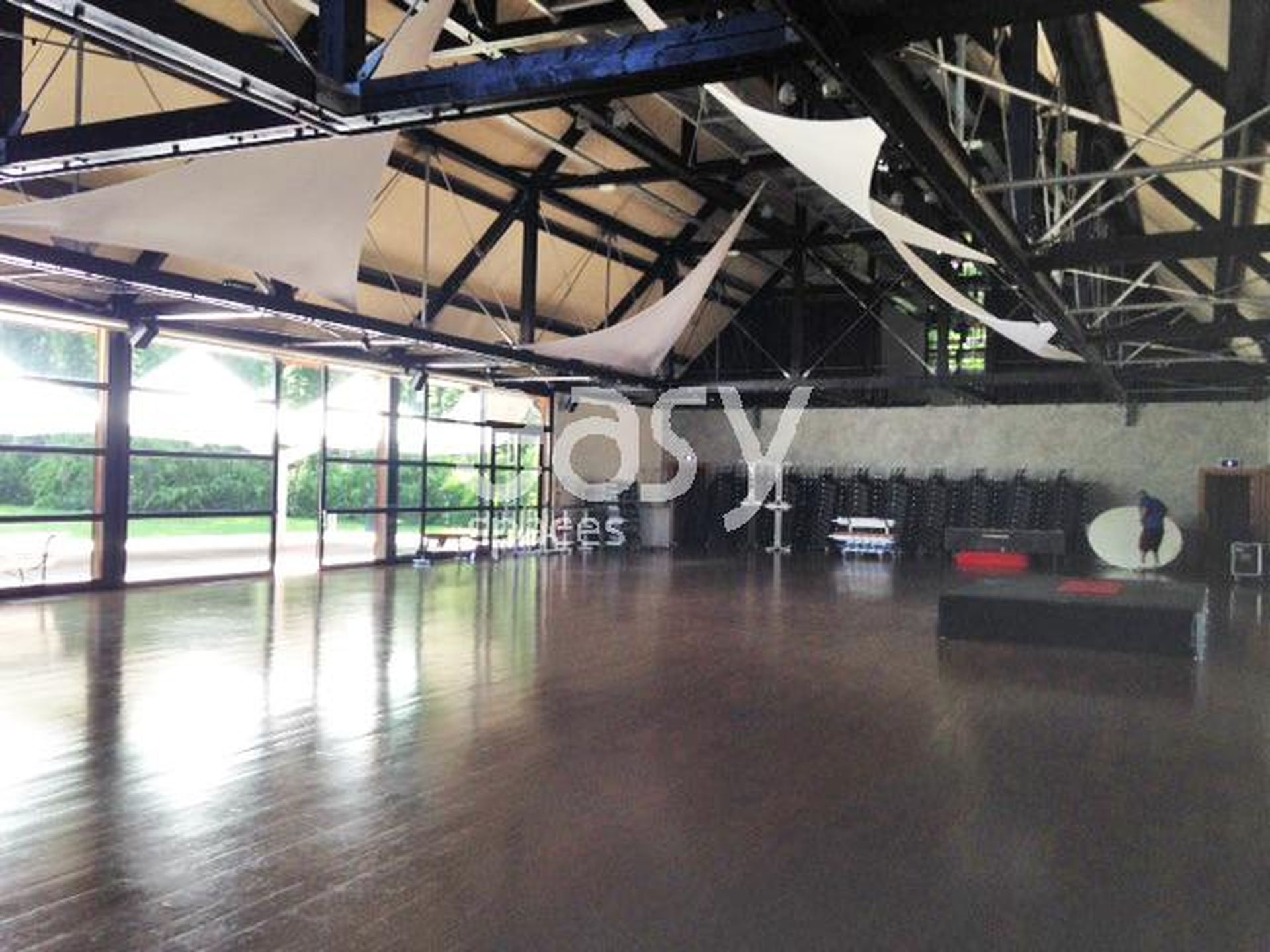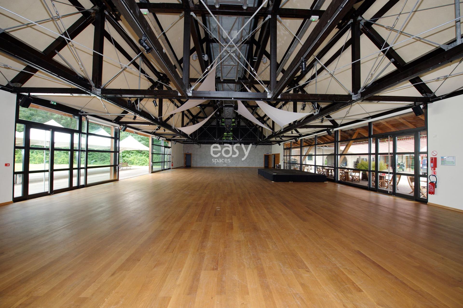 L’alliance du bois noble au sol, de la charpente acier, et de la lumière naturelle crée une atmosphère moderne, inspirante et hautement personnalisable, adaptée aux événements corporate les plus exigeants comme aux productions artistiques de haut niveau.