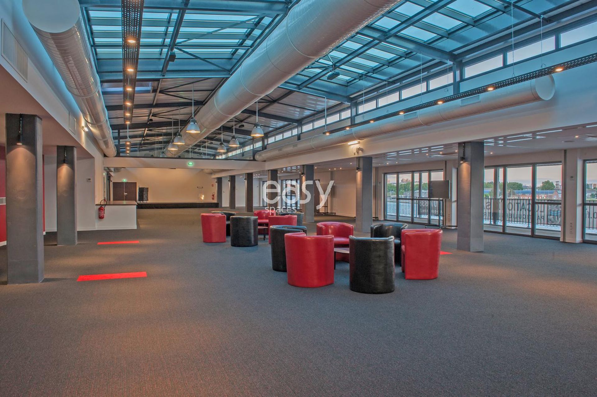 L’architecture intérieure se distingue par une ambiance contemporaine et lumineuse, grâce à une large verrière qui baigne l’ensemble de cet espace atypique de lumière naturelle. Cette caractéristique rend cet espace à louer, non seulement accueillant mais également adaptable à différents types de mises en scène événementielles. Les colonnes métalliques, associées à un plafond technique apparent, ajoutent une touche industrielle sympathique qui pourrait plaire aux amateurs de design moderne.