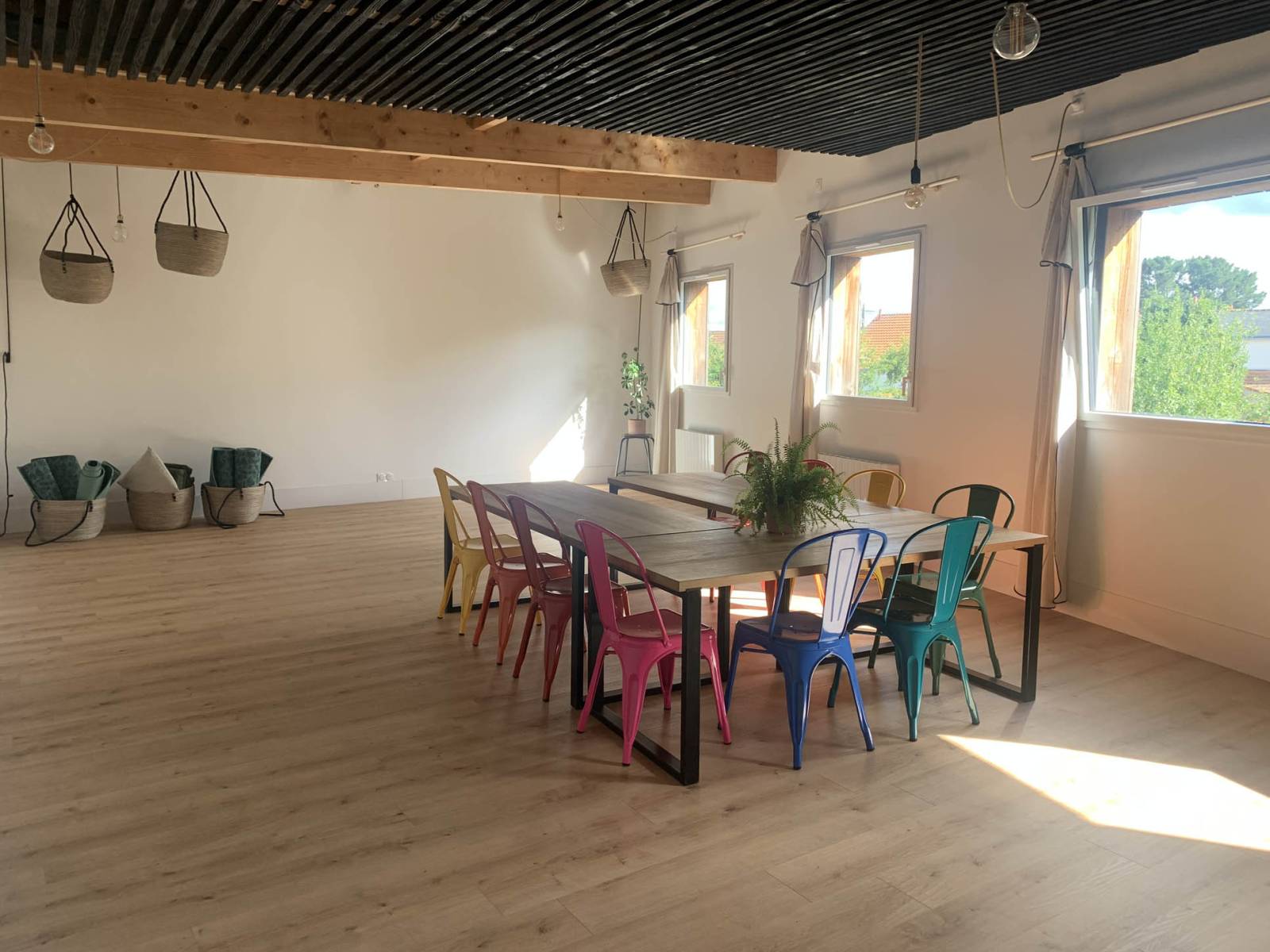 Par exemple, l’une des salles peut être utilisée comme salle de yoga, avec des tapis et des accessoires adaptés, tandis que l’autre peut être aménagée en un espace de networking ou de conférence.