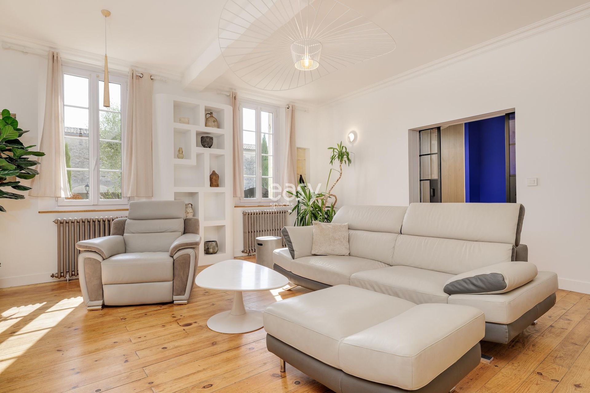 Bénéficiant d'un bel espace séjour de 35m2 lumineux avec parquet et cheminée, d'une cuisine ouverte sur l'exterieur et d'une décoration au mélange parfait entre ancien avec pierres apparentes et moderne ce décor sera idéal pour tout types de projets.