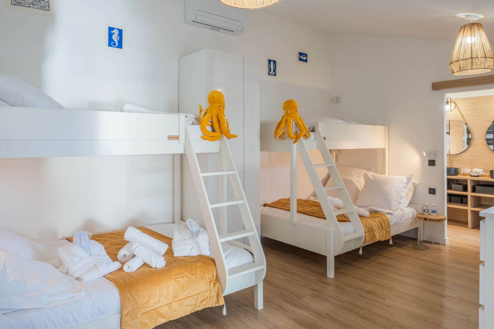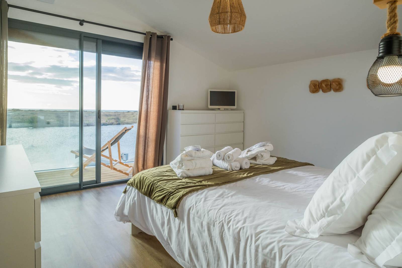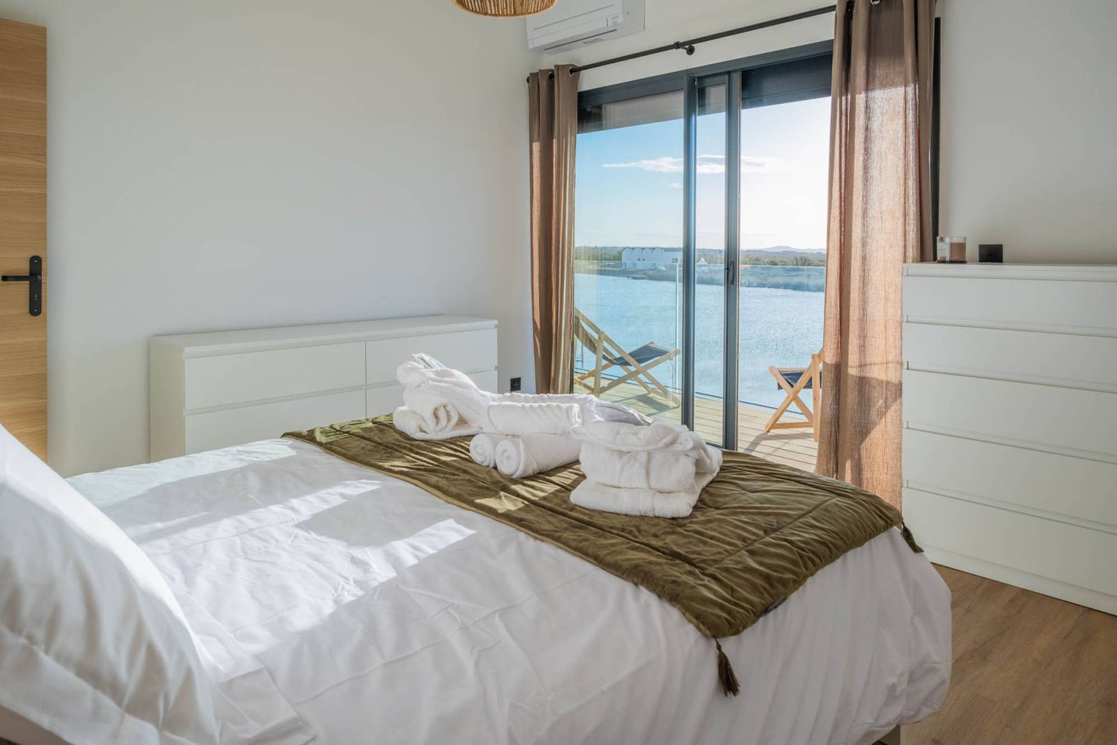 Les chambres, spacieuses et lumineuses, bénéficient elles aussi d’un panorama exceptionnel. Le mobilier contemporain, les matières nobles et les tons neutres créent une ambiance chic et intemporelle, idéale pour tout type de mise en scène ou d’ambiance visuelle.