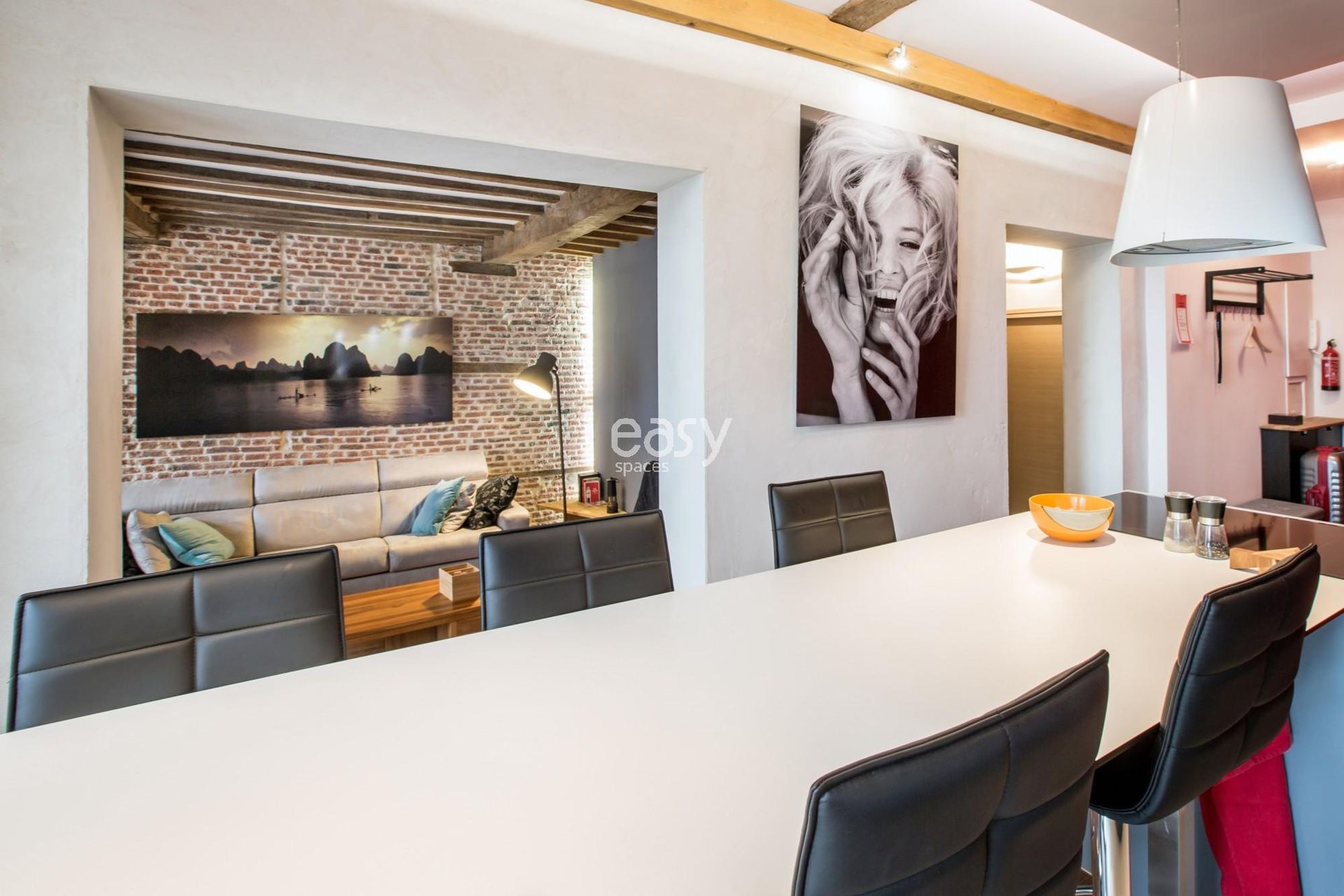 Dans notre portfolio diversifié, vous trouverez cet appartement avec murs en pierre qui offre un cadre original et lumineux, parfait pour toute production artistique ou événement d'entreprise. Son séjour avec poutres et parquets ainsi que sa cuisine semi-ouverte créent un lieu atypique qui s'ajuste à chaque projet.