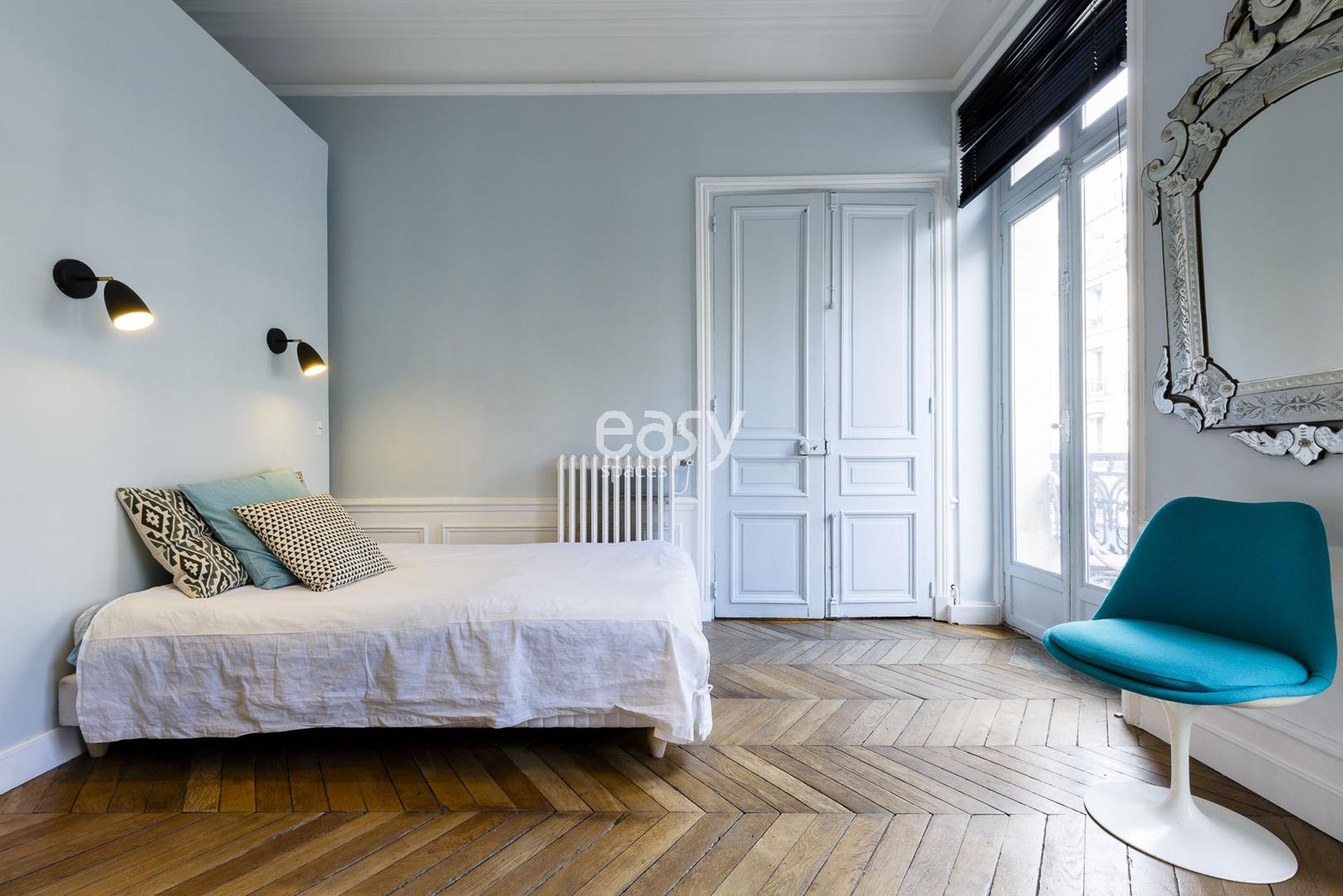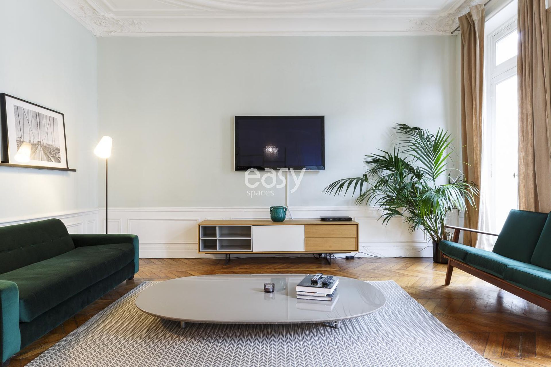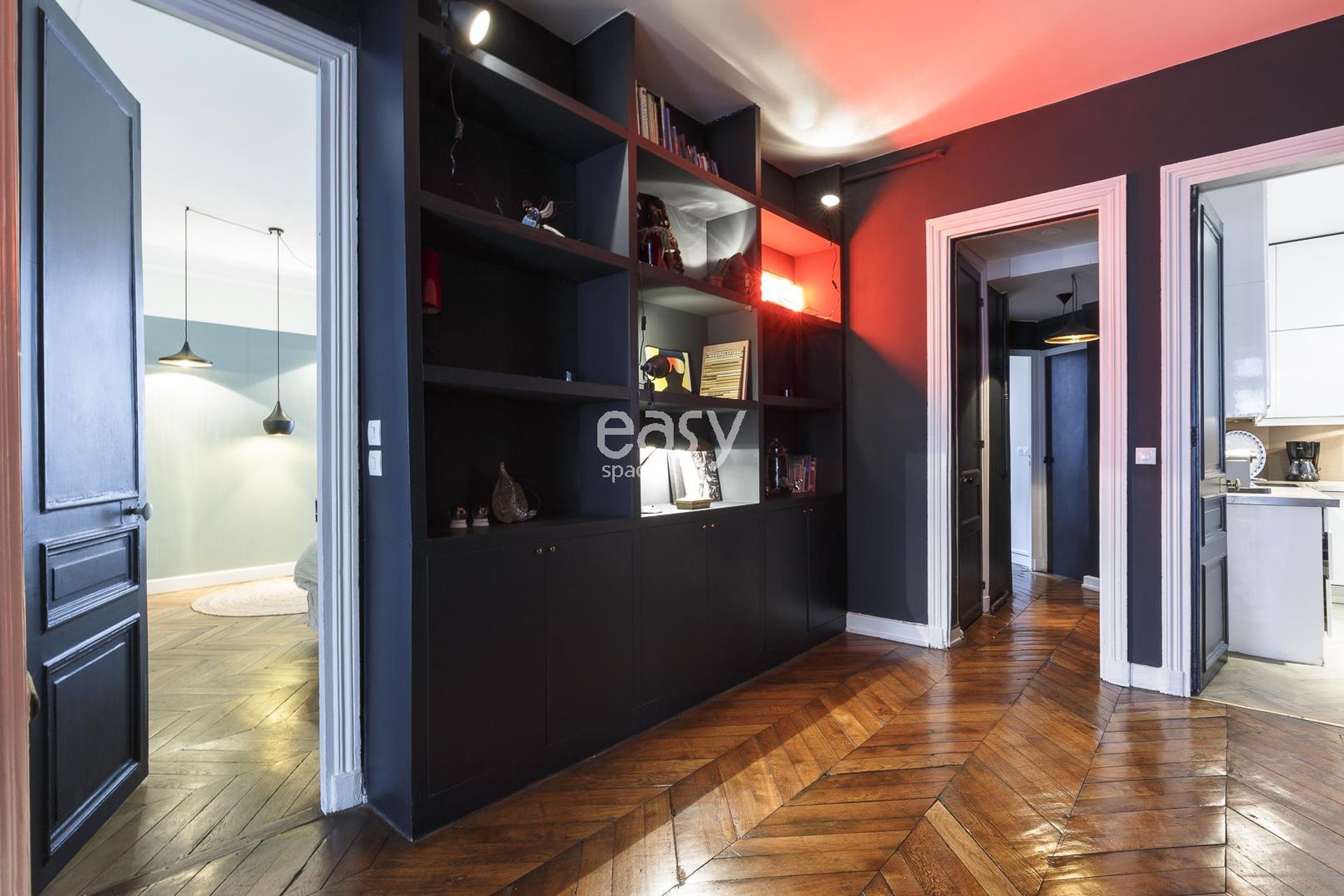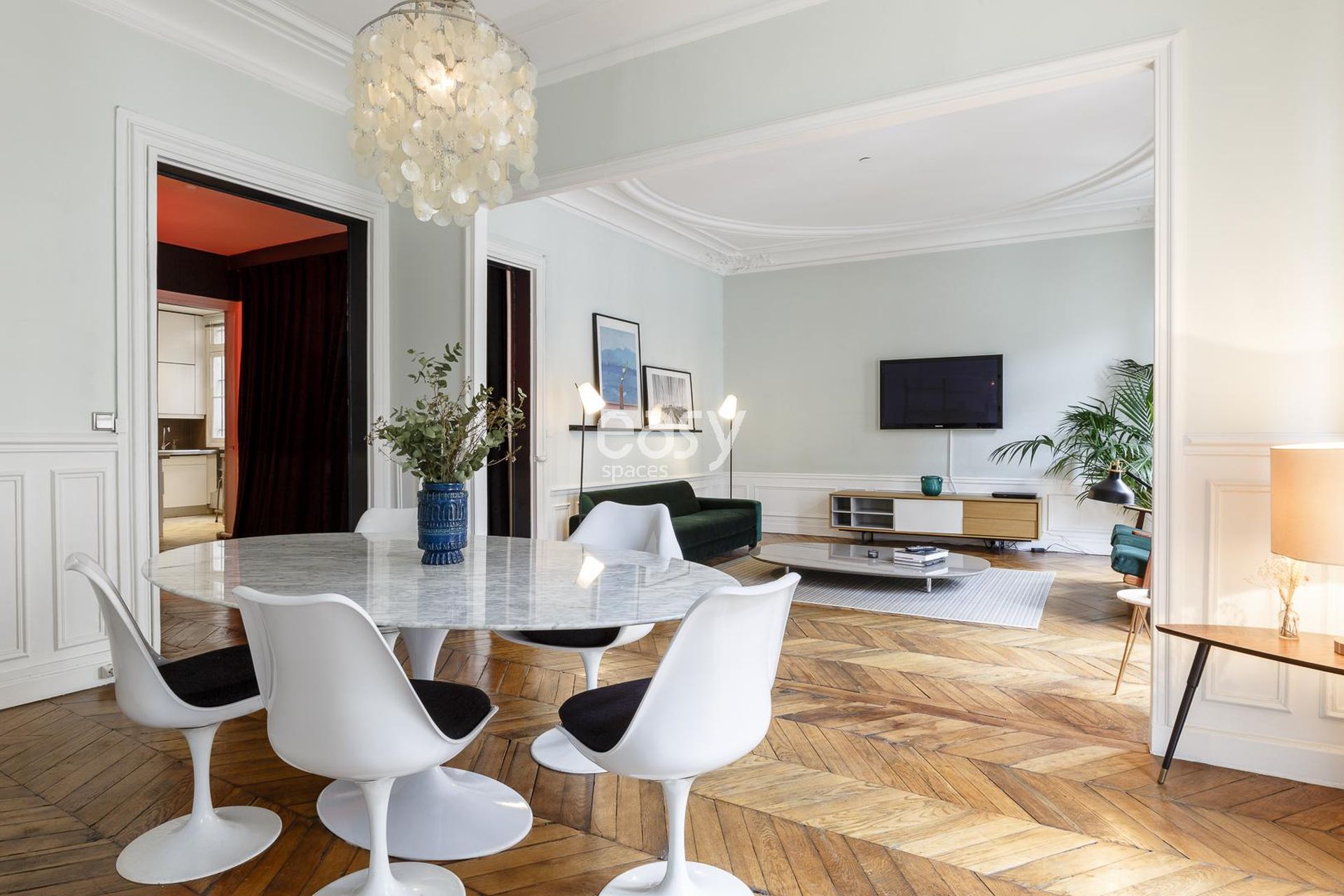 Découvrez notre bel appartement lumineux de 300m2, avec une décoration moderne inspirée des années 70, parquet chevrons, et moulures. Idéal pour shootings, tournages, ou événements professionnels en centre de Paris.