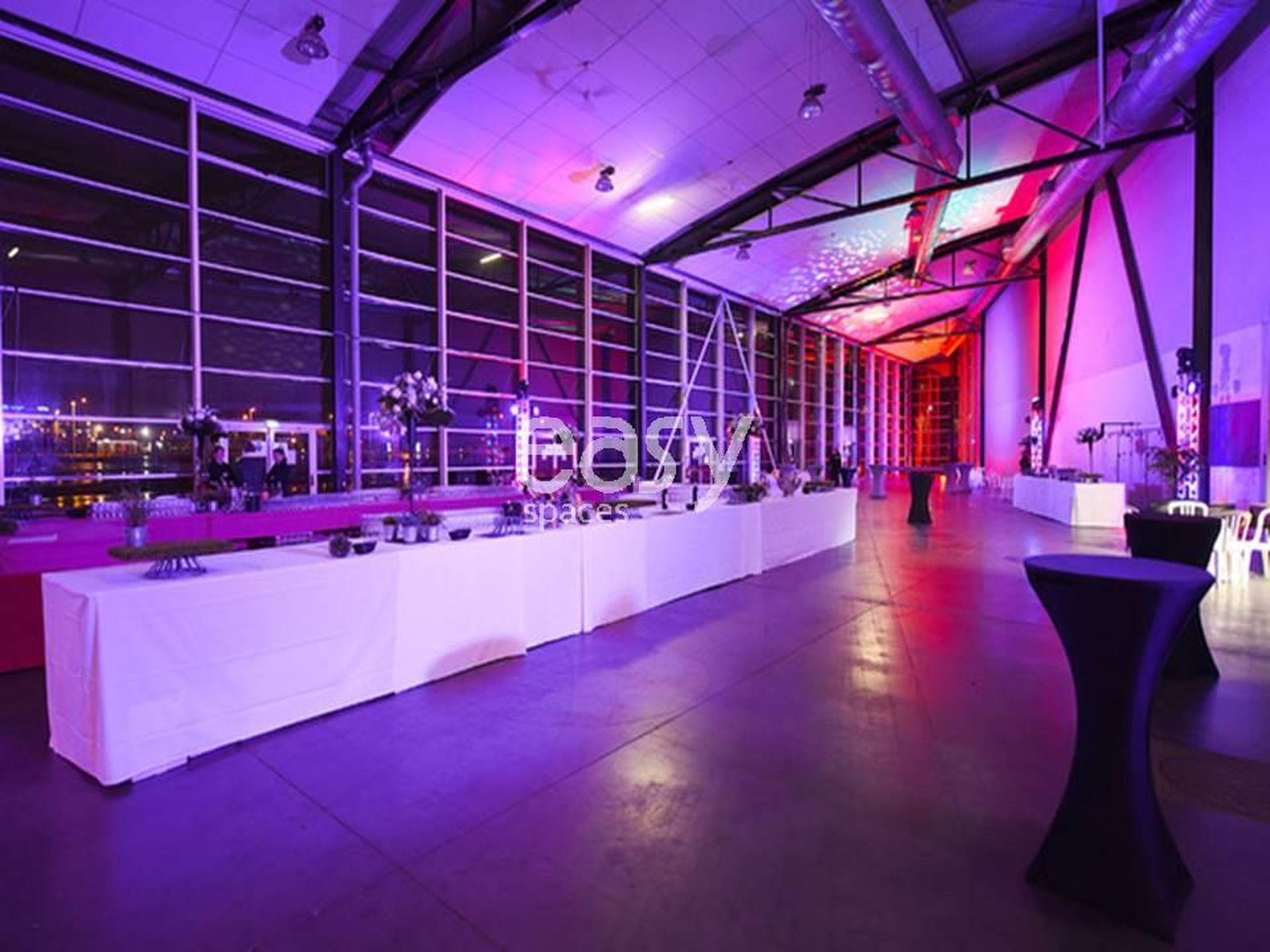 Ce vaste espace de plain-pied impressionne dès l’arrivée par son envergure et sa clarté. Grâce à ses hautes baies vitrées toute hauteur qui bordent la façade, la lumière naturelle inonde l’intérieur tout au long de la journée, créant une atmosphère vivante, inspirante, idéale pour accueillir des événements d’envergure.