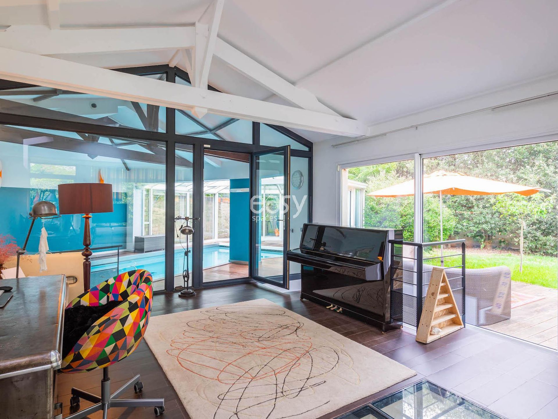 Piscine intérieure chauffée, dans un espace baigné de lumière naturelle, parfait pour des prises de vues spectaculaires ou des ambiances intimistes