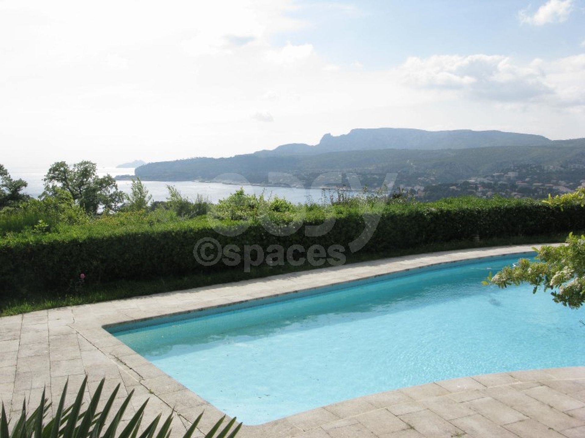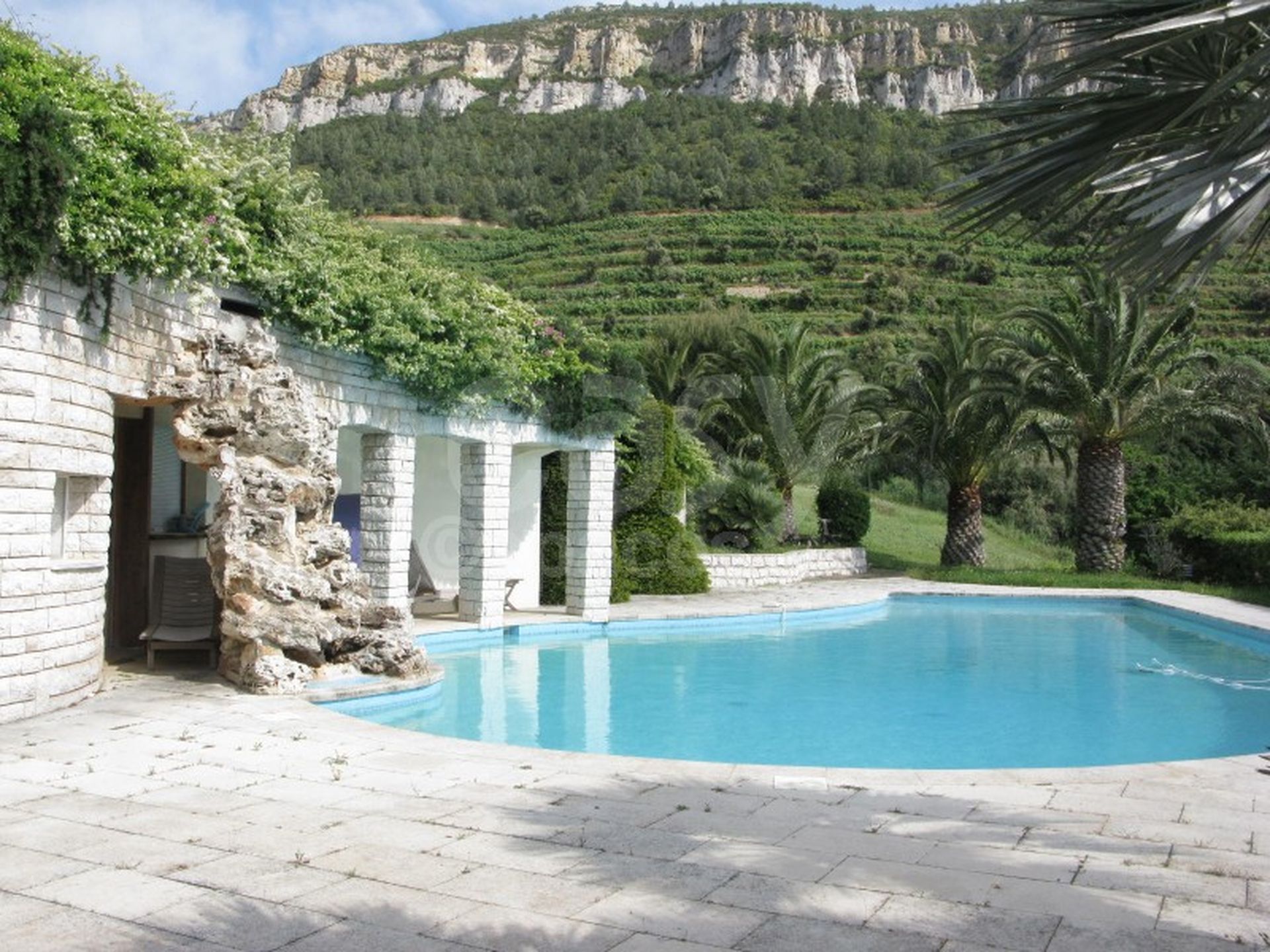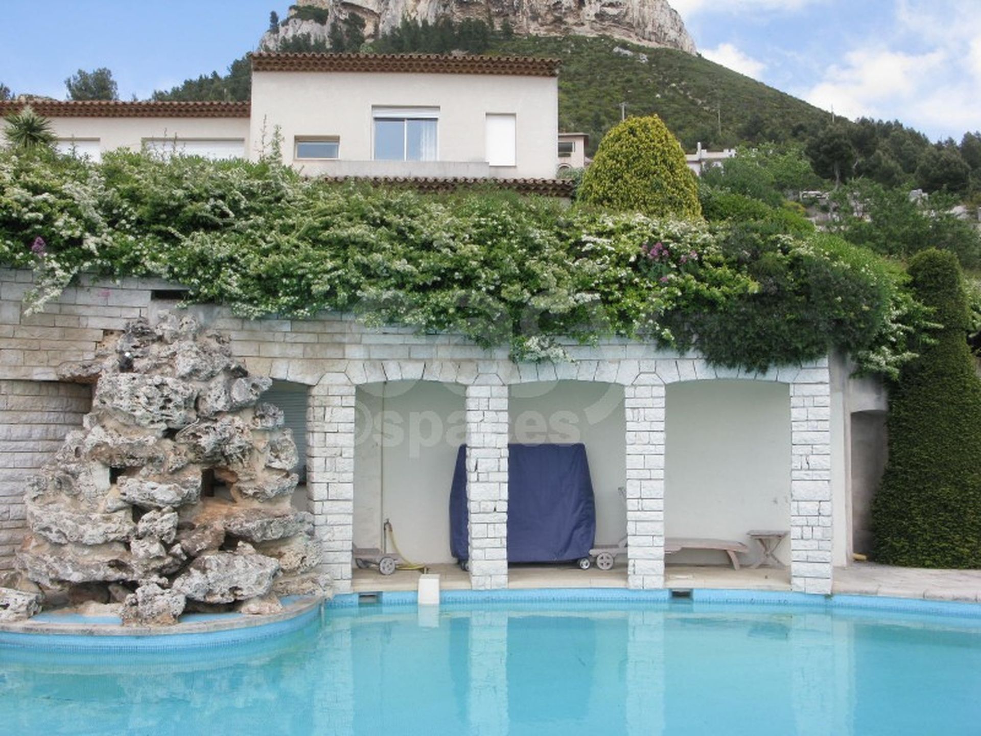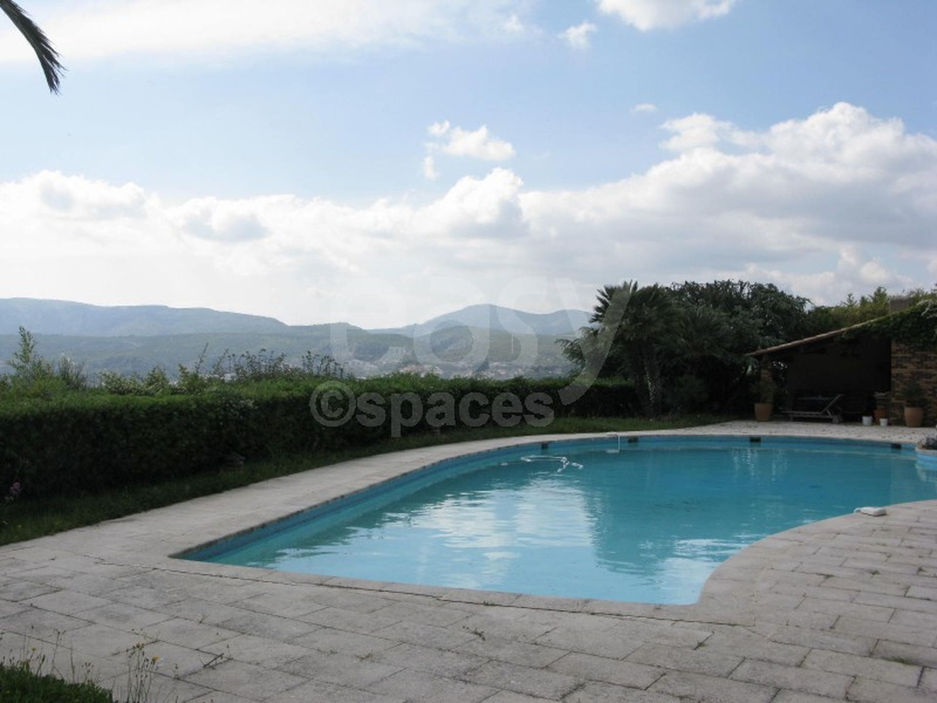 Pool-house près de l ' énorme piscine (20 mètres) afin de travailler confortablement. Ce lieu de tournage possède de grandes terrasses avec vue mer et montagnes, vues bien dégagées.