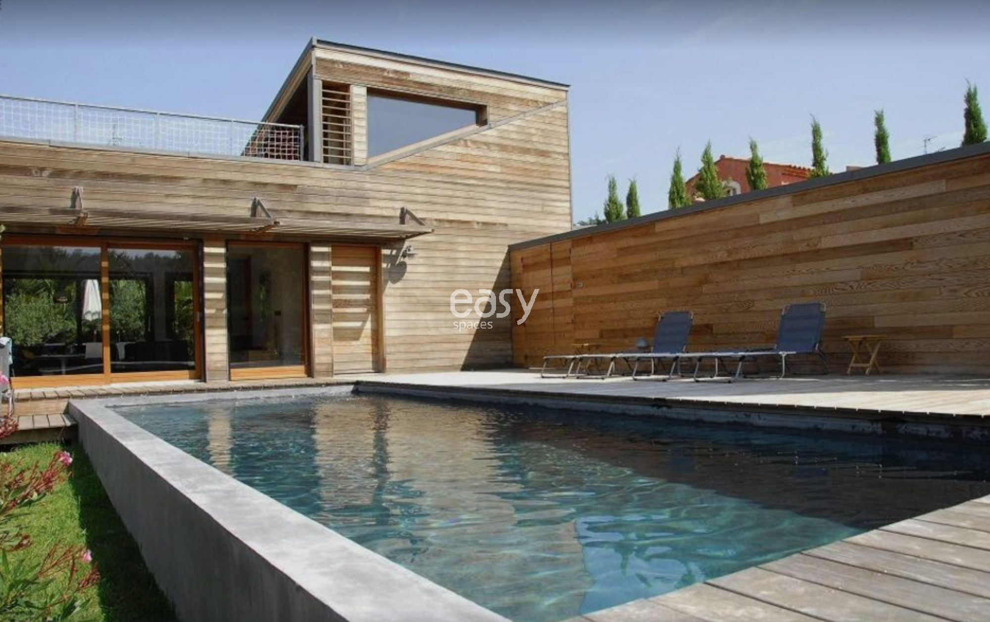La villa DAL est une maison contemporaine faite en bois et en verre, très actuelle, avec une touche de design nordique. C 'est une maison d ' architecte avec piscine (chauffée), et de sublimes terrasses en teck sur deux niveaux. Ce lieu se prête très bien aux prises de vues photographiques pour des meubles de jardins par exemple grâce à son bel extérieur ensoleillé.