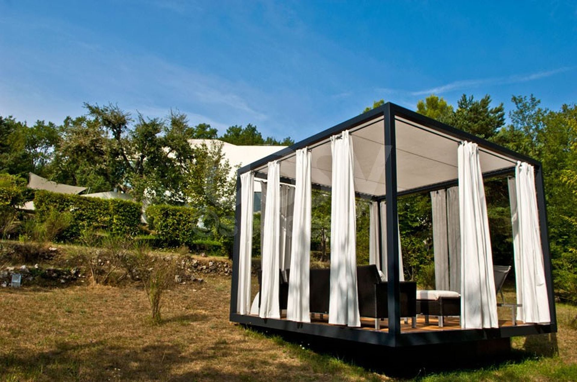 La villa NOPE, idéalement située près de Cannes, à une demi-heure de Nice et de son Aéroport international, se présente comme un lieu atypique pour des projets artistiques et des événements professionnels. Cette maison contemporaine avec de très beaux volumes et une belle hauteur sous plafond comporte d'immenses fenêtres qui inondent le séjour de lumière. Son parc avec piscine enrichit son caractère unique et atypique, disponible à la location sur la Riviera Française.