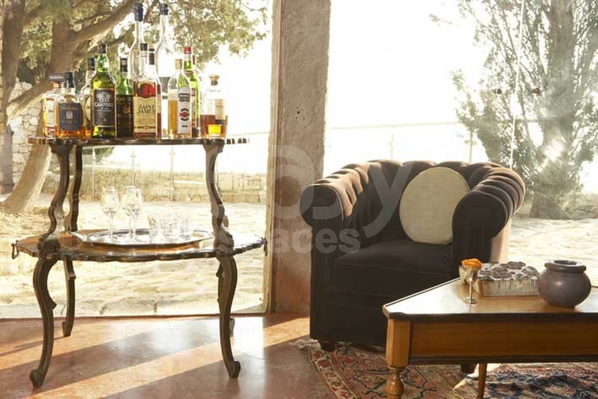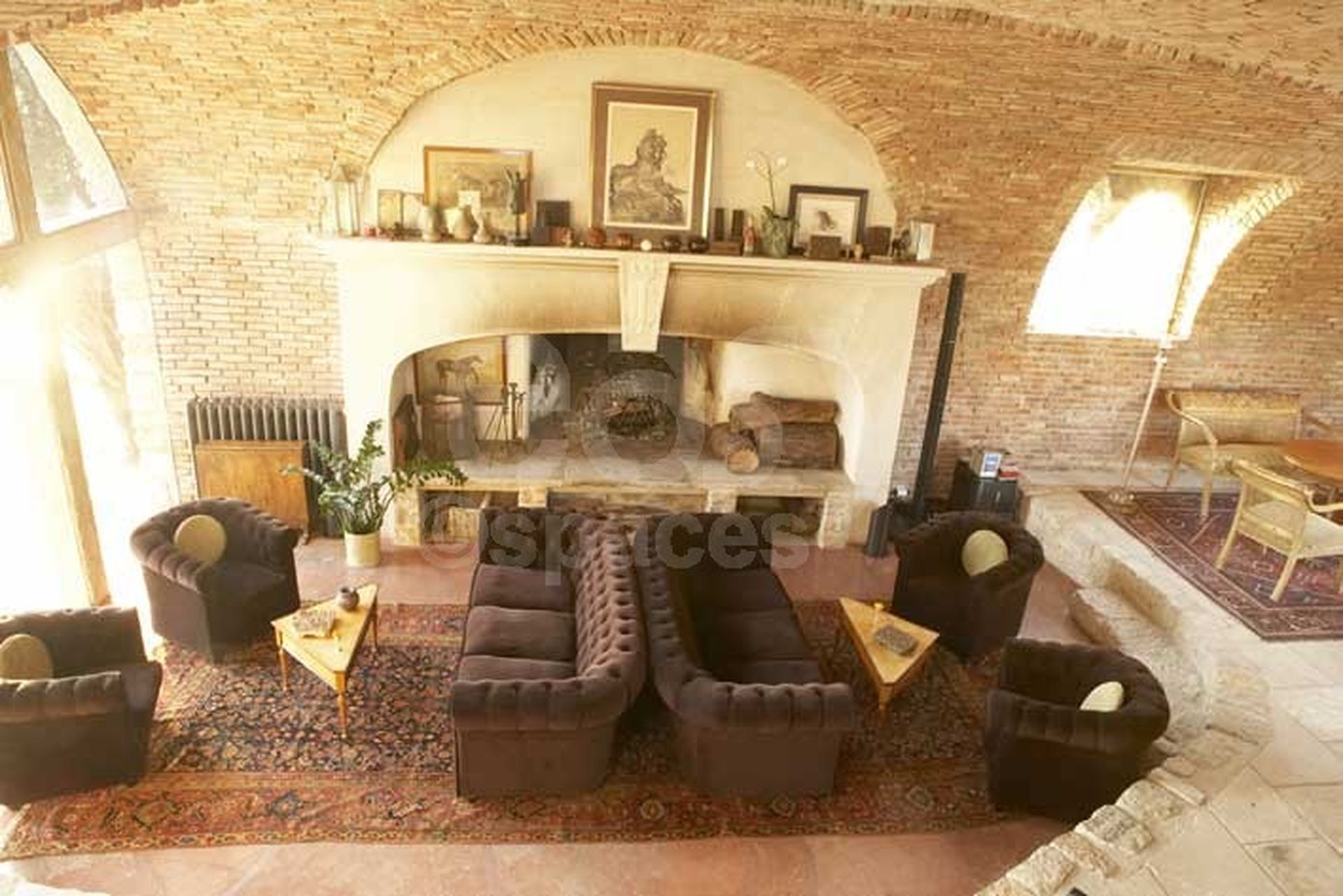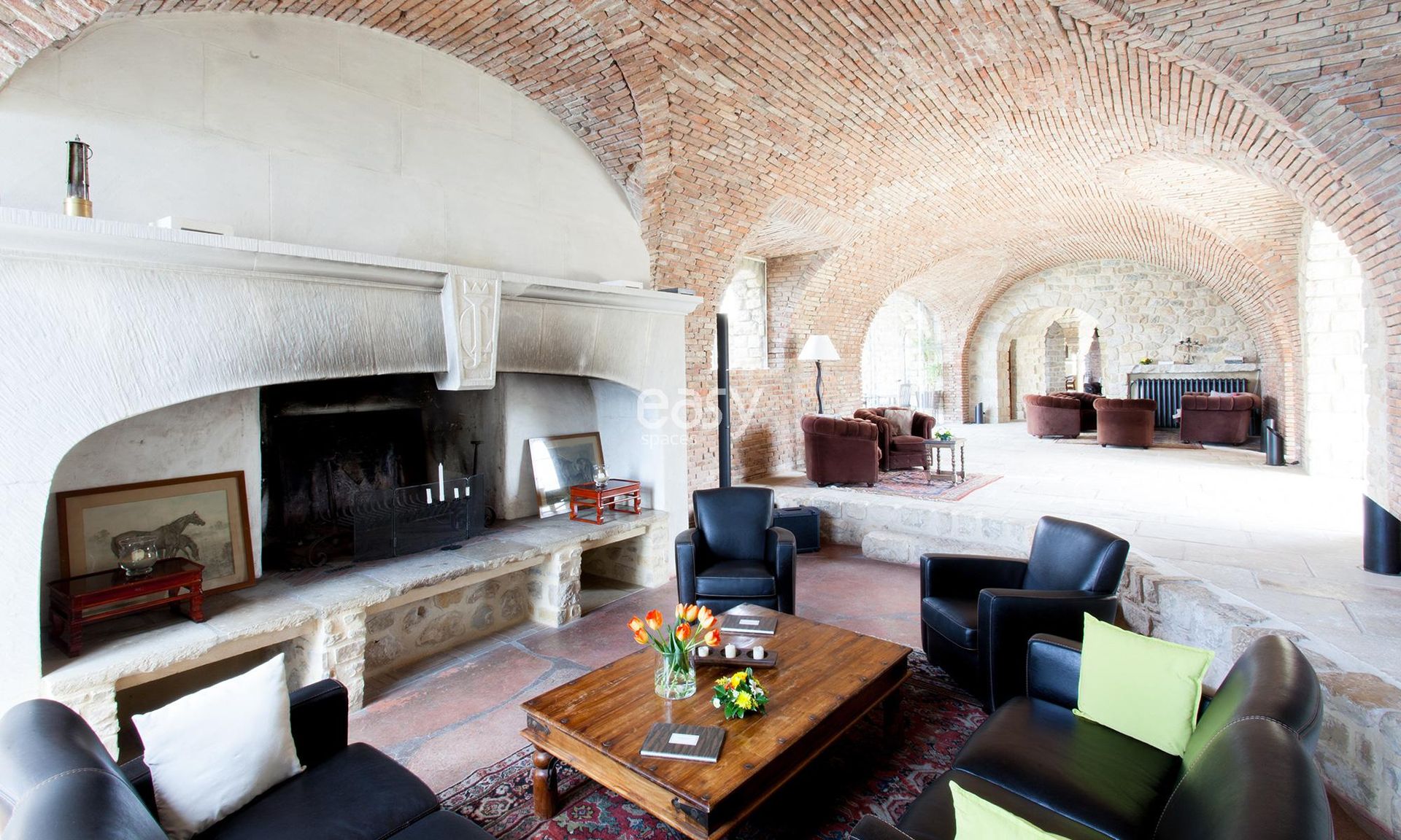 Décor en pierre naturelle, arches voûtées, sols anciens, mobilier haut de gamme