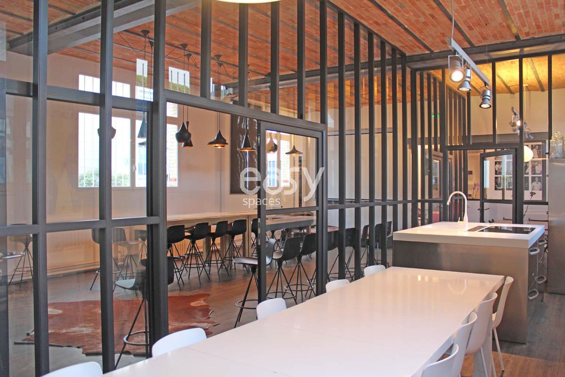 Notre Loft industriel offre de beaux espaces atypiques intérieurs avec de grands couloirs et une décoration cosy qui contraste parfaitement avec les murs en briques, consoles industrielles et charpente métallique, donnant un côté très original. Ce lieu atypique bénéficie d'une très belle lumière naturelle et d'une cuisine professionnelle qui sera idéale pour le tournage d'une émission culinaire ou pour un live web, par exemple.