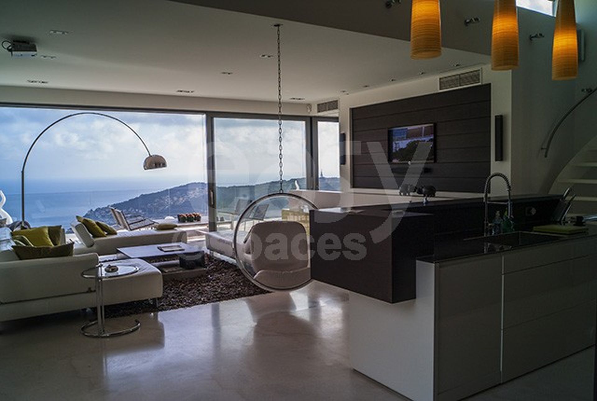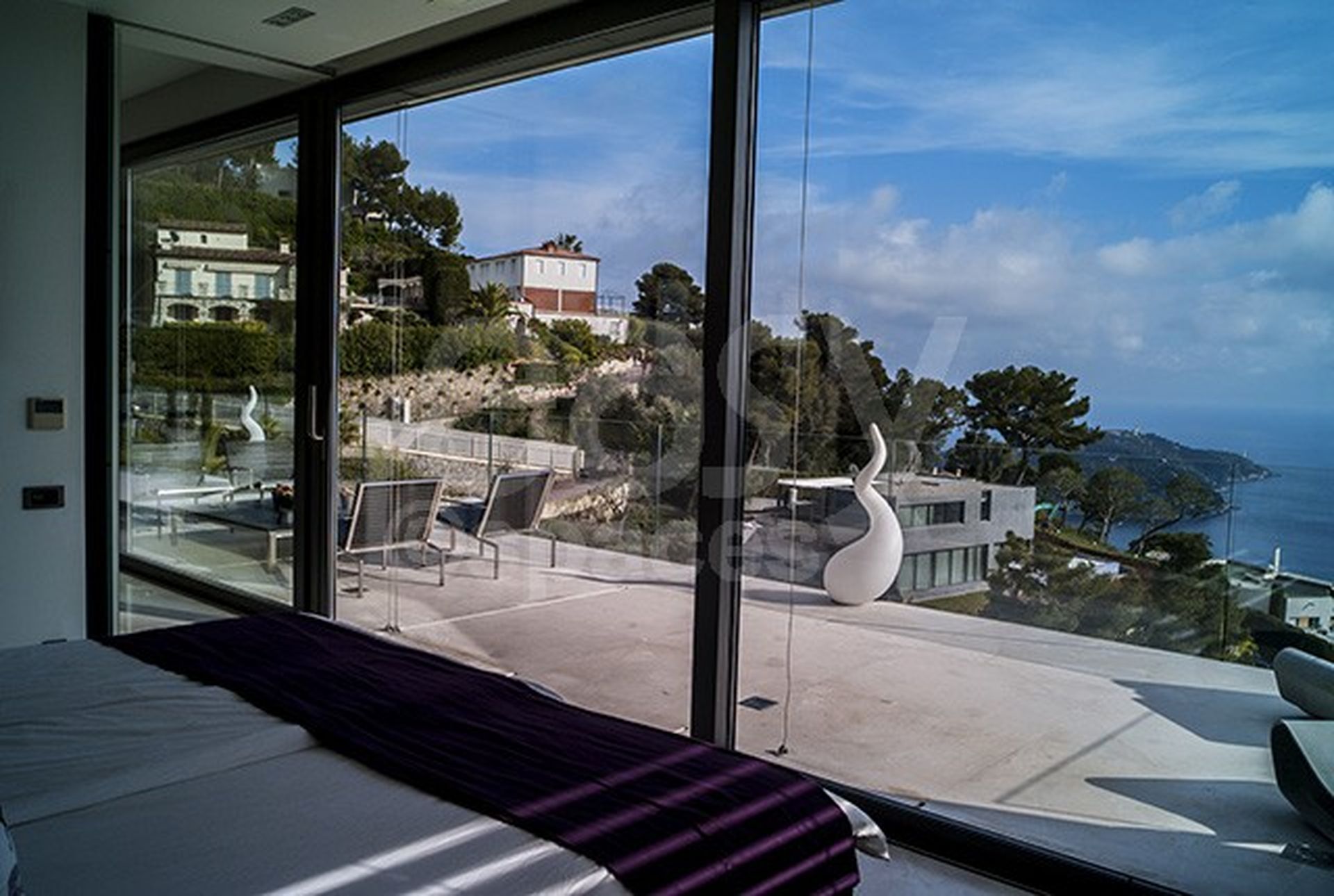 Décoration design pour cette maison située près de Nice et offrant une magnifique vue dégagée sur la mer.