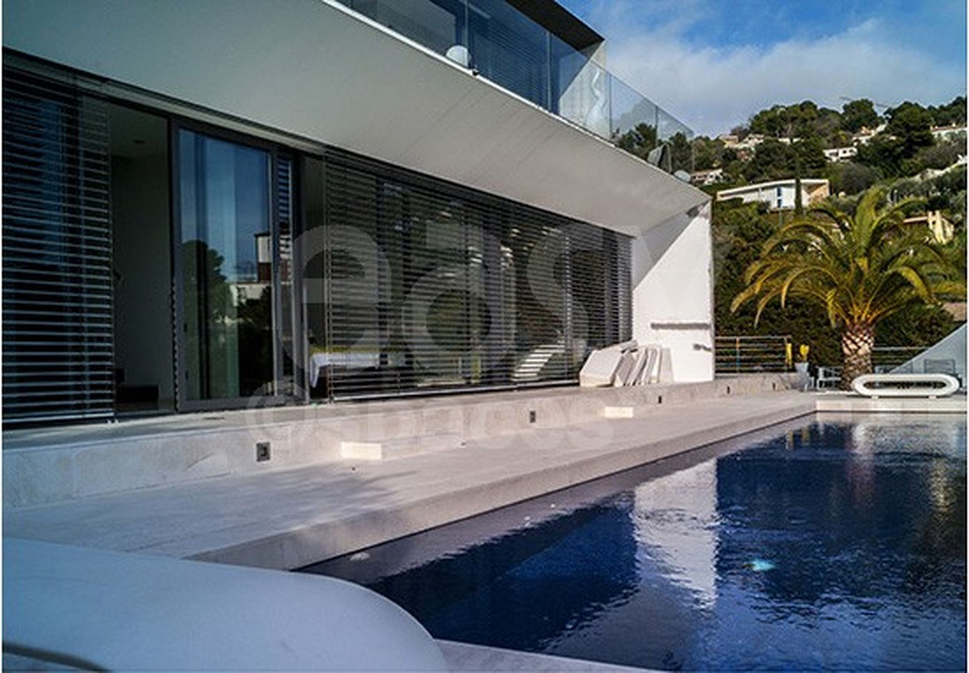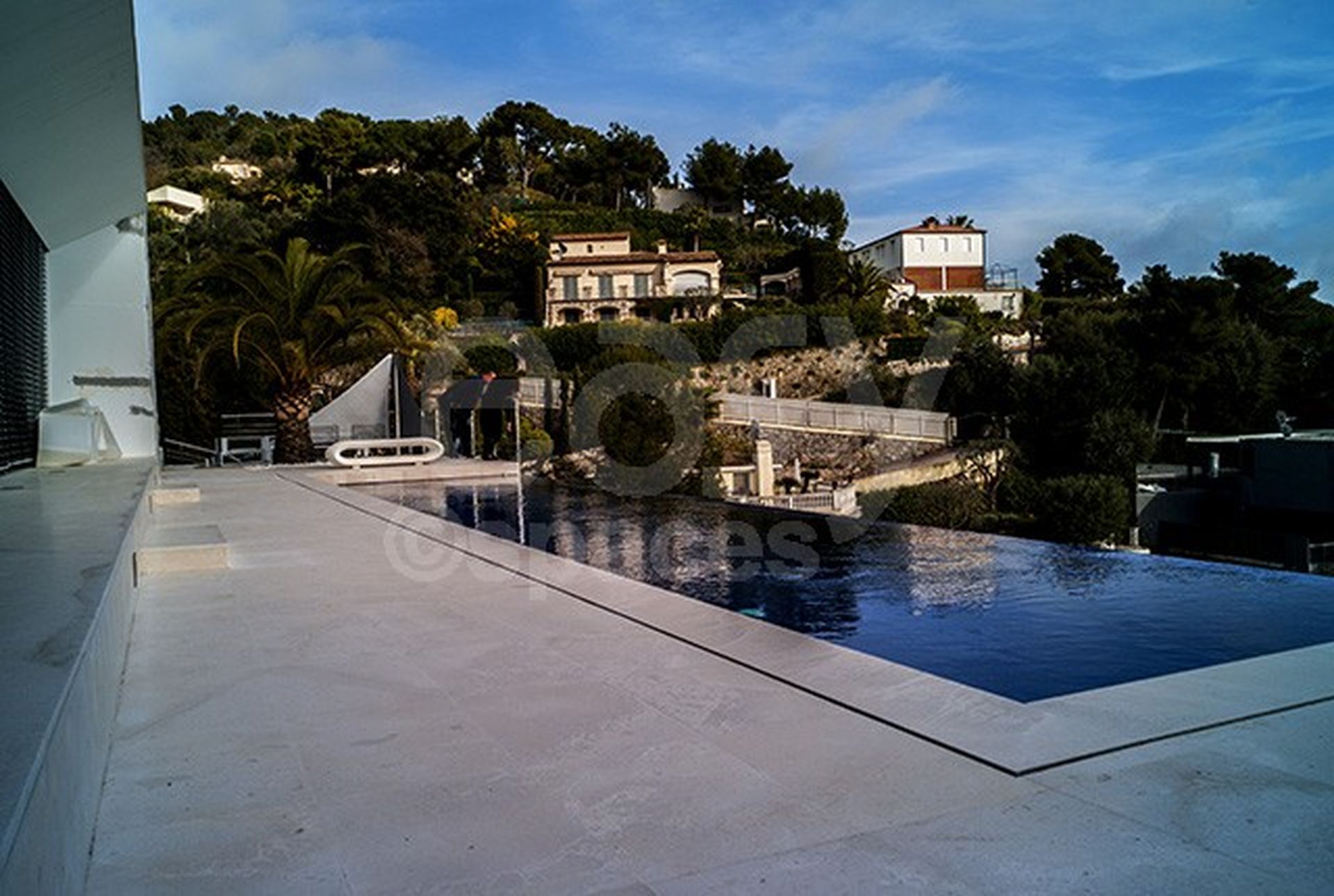 Villa d'architecte, parfaitement adaptée à la production photo ou cinéma. Ses deux terrasses surplombant la mer, sa piscine moderne et actuelle vous offriront un très bon cadre de travail.