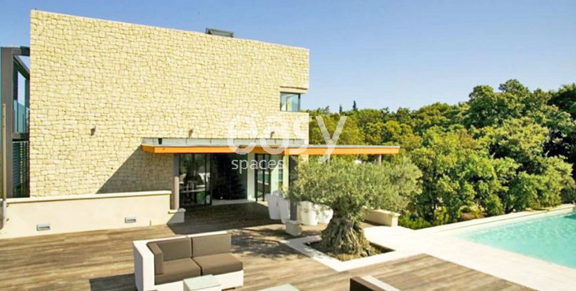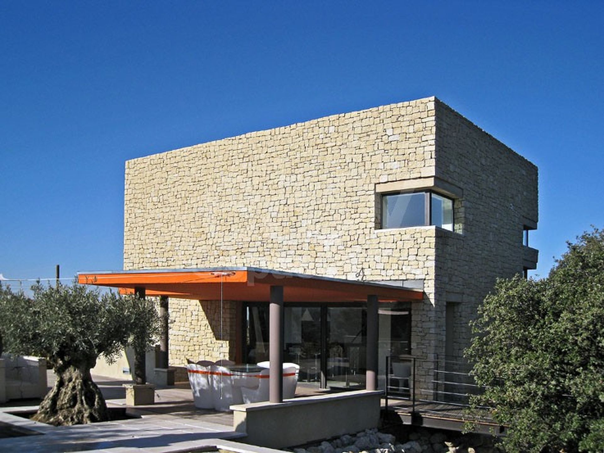 Belle maison contemporaine en pierre, avec piscine, terrasse en teck et vue dégagée, située dans le Lubéron. Un décor alliant charme et modernisme, offrant de magnifiques vues dégagées sur la campagne des prises de vues photos ou tournage de films dans le sud-est de la France. Un des très beaux lieux de tournages que nous mettons à votre disposition en location à la journée pour des photos de mode, films, téléfilms, ou films publicitaires.