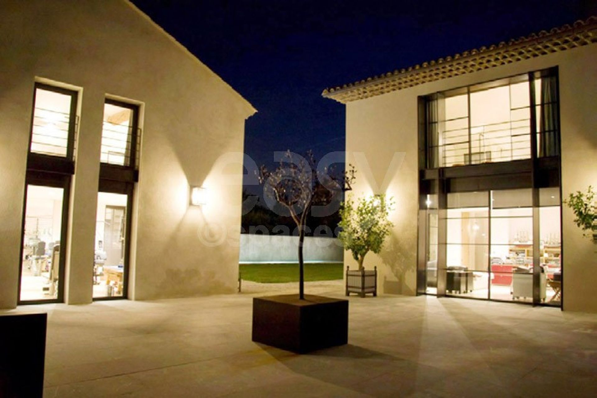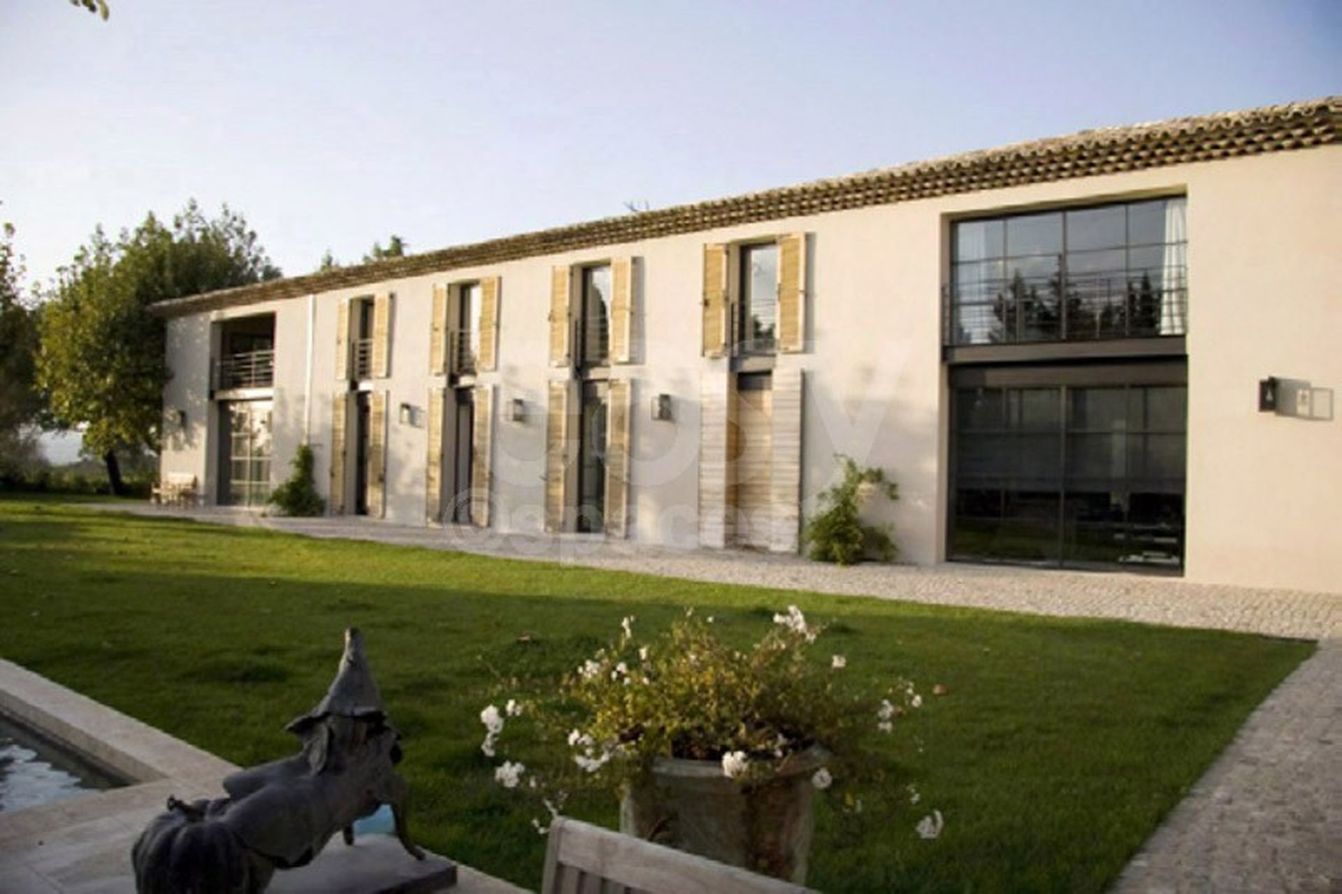 L’extérieur n’est pas en reste : vaste pelouse impeccablement entretenue, piscine miroir façon couloir de nage, terrasses minimalistes et zones d’ombre sous les arbres méditerranéens offrent une infinité de cadrages pour des prises de vues puissantes et poétiques.